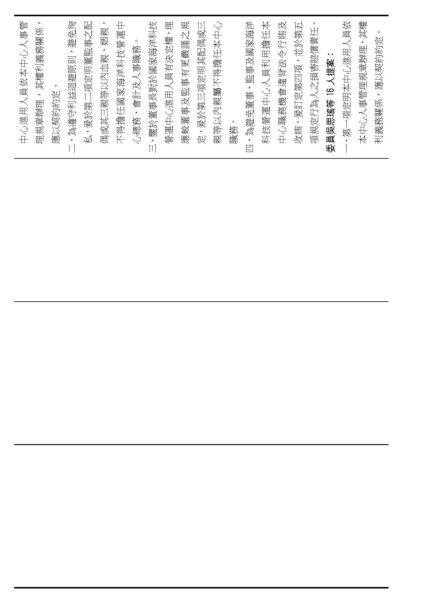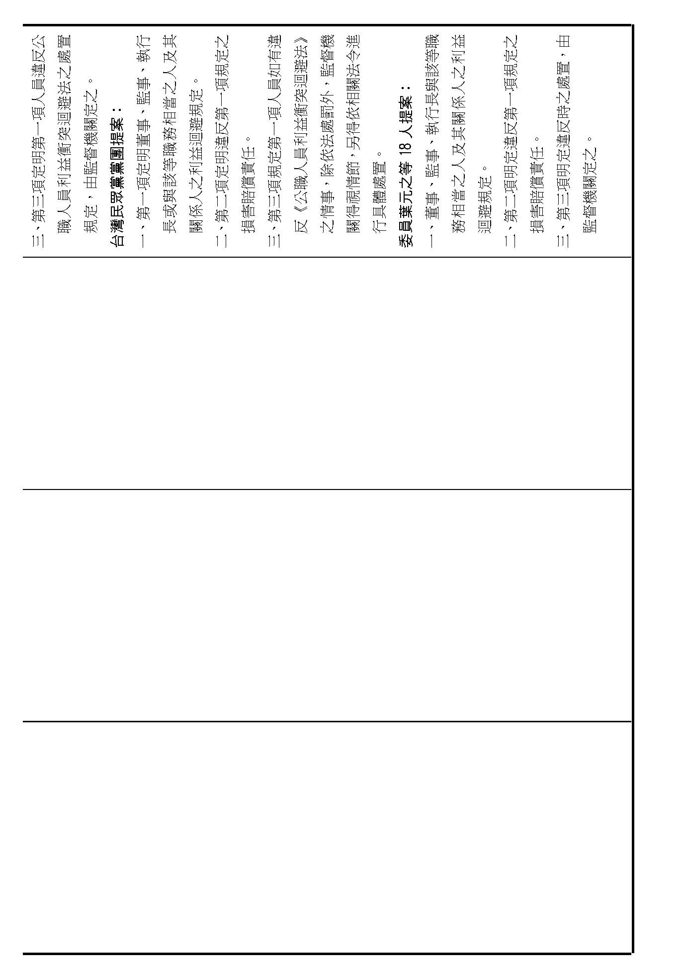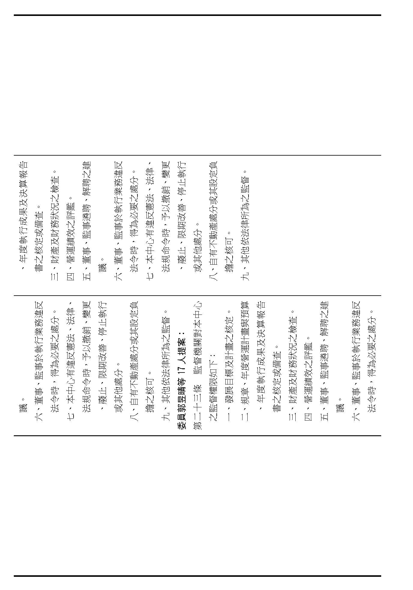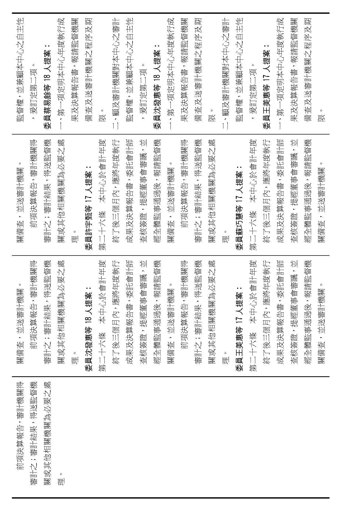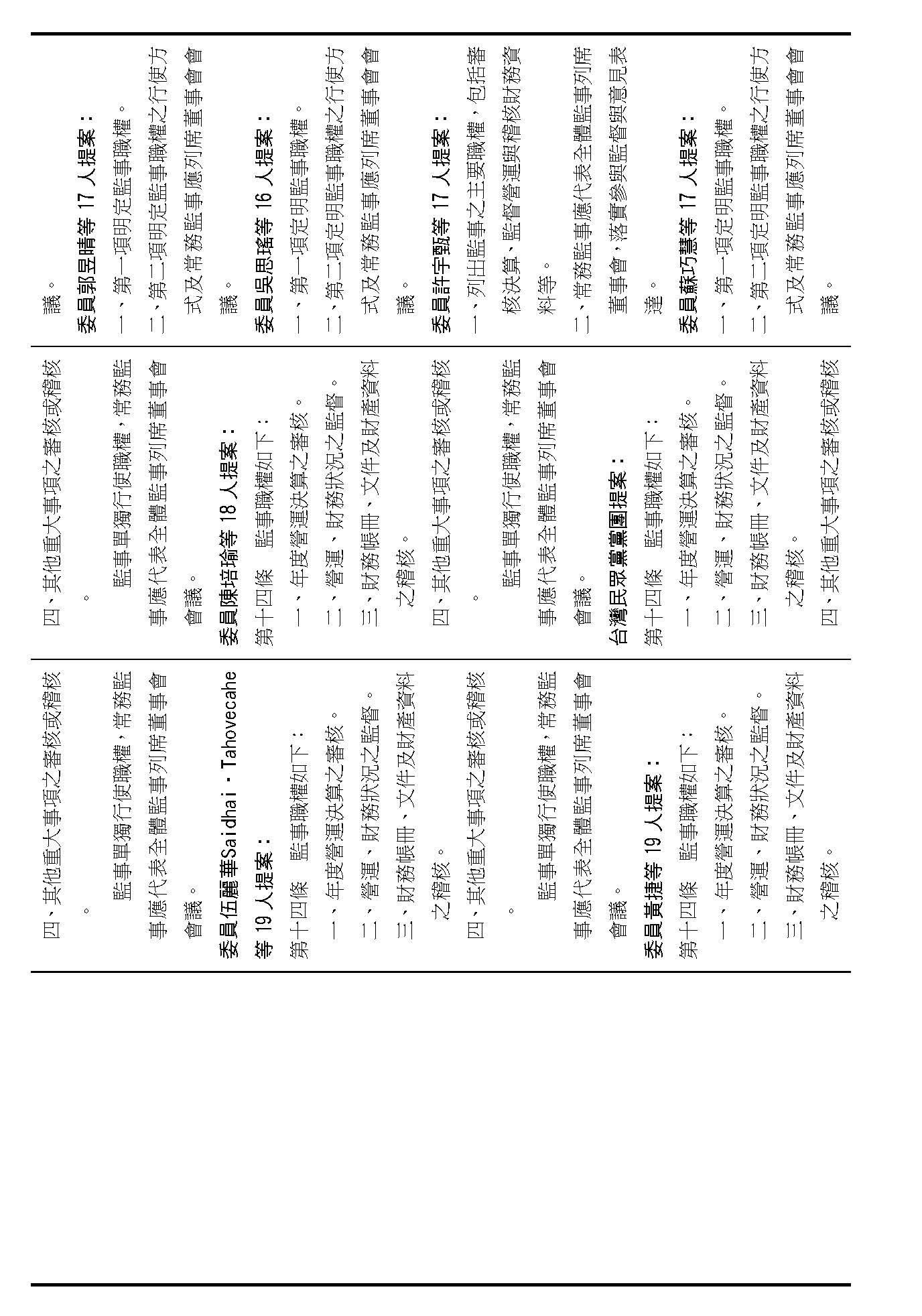 第十四條是監事的職權事項跟行使方式,請問在場委員有沒有其他不同意見?(無)沒有其他不同意見的話,就按照行政院的提案通過。