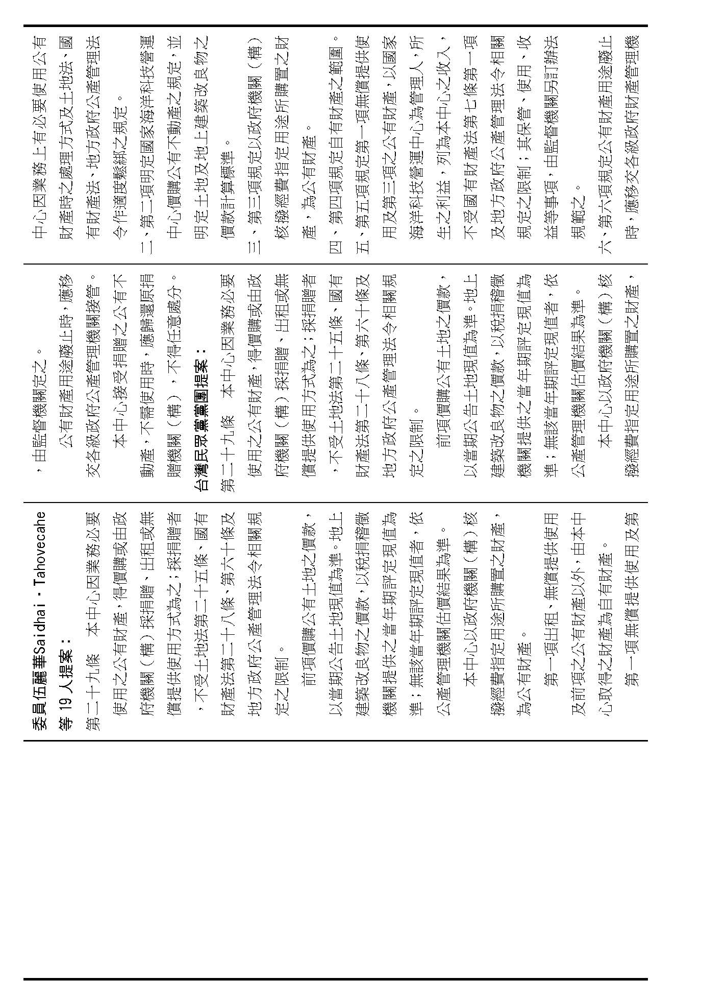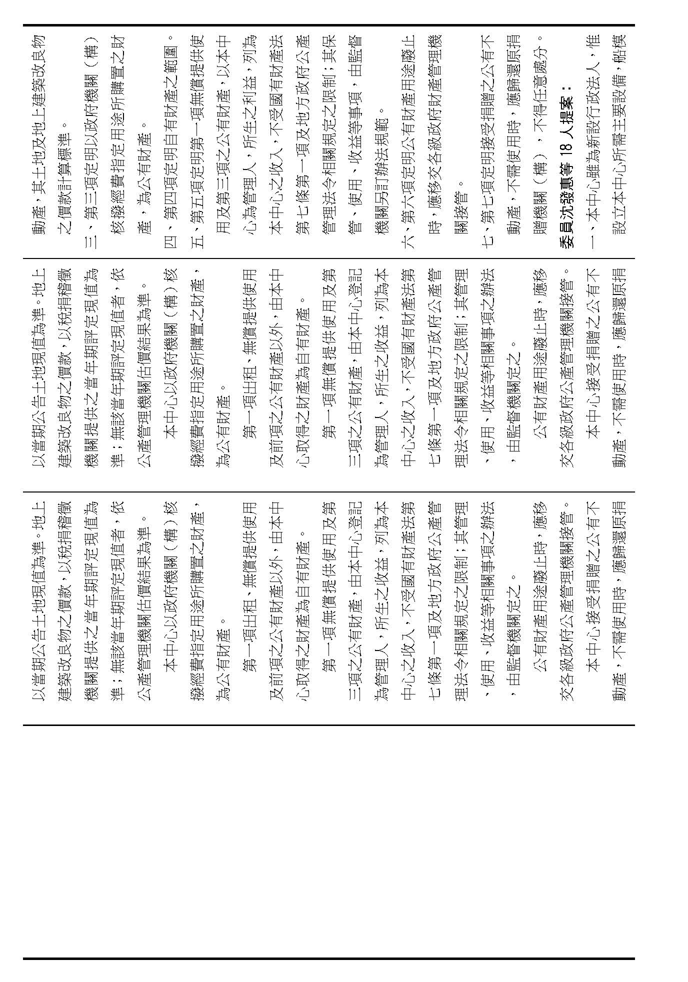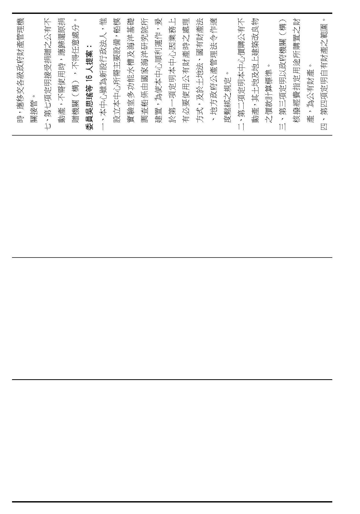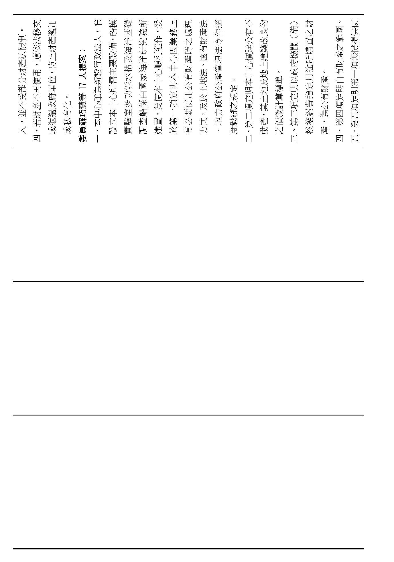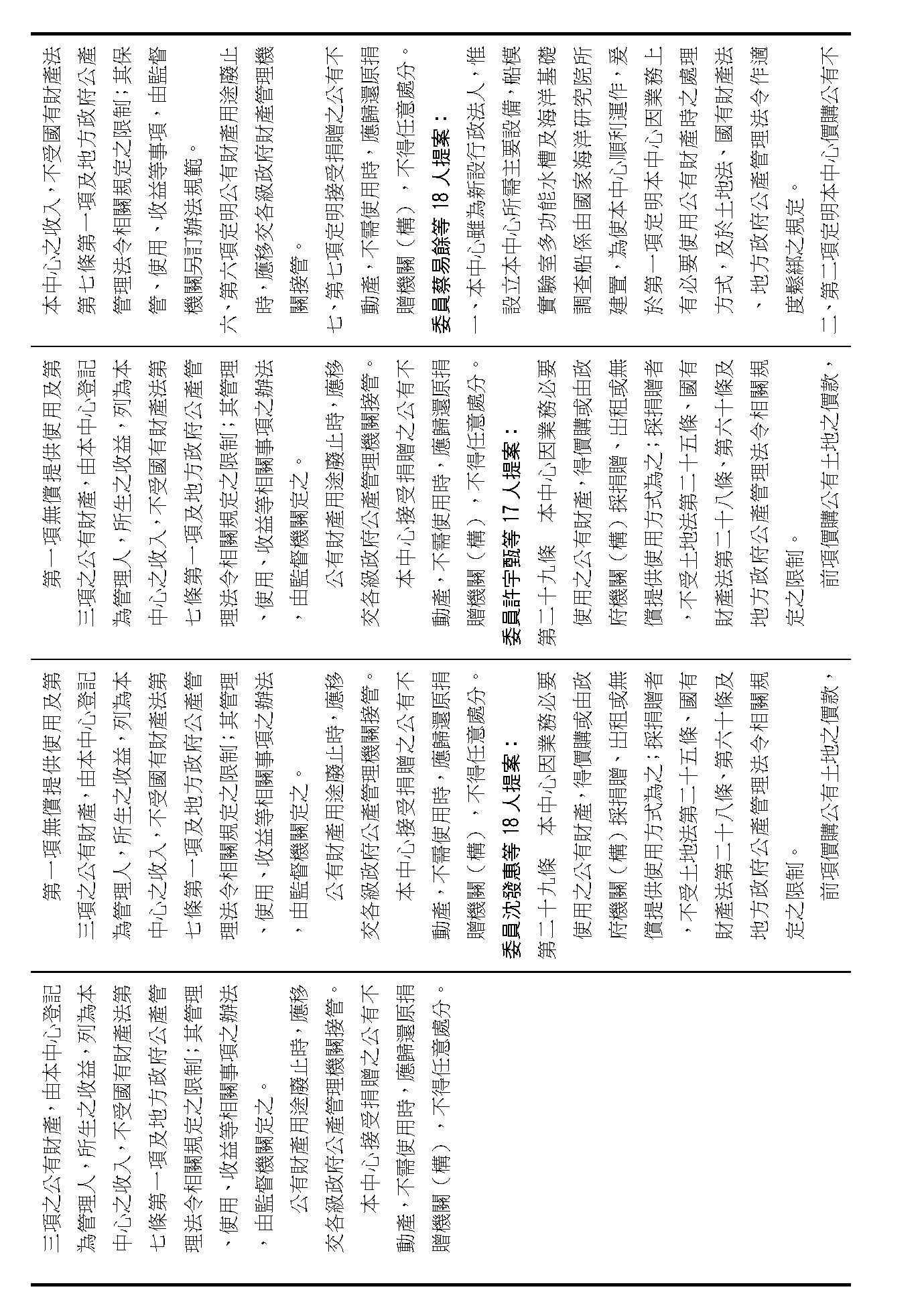 第二十九條是中心公有跟自有財產的定義、管理、使用、收益的相關規定,這是管理方式的部分,在場委員有沒有不同意見?(無)如果在場委員沒有其他不同意見的話,我們就按照行政院的提案通過。