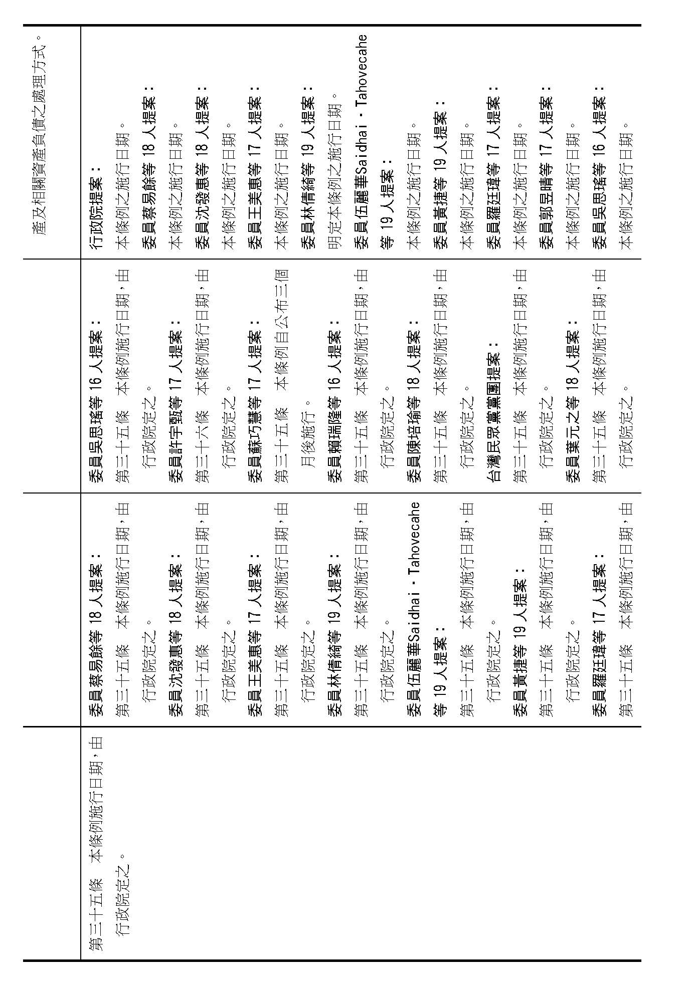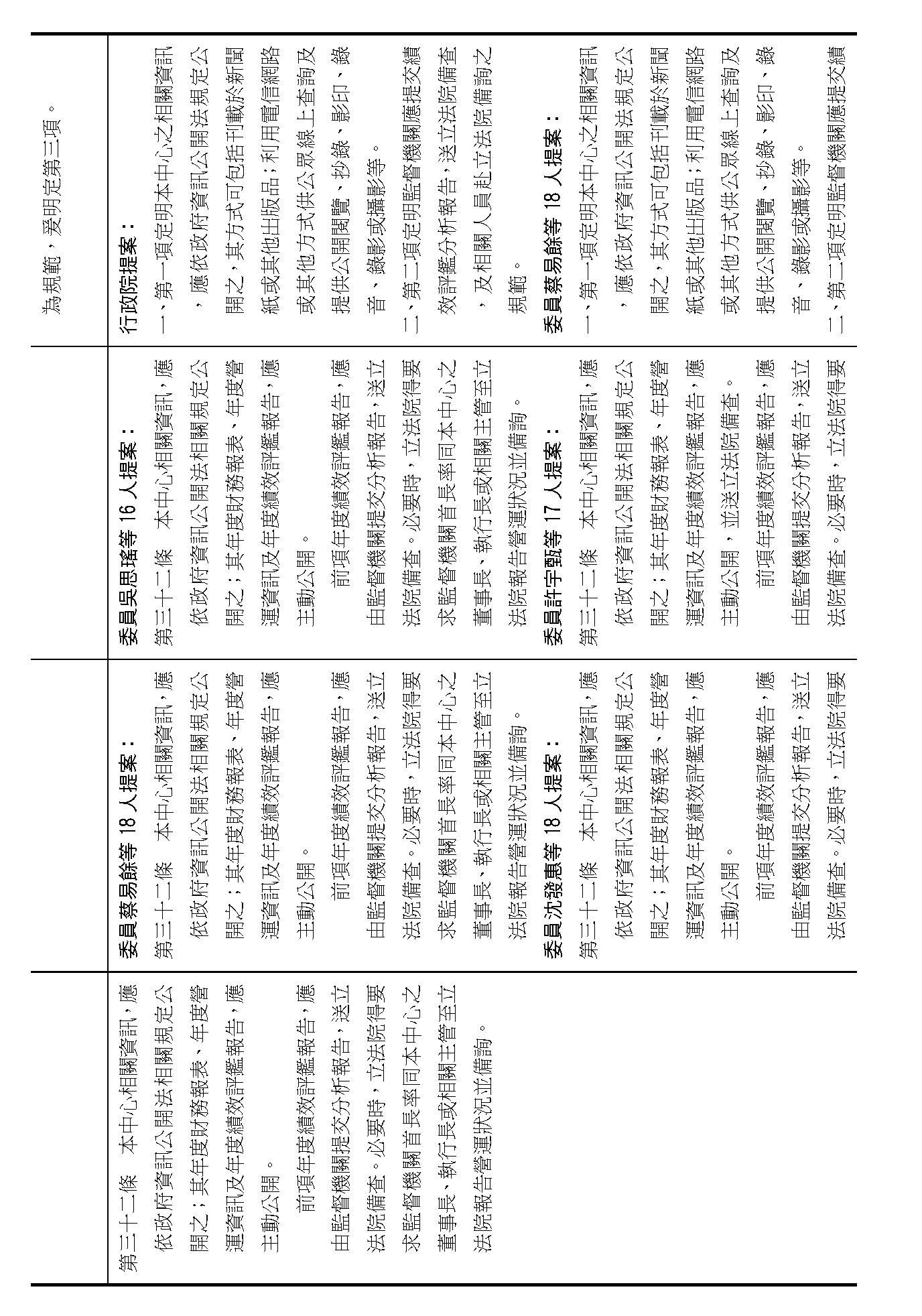 陳院長璋玲:許宇甄委員所提的是增加新的一條,這些條文裡面的內容其實在我們行政院版本的第三十二條第一項和第二項就已經明定、含括了,所以我們認為行政院版本沒有增訂這個條文的必要性。