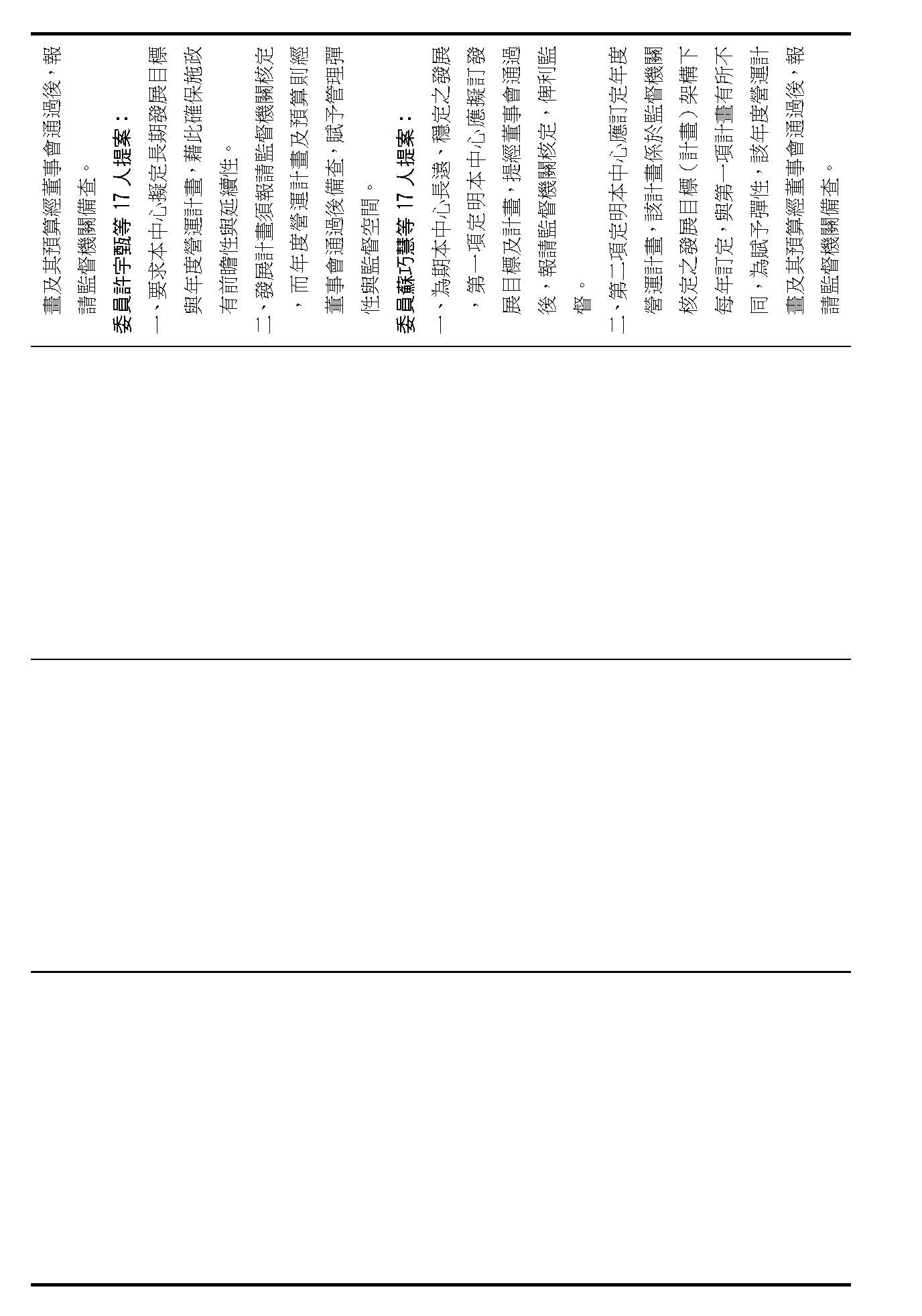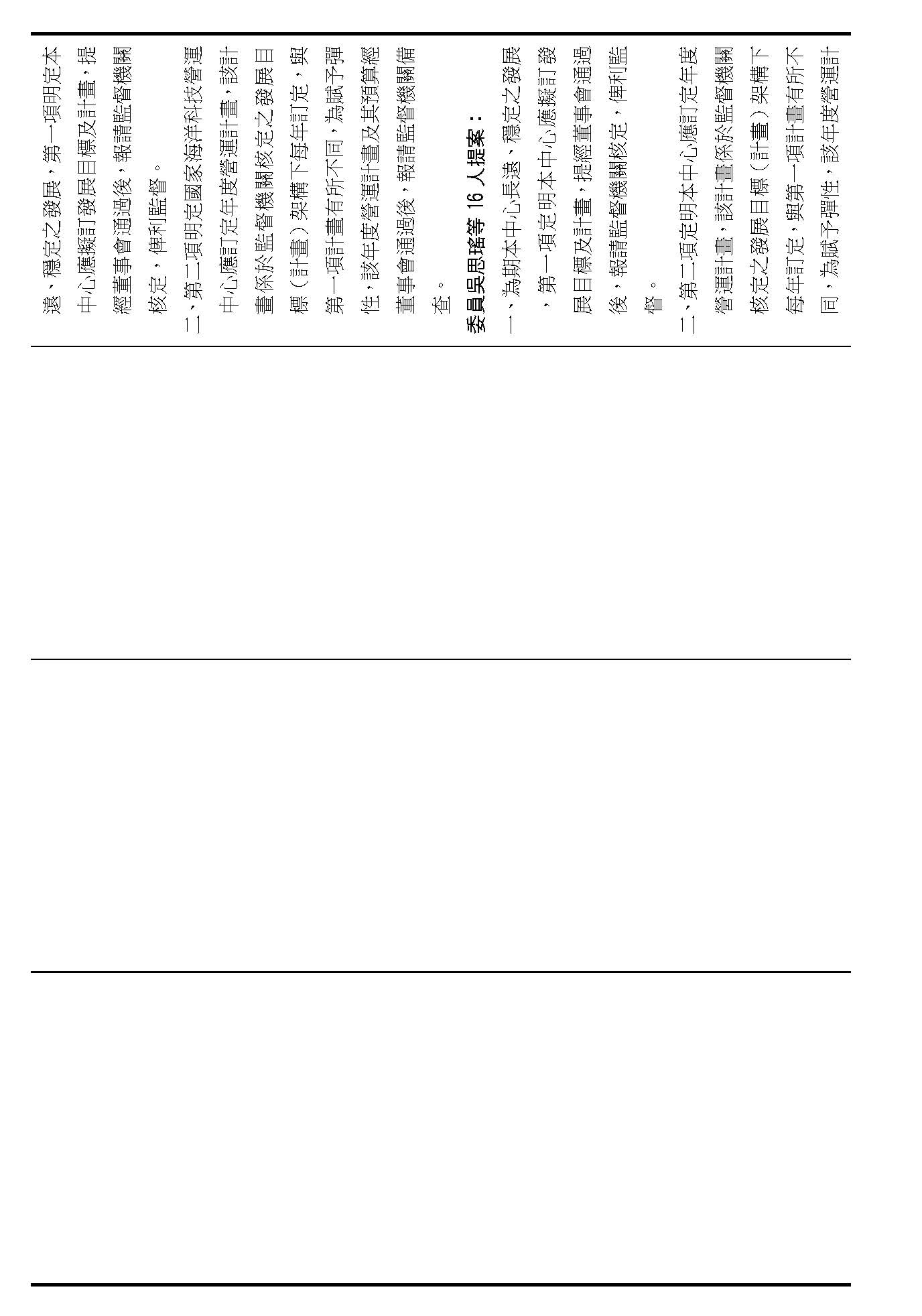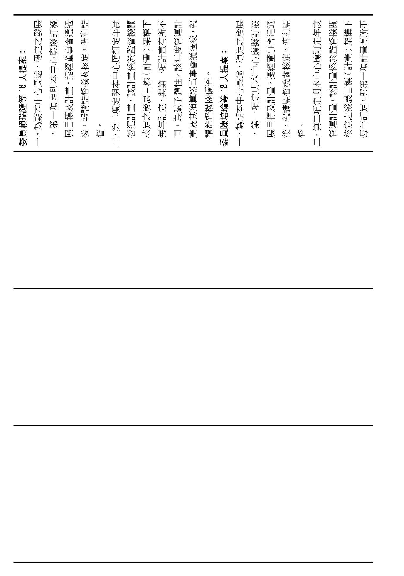 第二十二條就是中心應擬訂發展目標及計畫、訂定年度營運計畫跟預算,請問在場委員有沒有其他不同意見?(無)如果沒有的話,我們就按照行政院的提案通過。