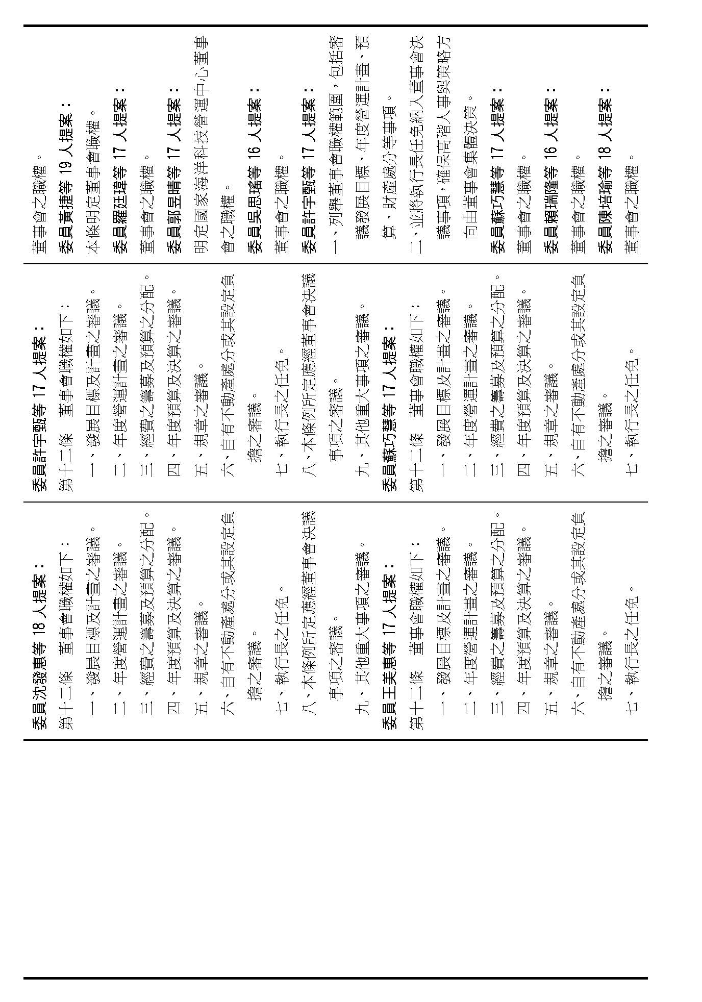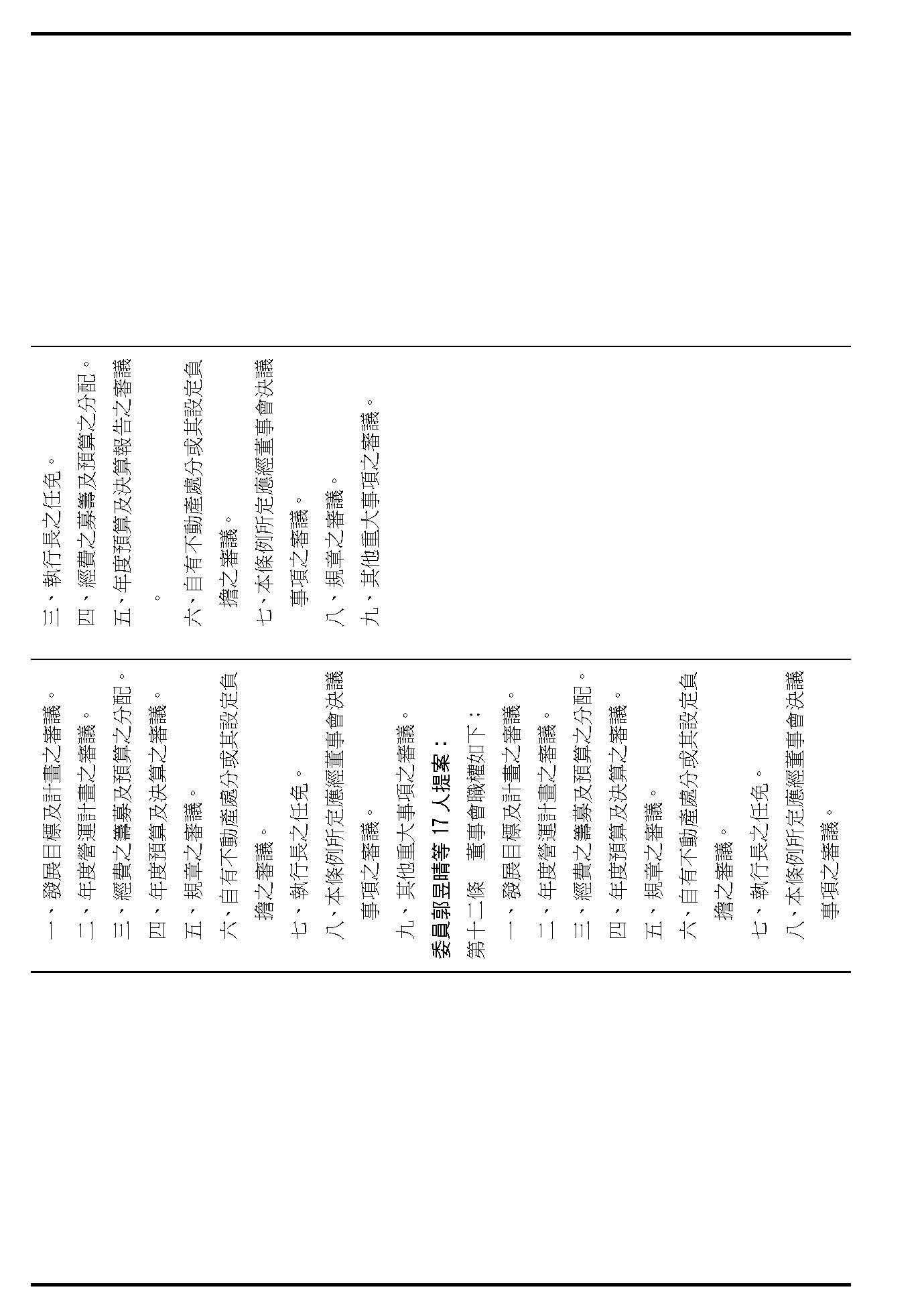 第十二條是董事會的職權事項,請問在場委員有沒有什麼意見?(無)如果沒有的話,我們就按照行政院的提案通過。