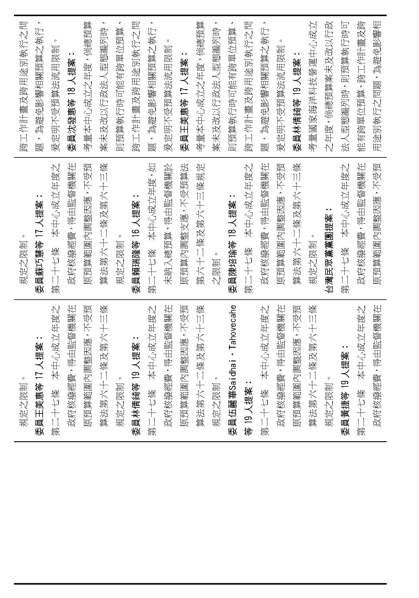 主席:我們在等條文的這段期間,請宣讀第二十條的附帶決議。