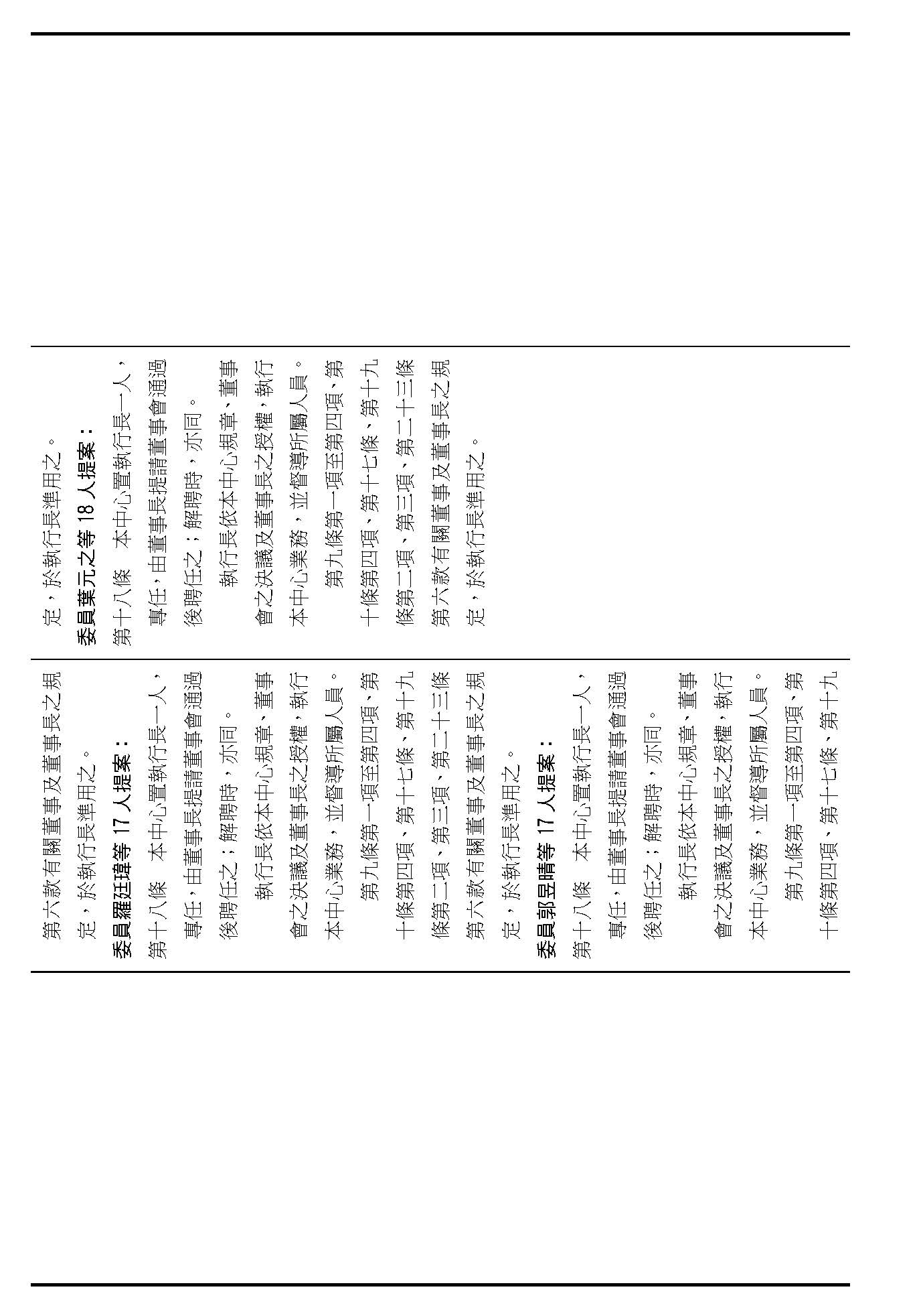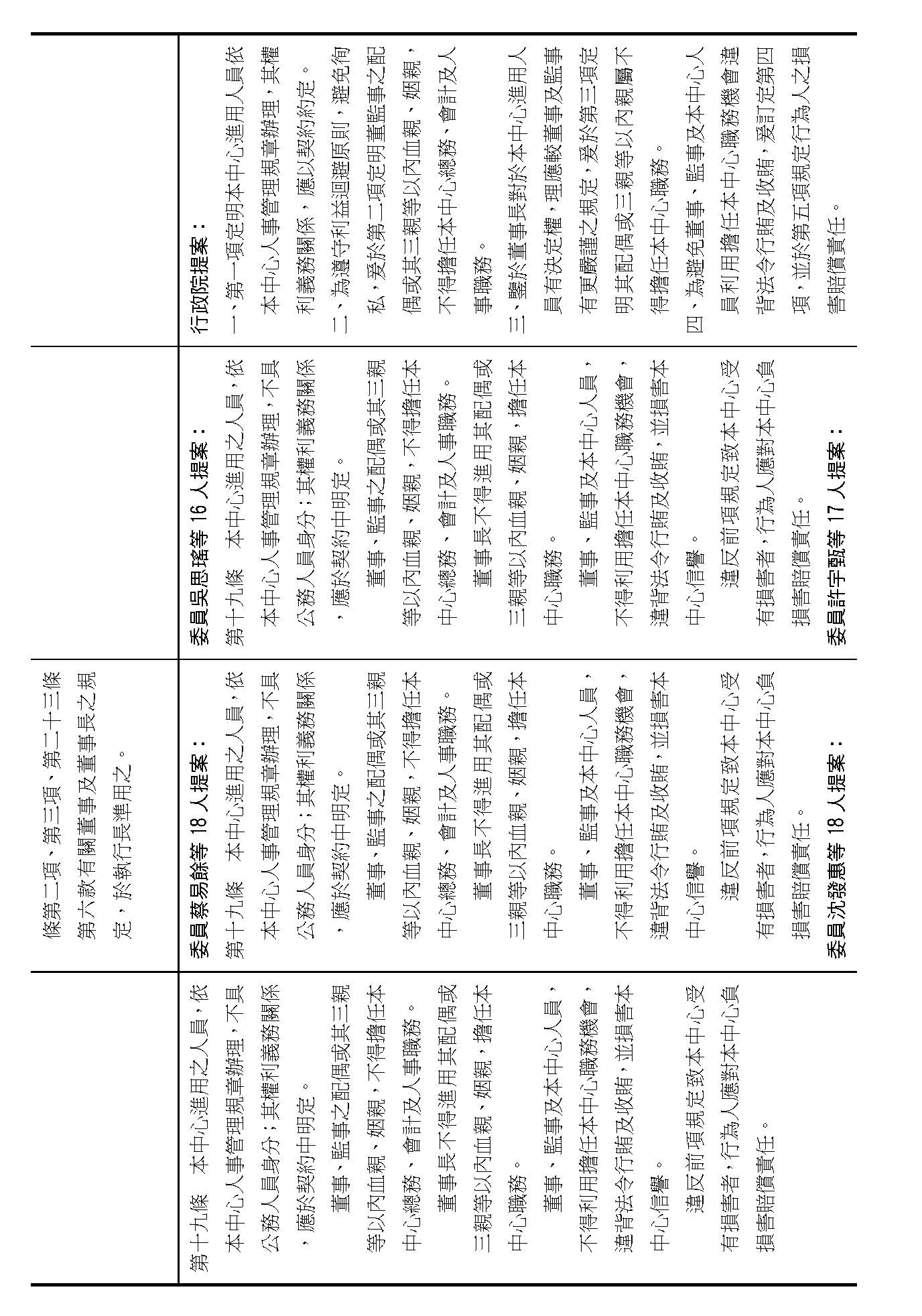 第十八條,中心執行長的遴聘方式跟職權,請問在場委員有沒有其他不同意見?(無)沒有的話,就按照行政院的提案通過。