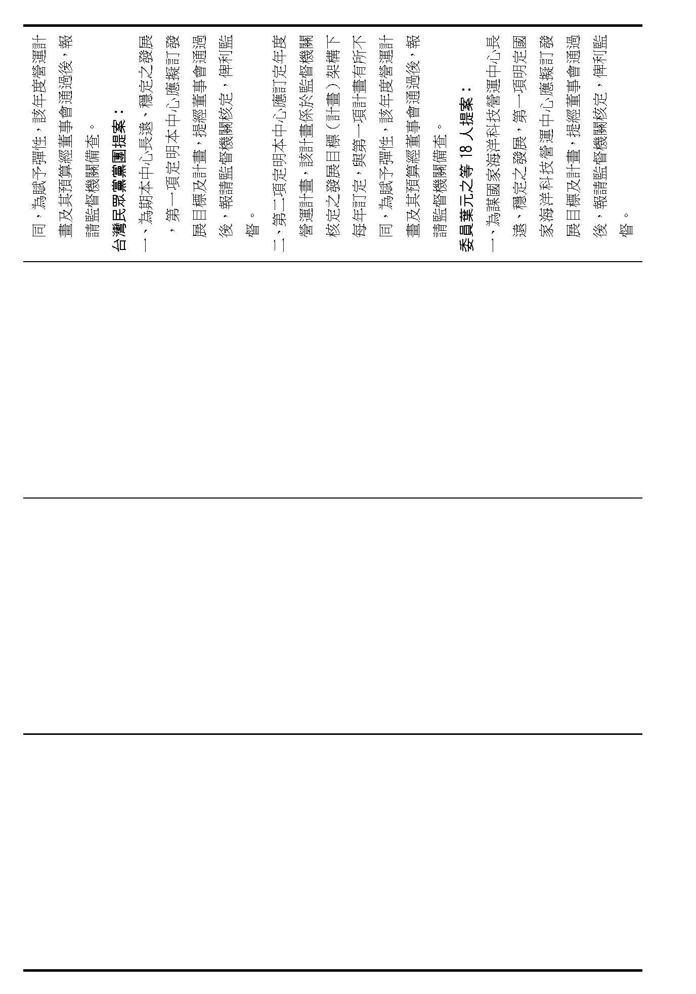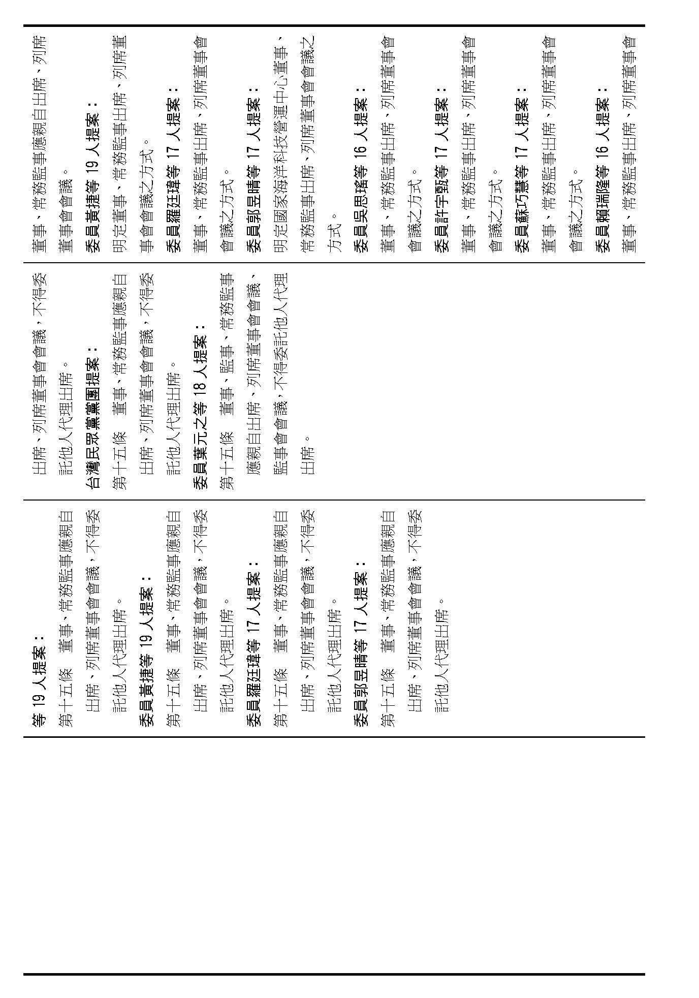 第十五條就是董事、常務監事出席會議的方式,請問在場委員有沒有不同意見?(無)沒有的話,就按照行政院的提案通過。