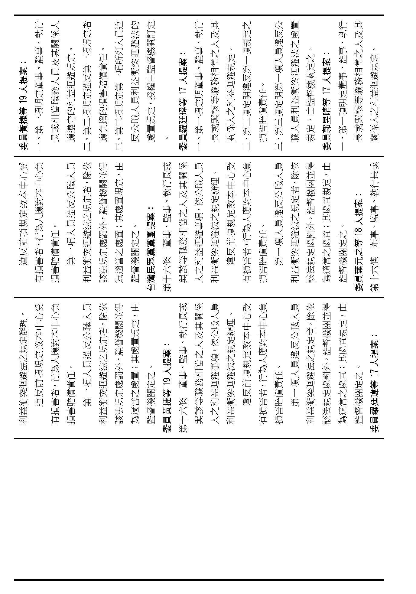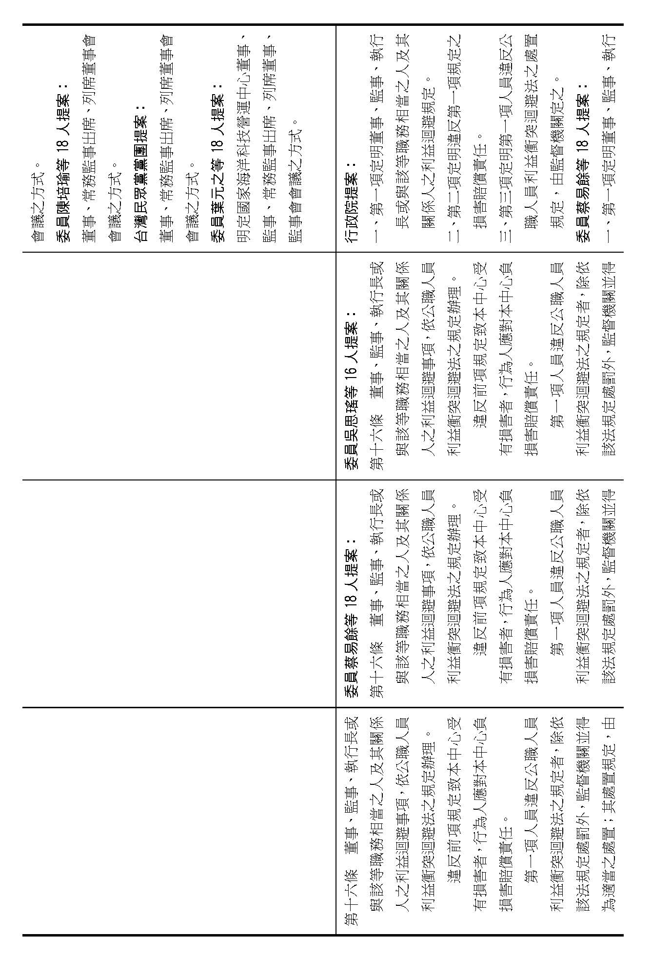 第十六條,董事、監事利益迴避原則,這大家都有高度共識,在場委員有沒有其他不同意見?(無)如果沒有的話,第十六條就按照行政院的提案通過。