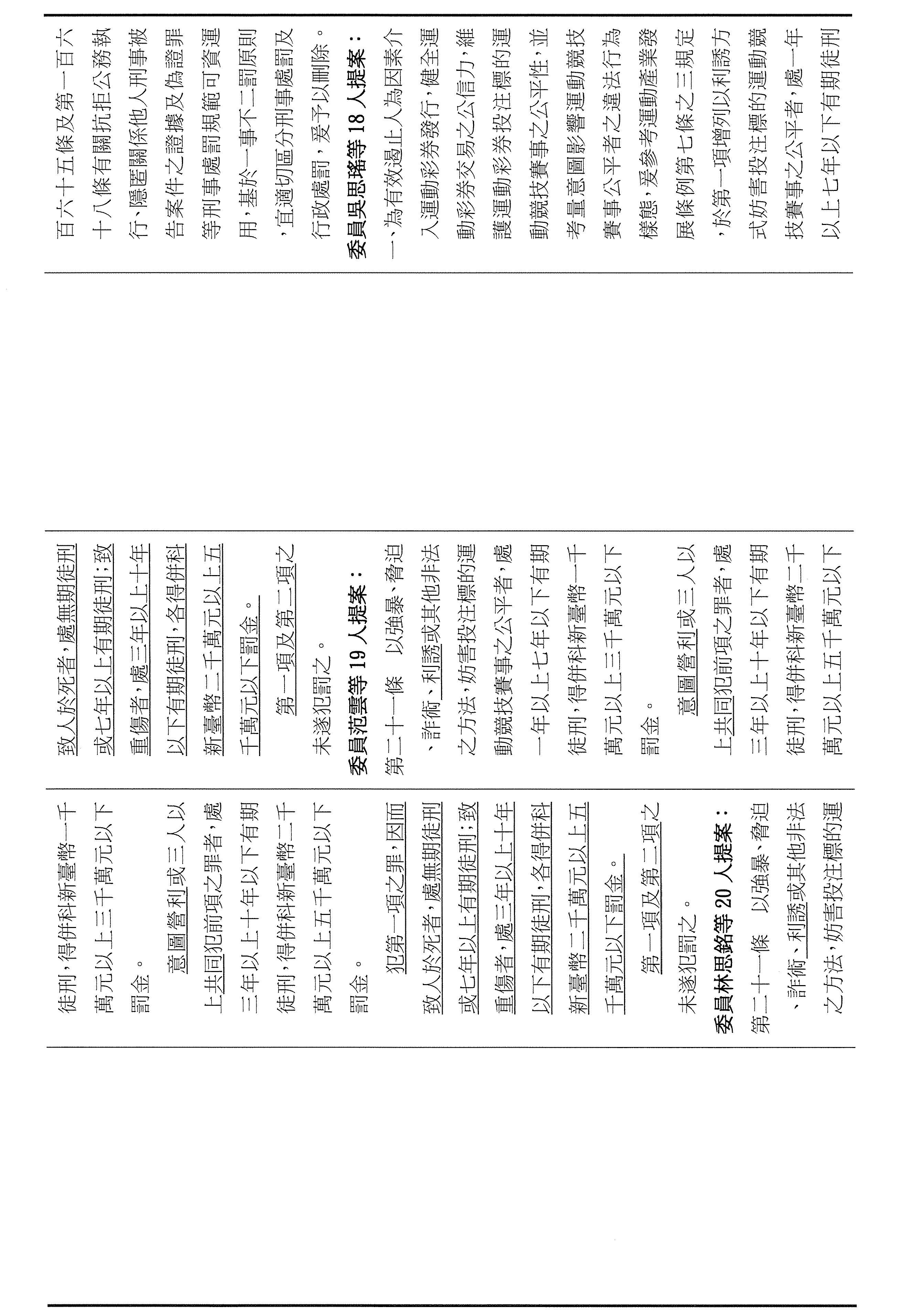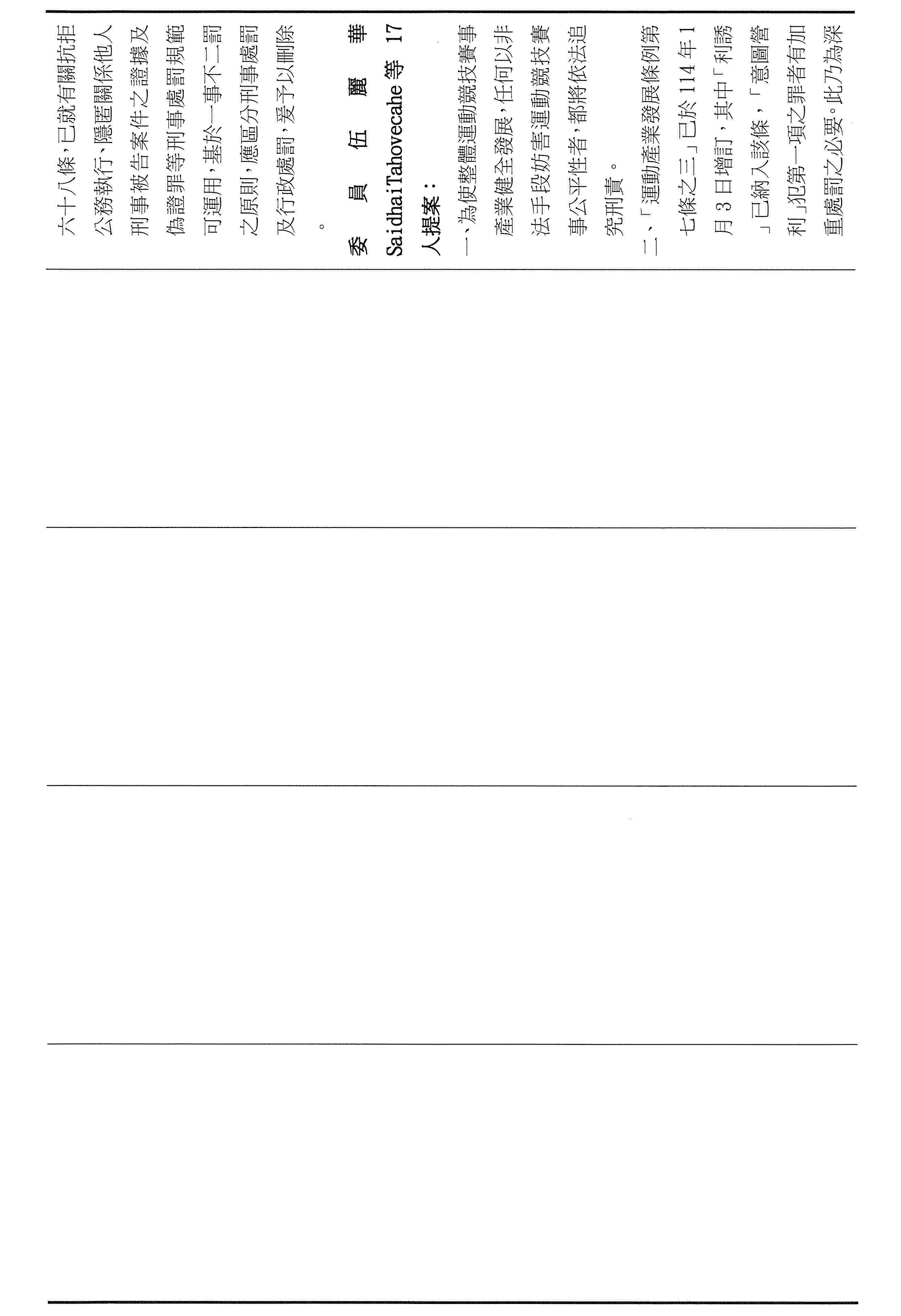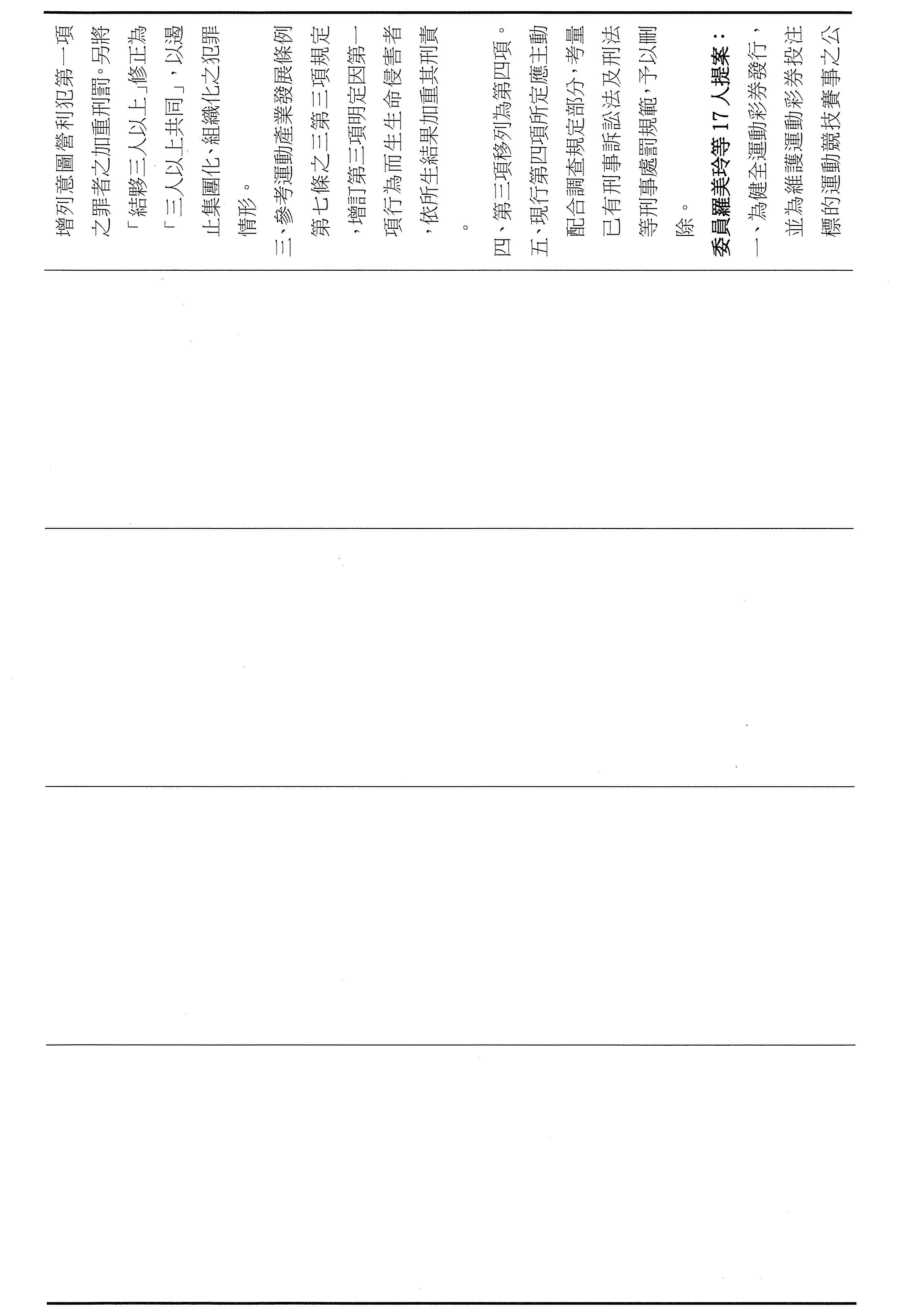 第三個是有關於今天審議運彩條例的臨時提案。