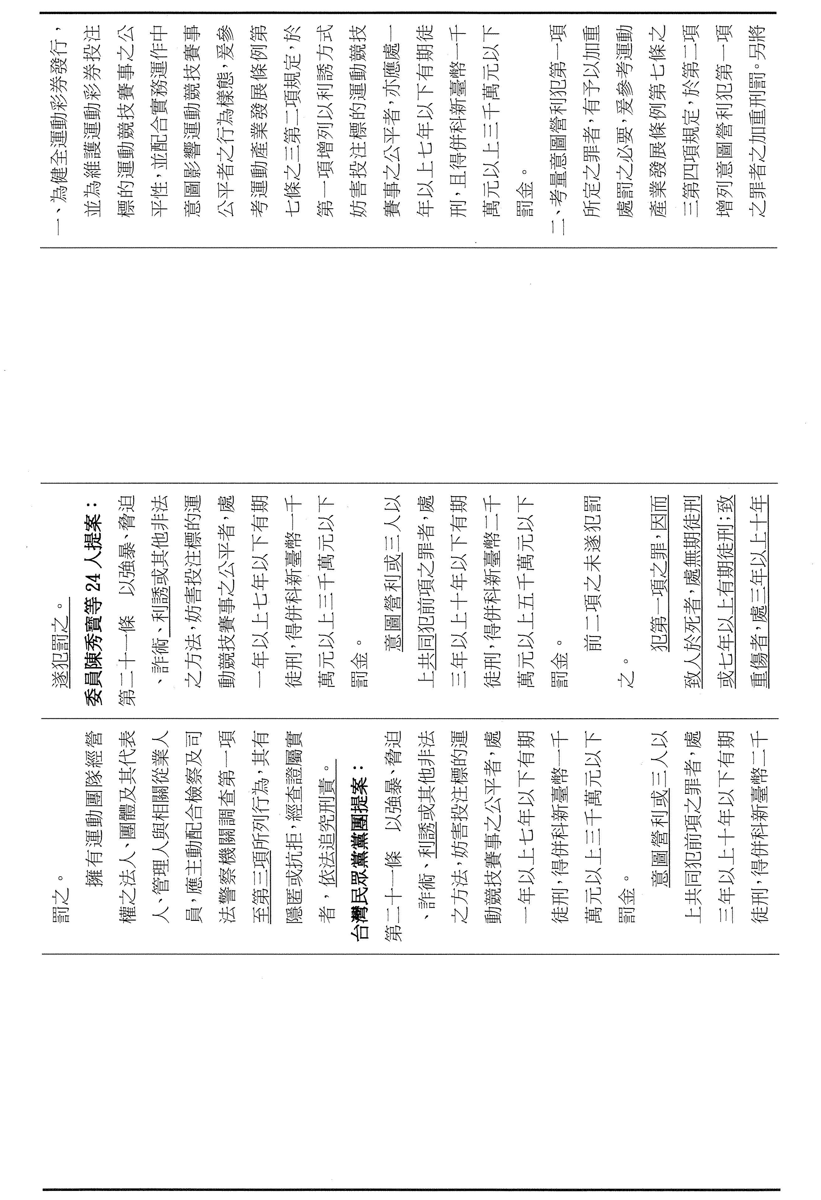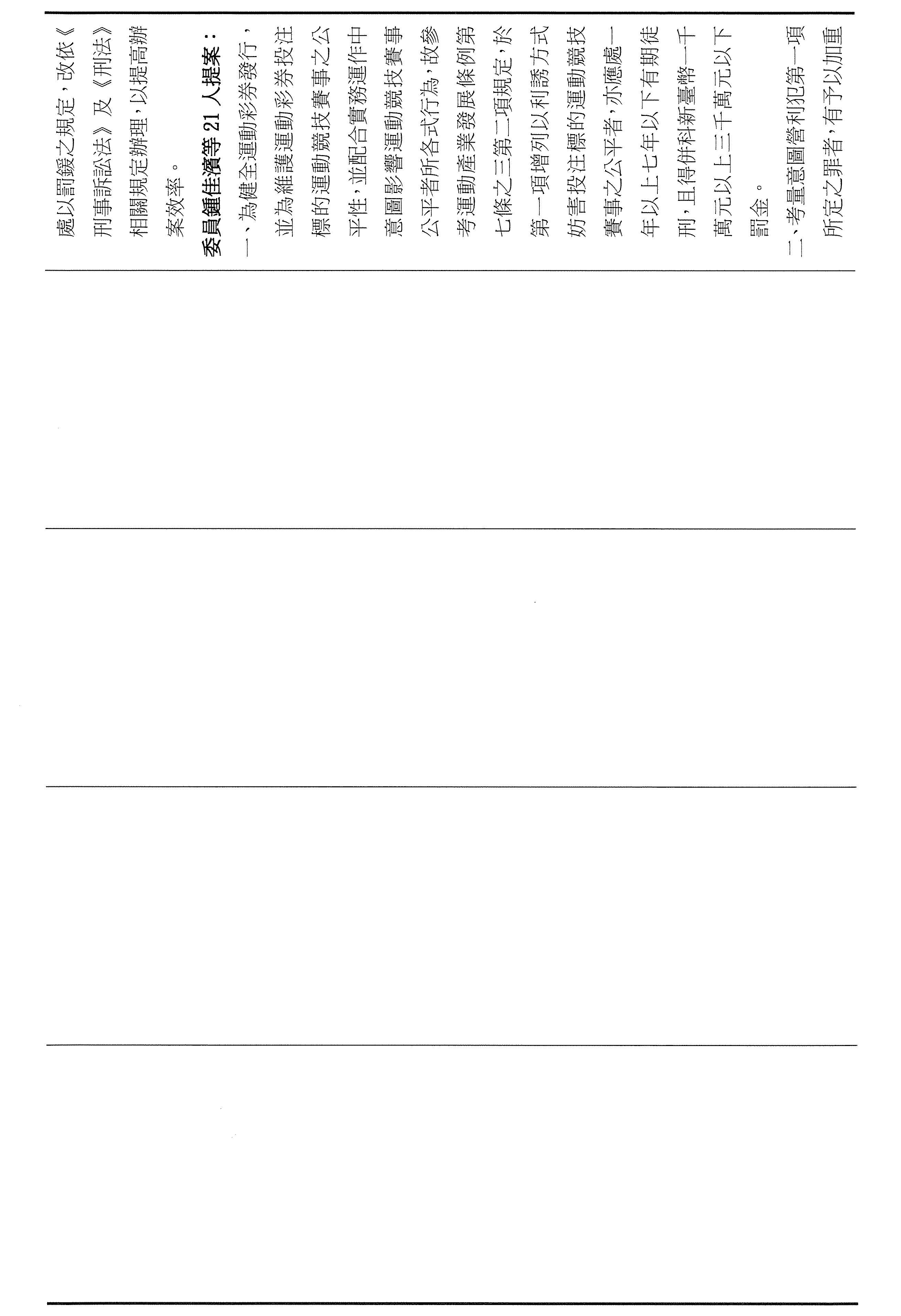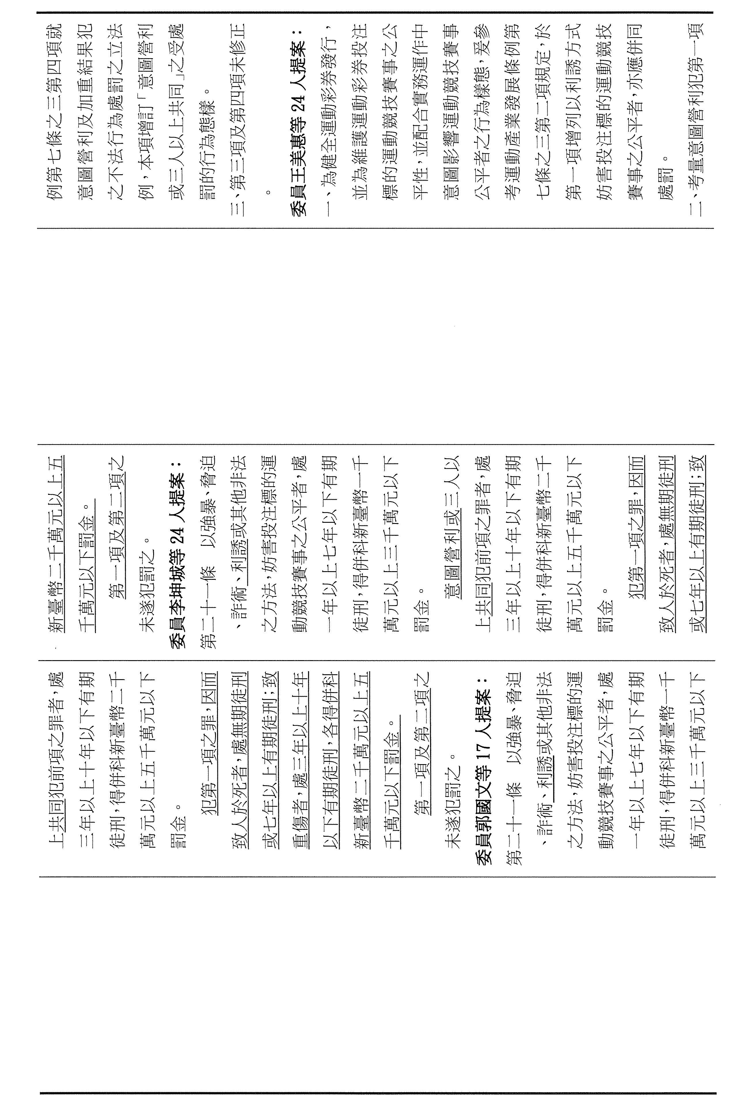 第三個是有關於今天審議運彩條例的臨時提案。