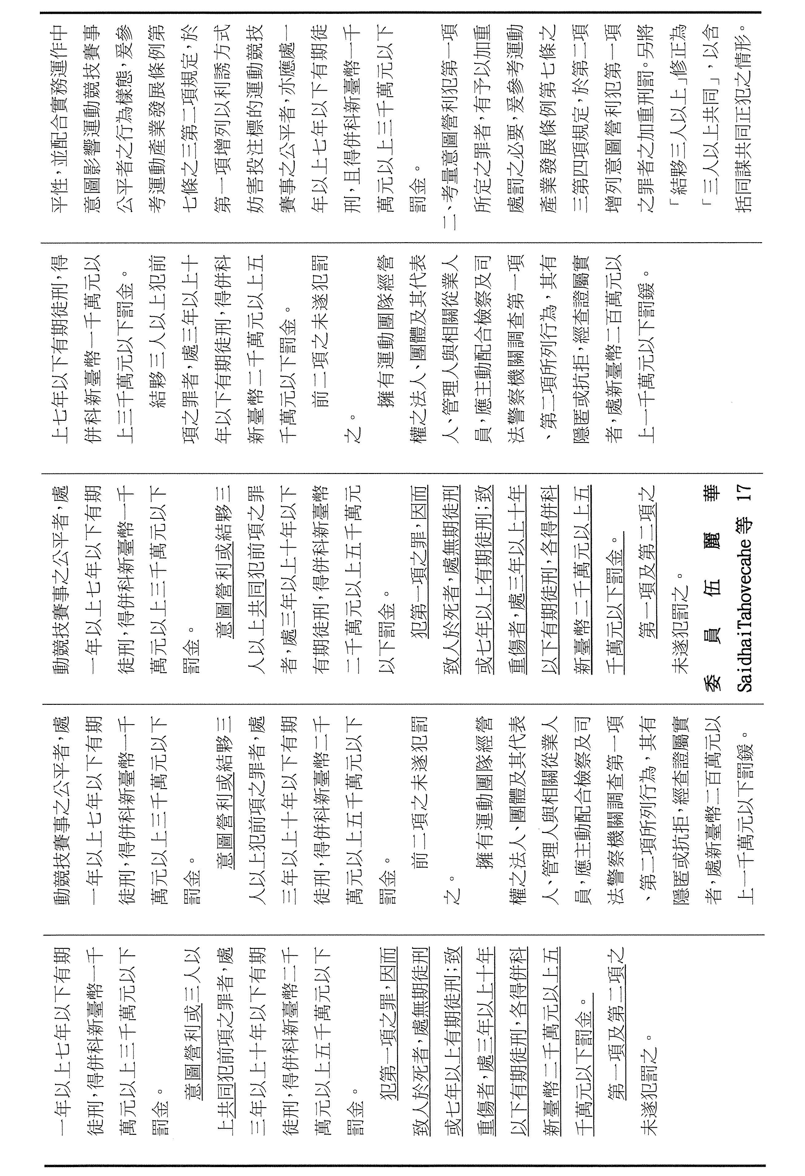 李委員坤城:文字方面我請教一下,剛才我聽佳濱委員講到「法人、團體等在防治賽事舞弊……」這邊,我問一下,是「防治」這個「治」,還是另外一個「制定」的「制」?