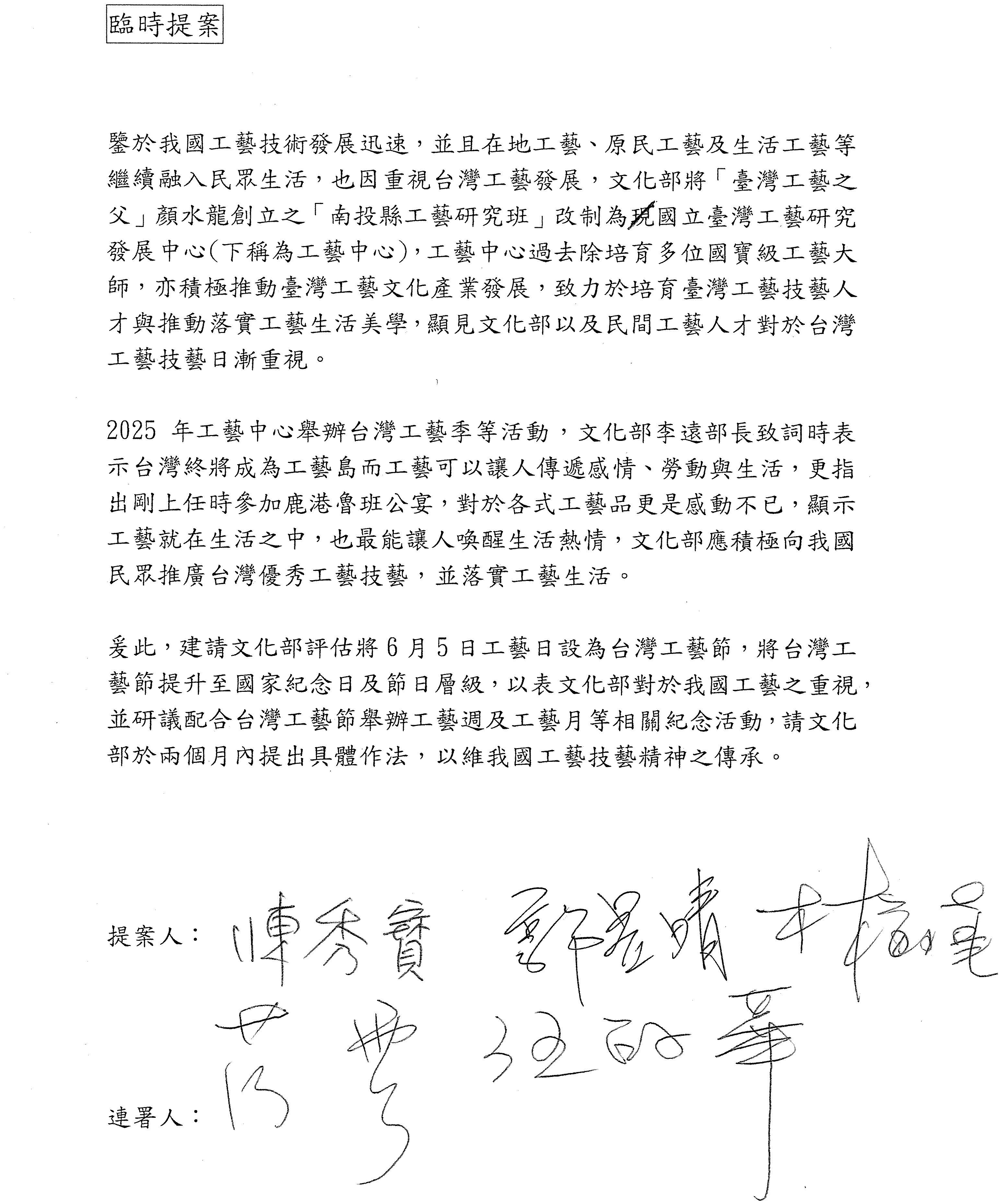 連署人:吳沛憶 陳秀寳 郭昱晴 范 雲