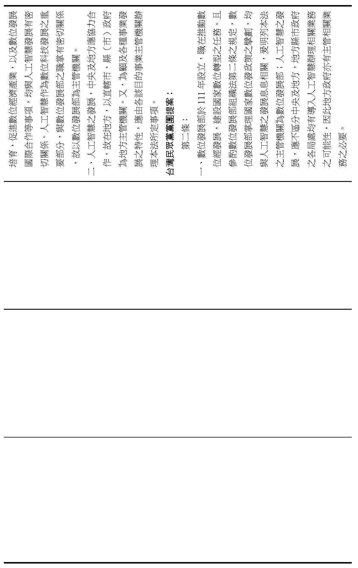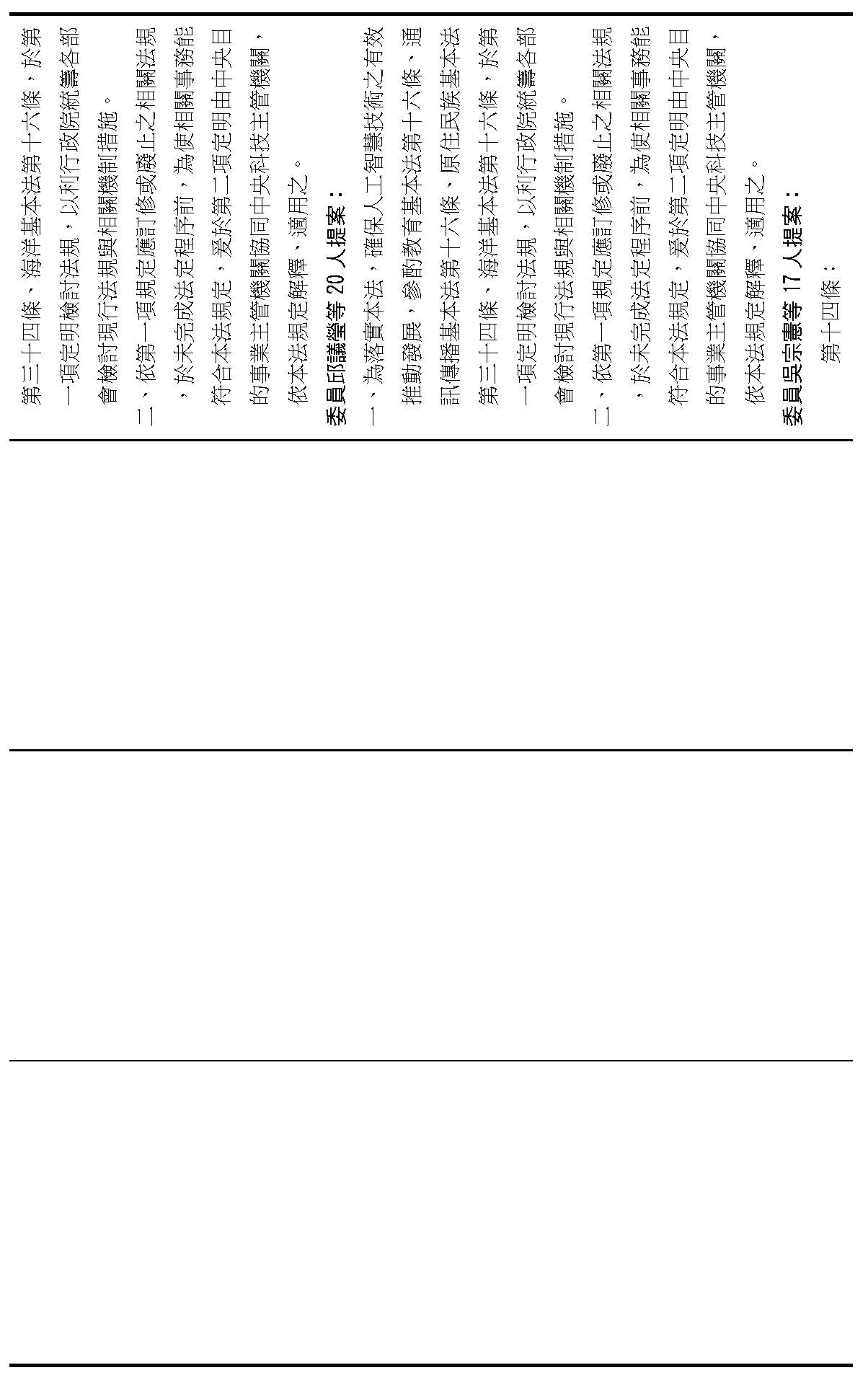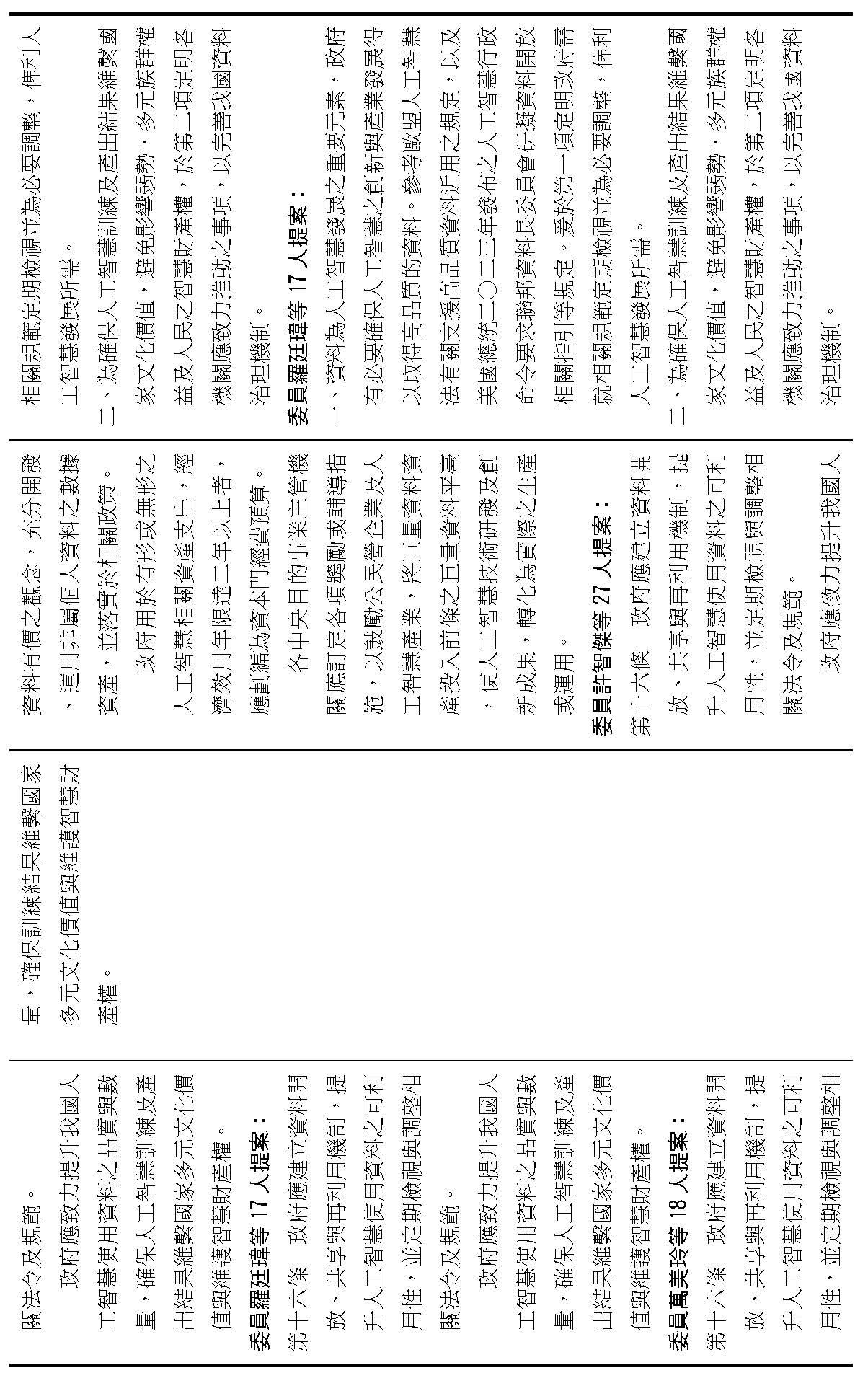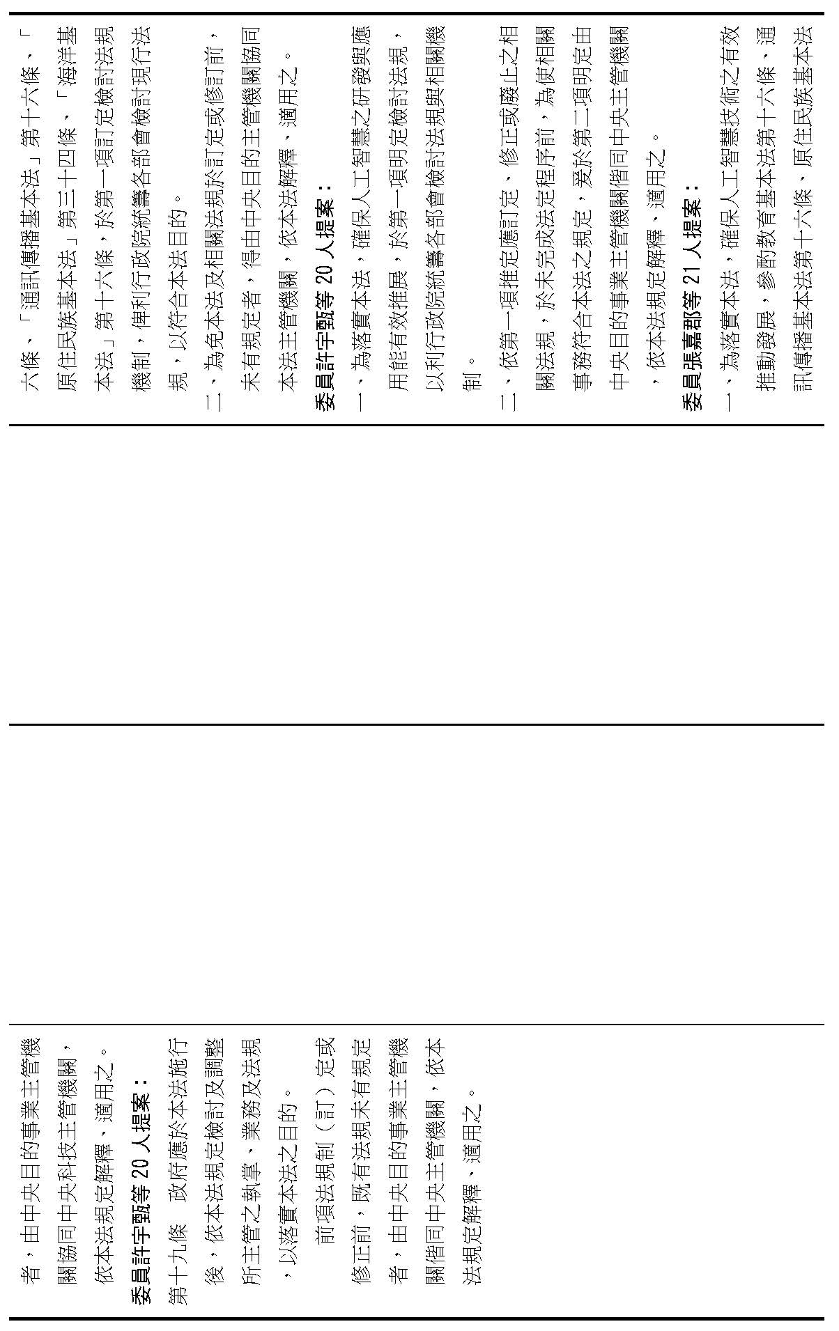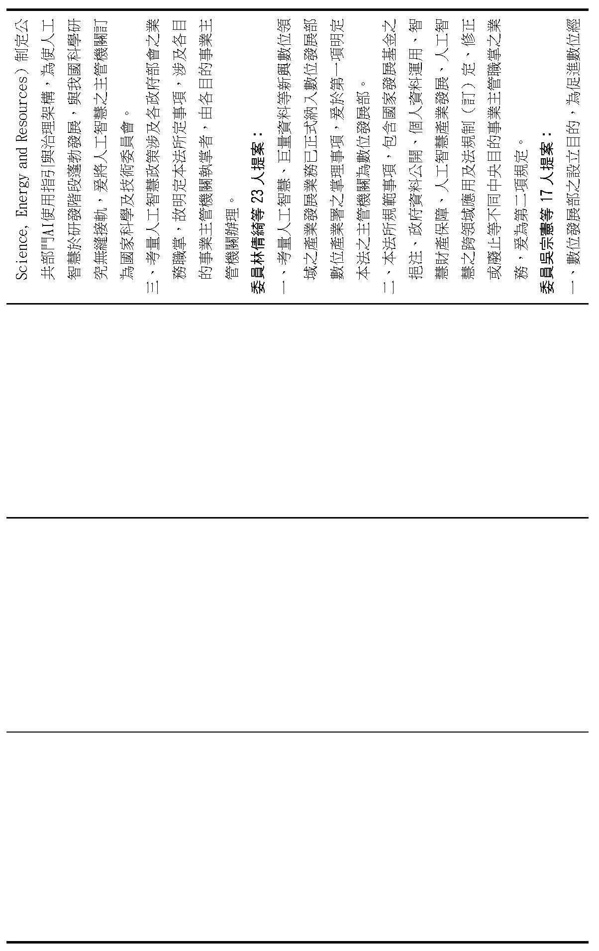 主席:請問數發部部長、國科會主委能不能擬共識的條文?有委員提出是不是可以擬?請部長回應好不好?可不可以擬一個共識的條文?好,謝謝。