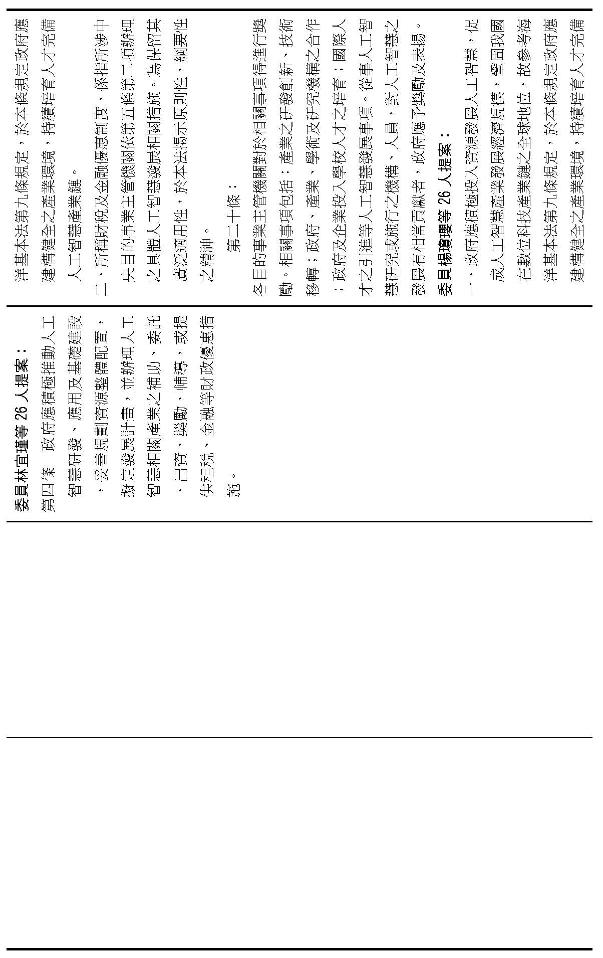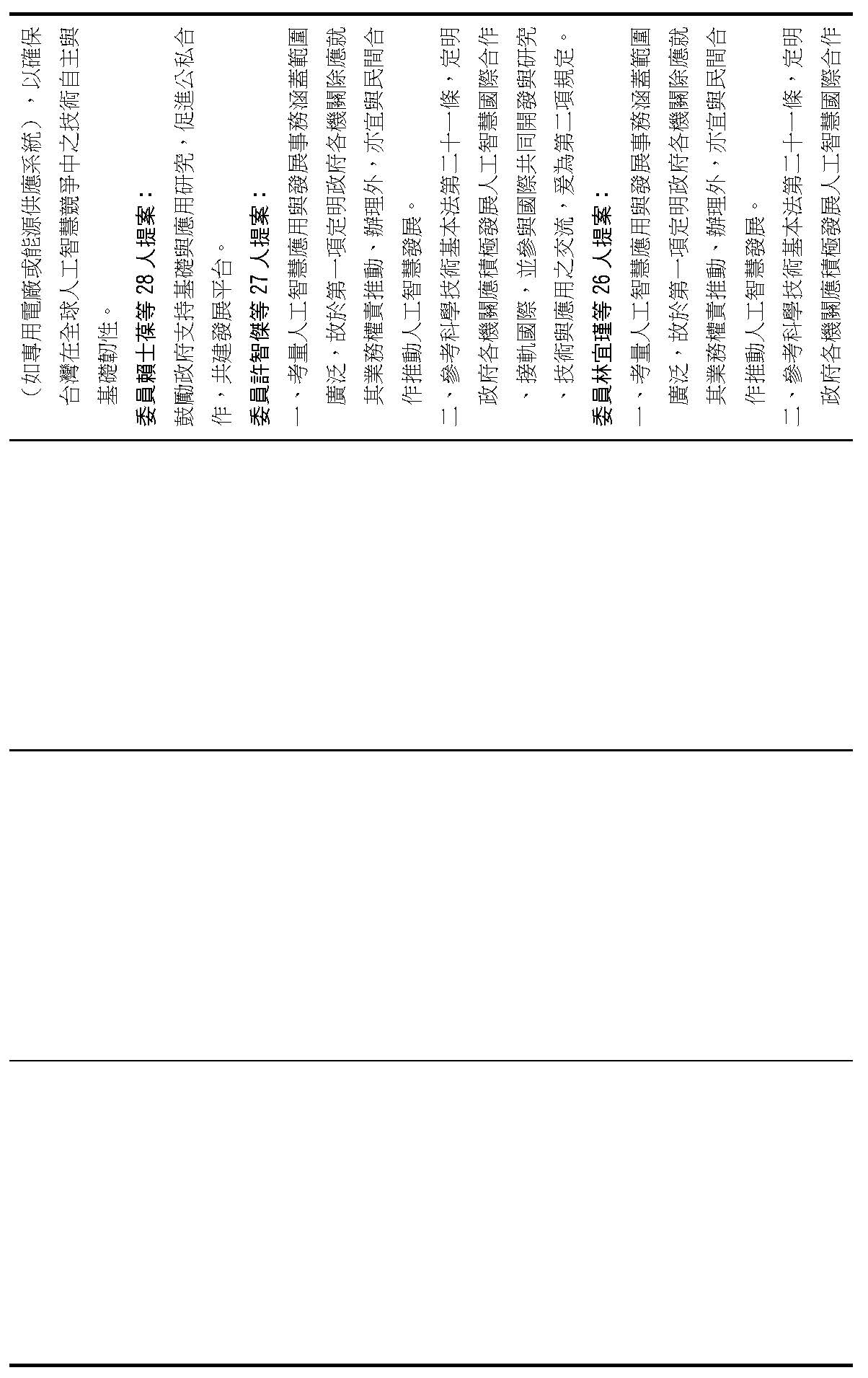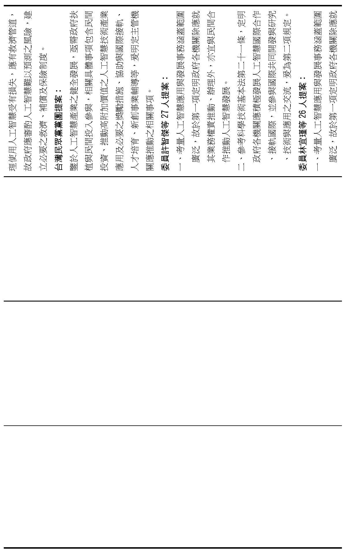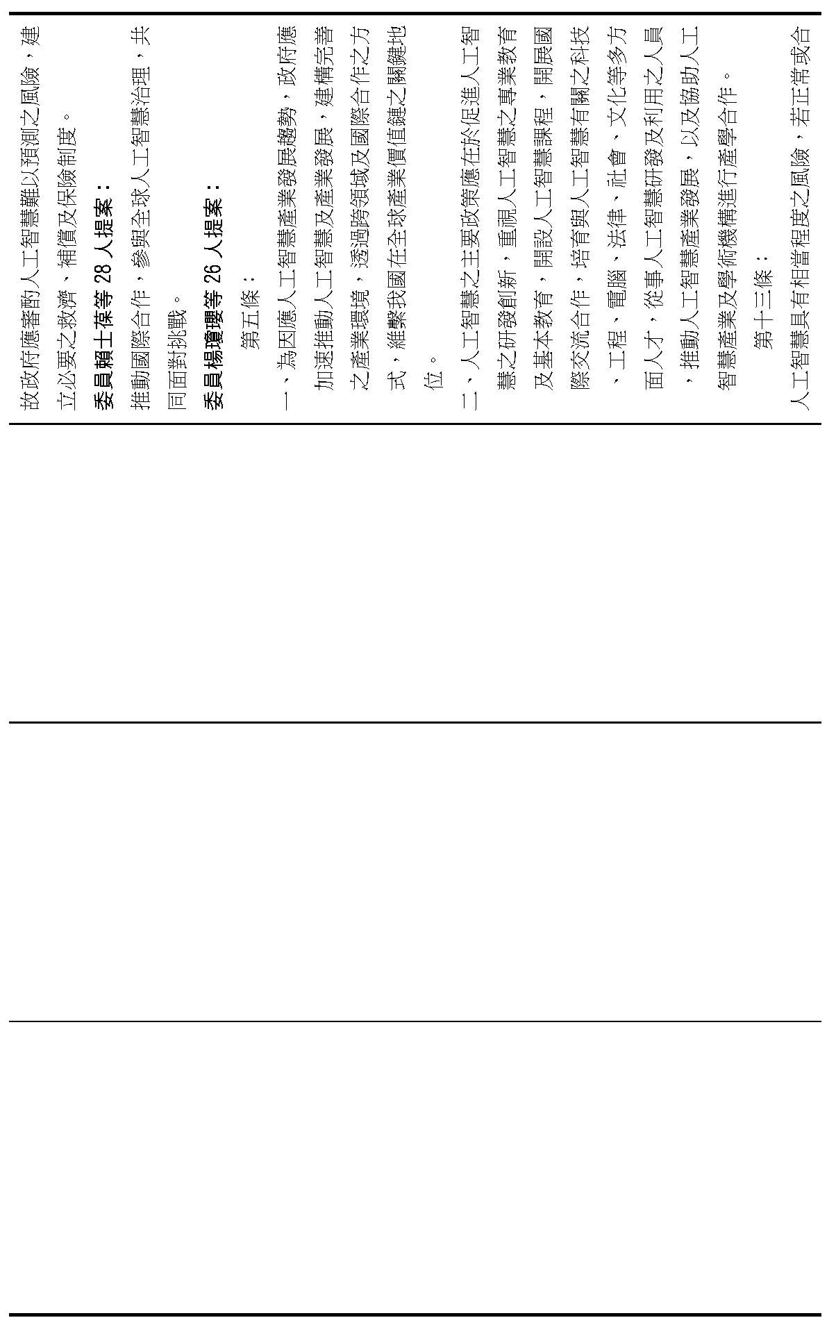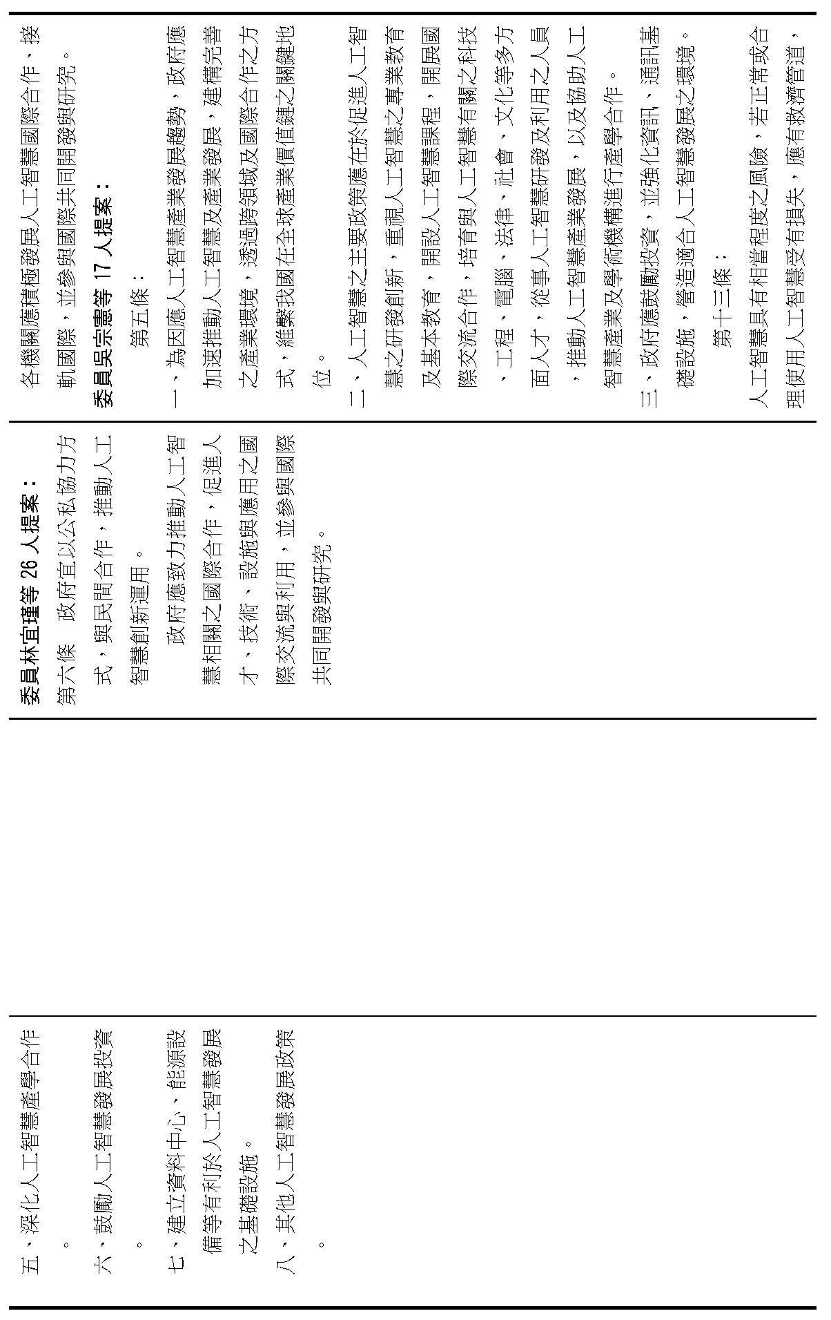 主席:請問數發部部長、國科會主委能不能擬共識的條文?有委員提出是不是可以擬?請部長回應好不好?可不可以擬一個共識的條文?好,謝謝。