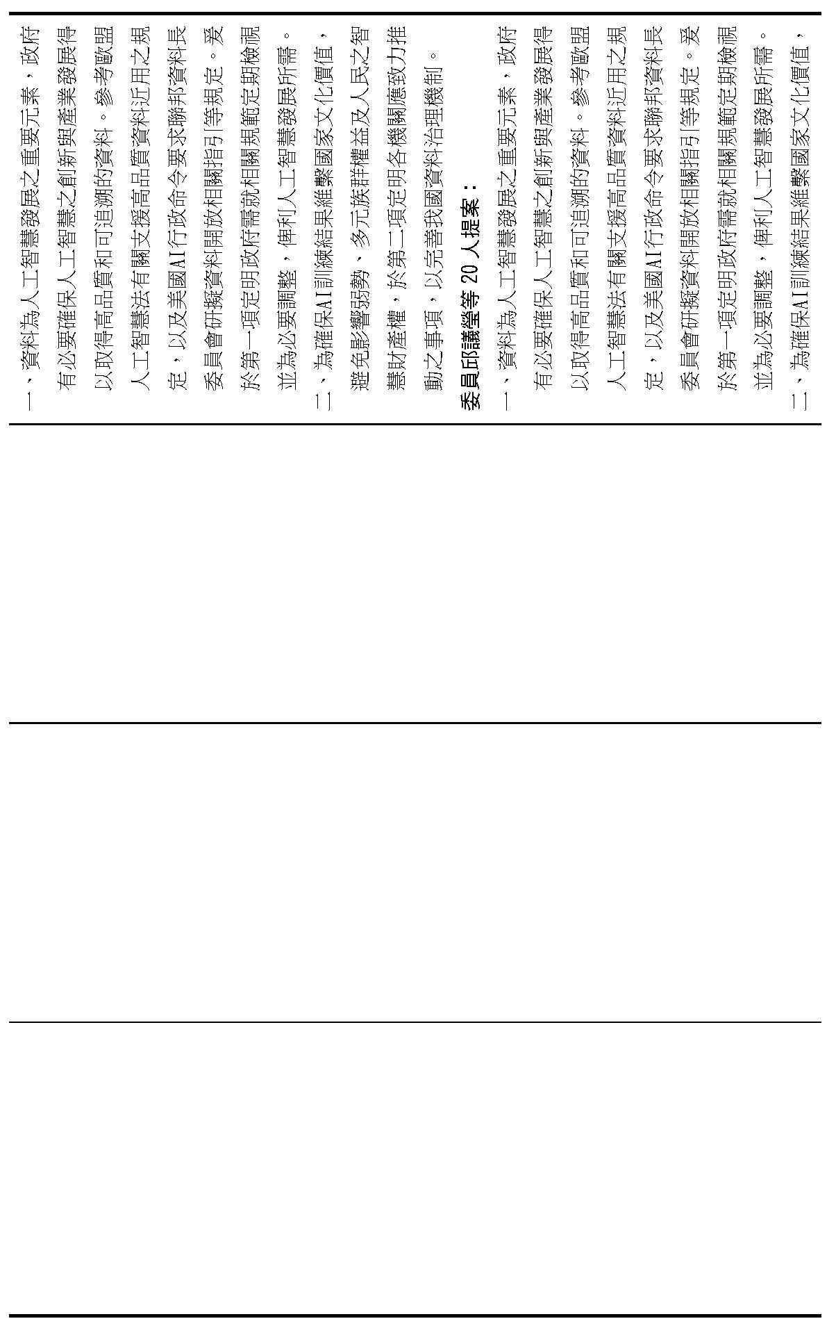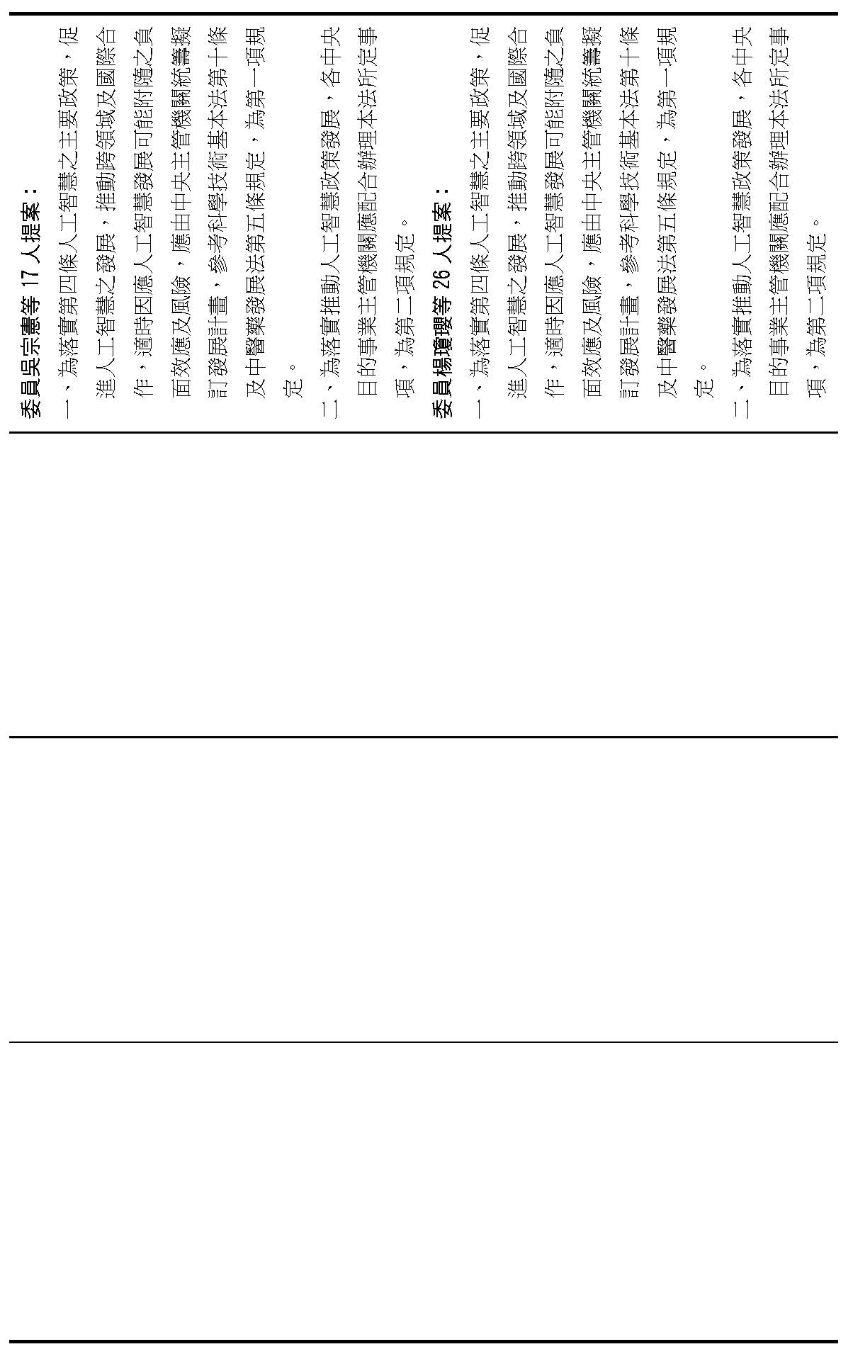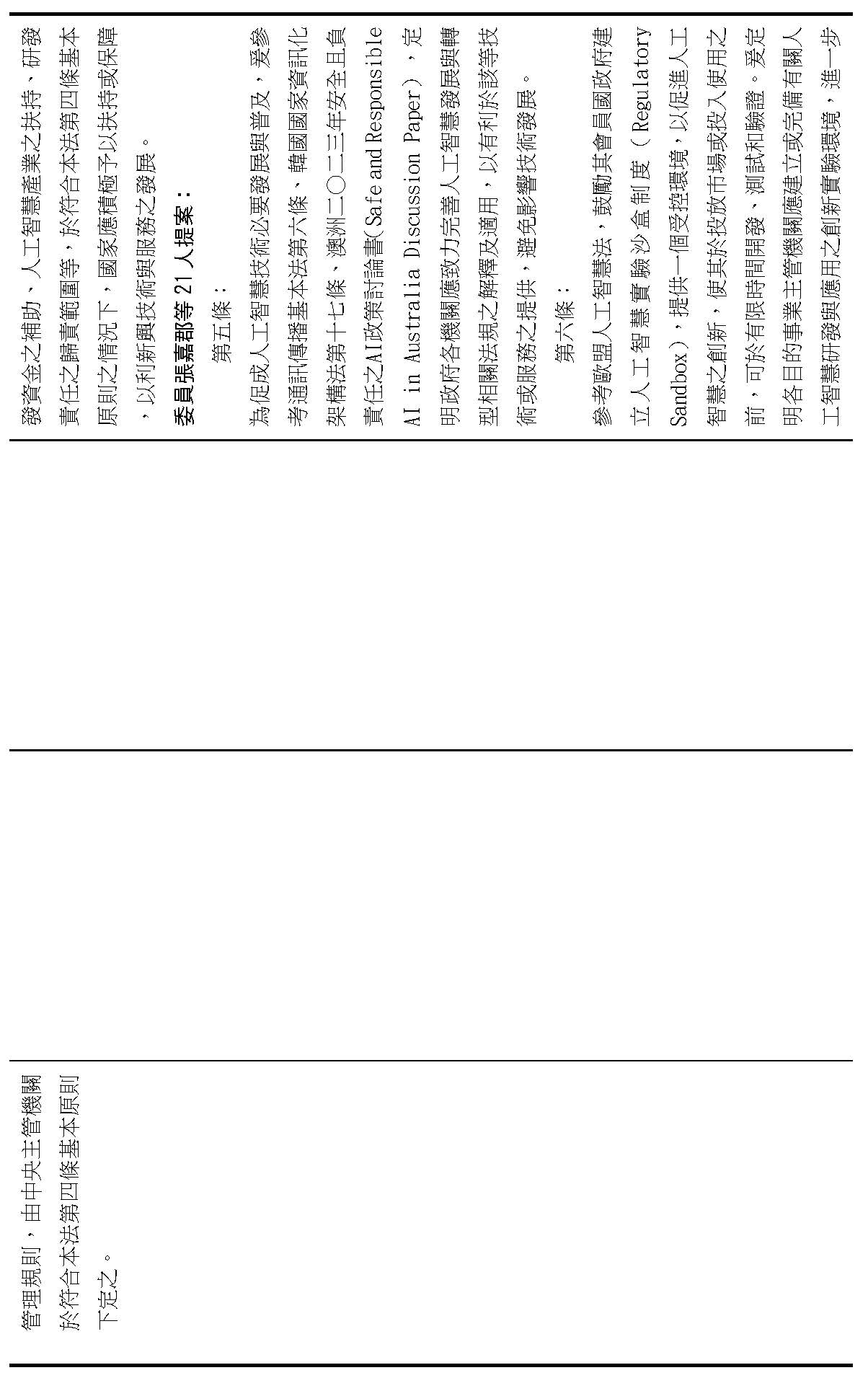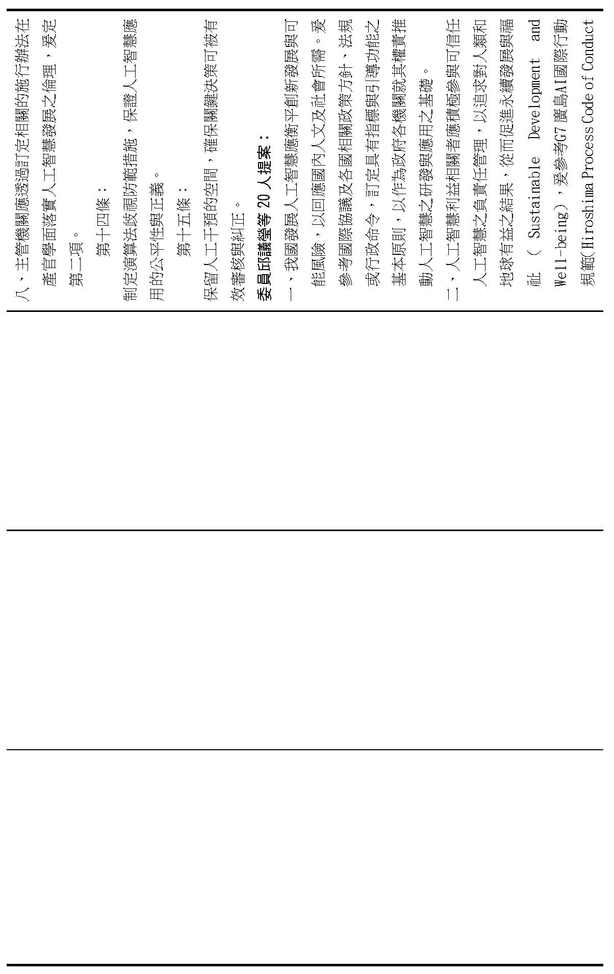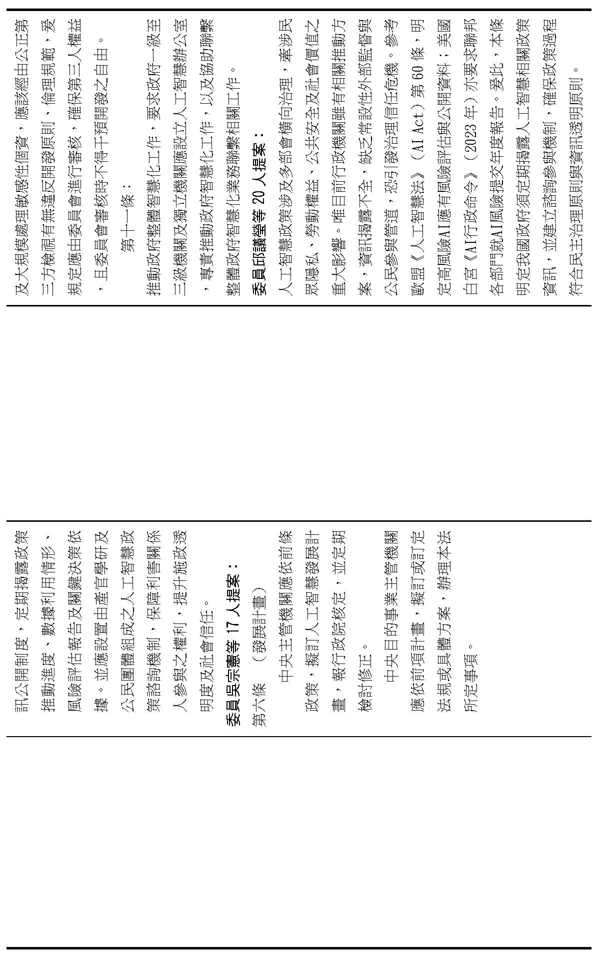 主席:請問數發部部長、國科會主委能不能擬共識的條文?有委員提出是不是可以擬?請部長回應好不好?可不可以擬一個共識的條文?好,謝謝。
