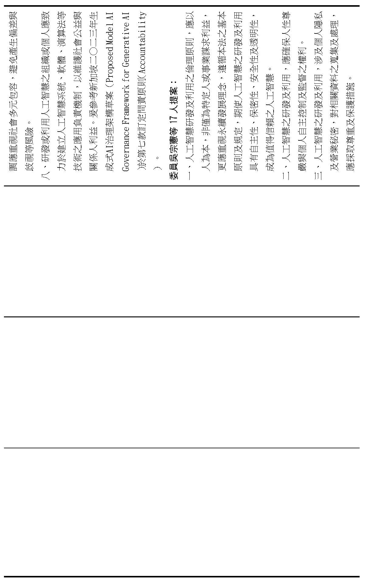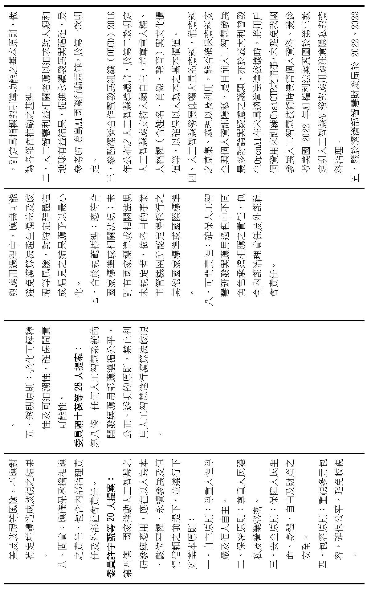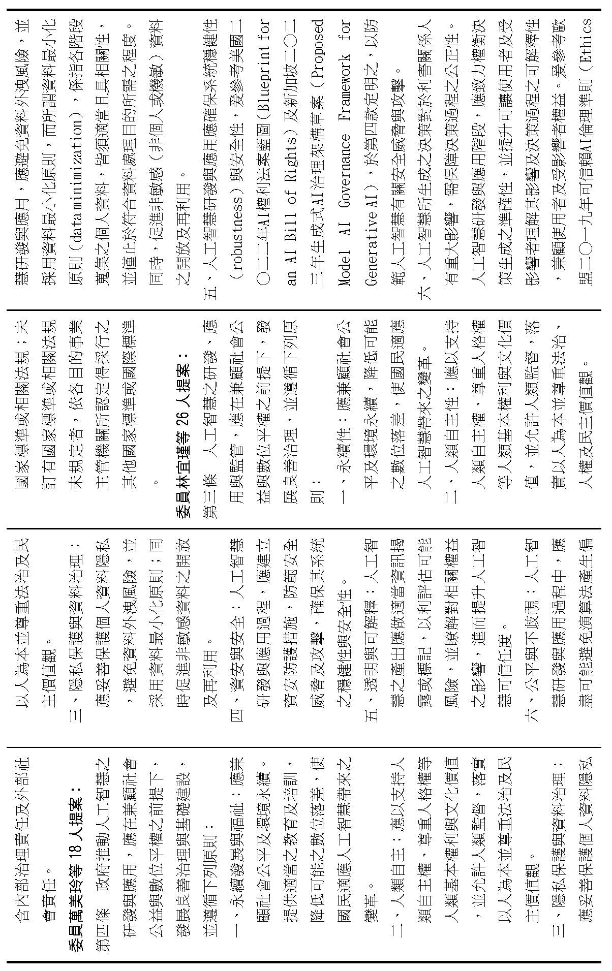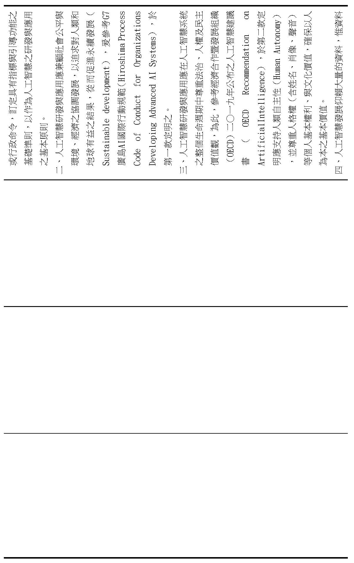 至於工作的內容,我覺得因為剛剛講了AI的變化很快,我們要做的工作不止這8項,所以我覺得這邊應該不用去條列,而是一個基本原則的宣示比較重要。