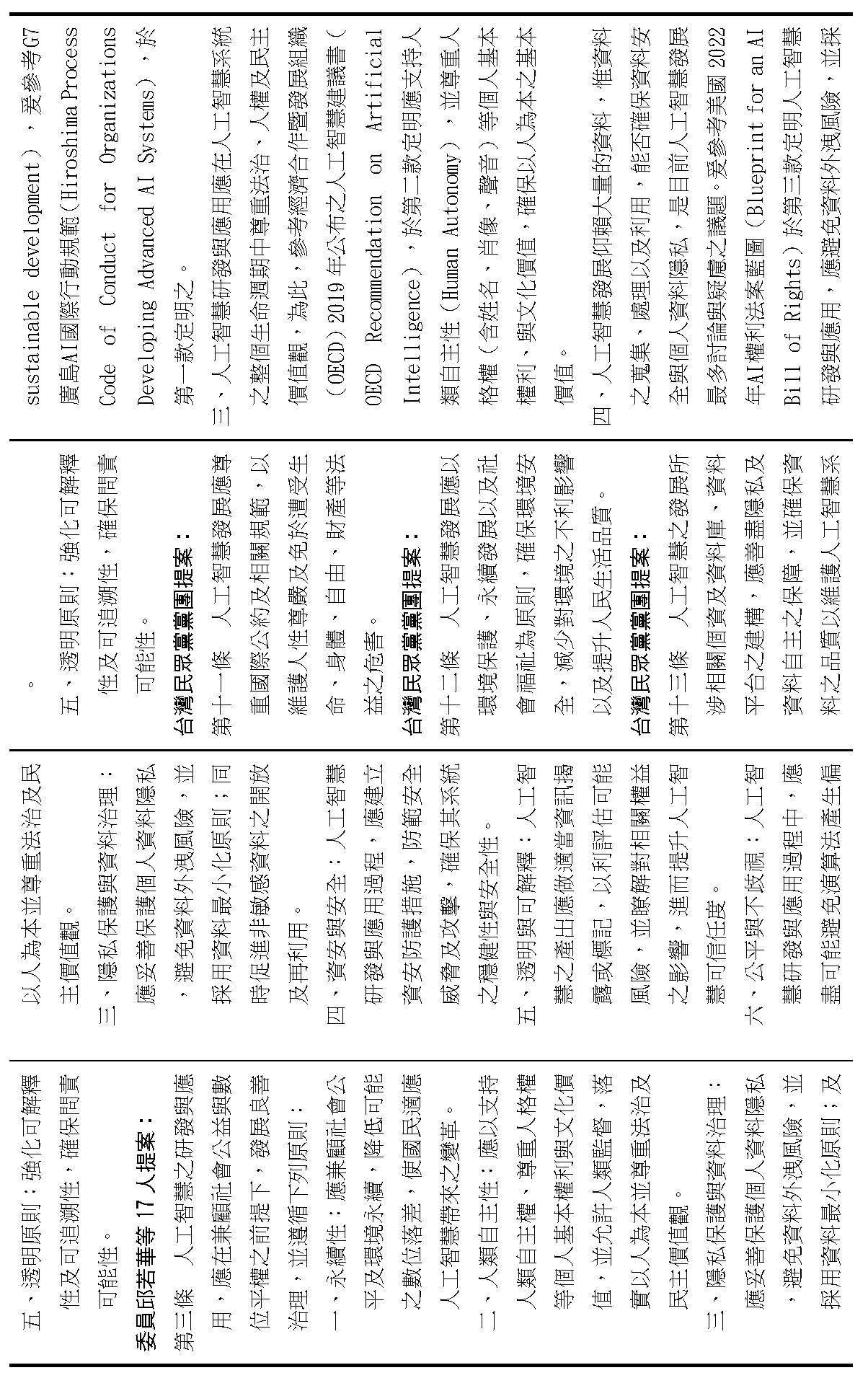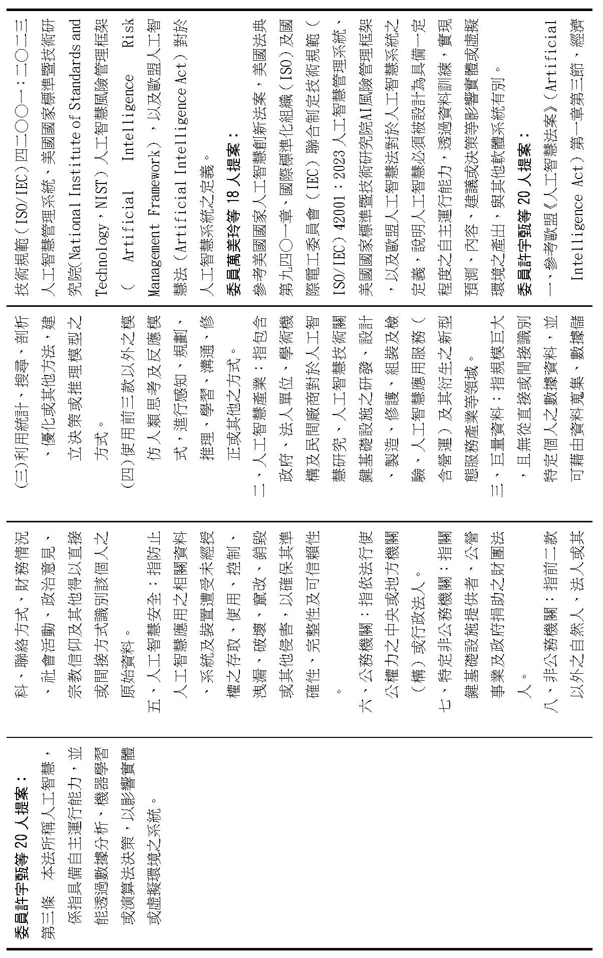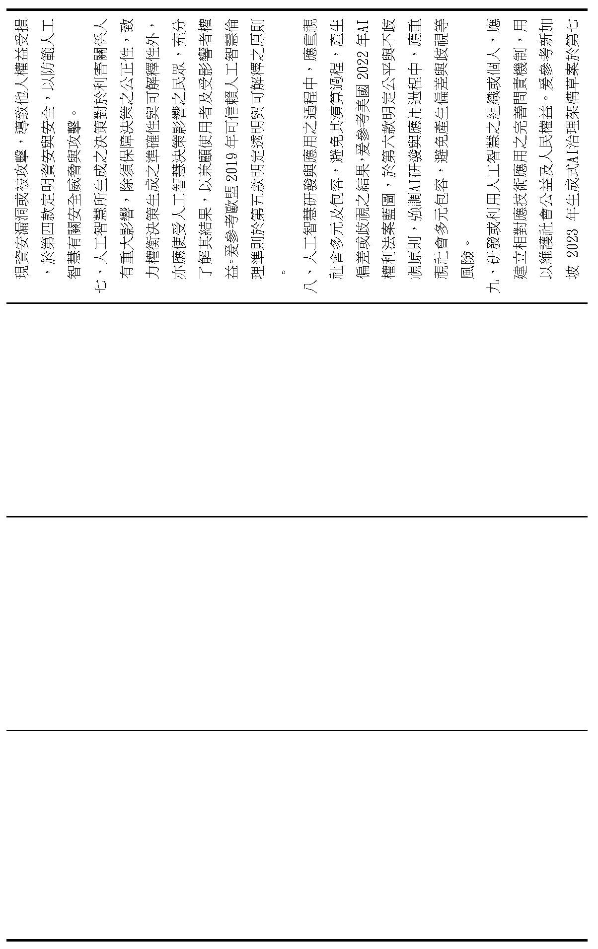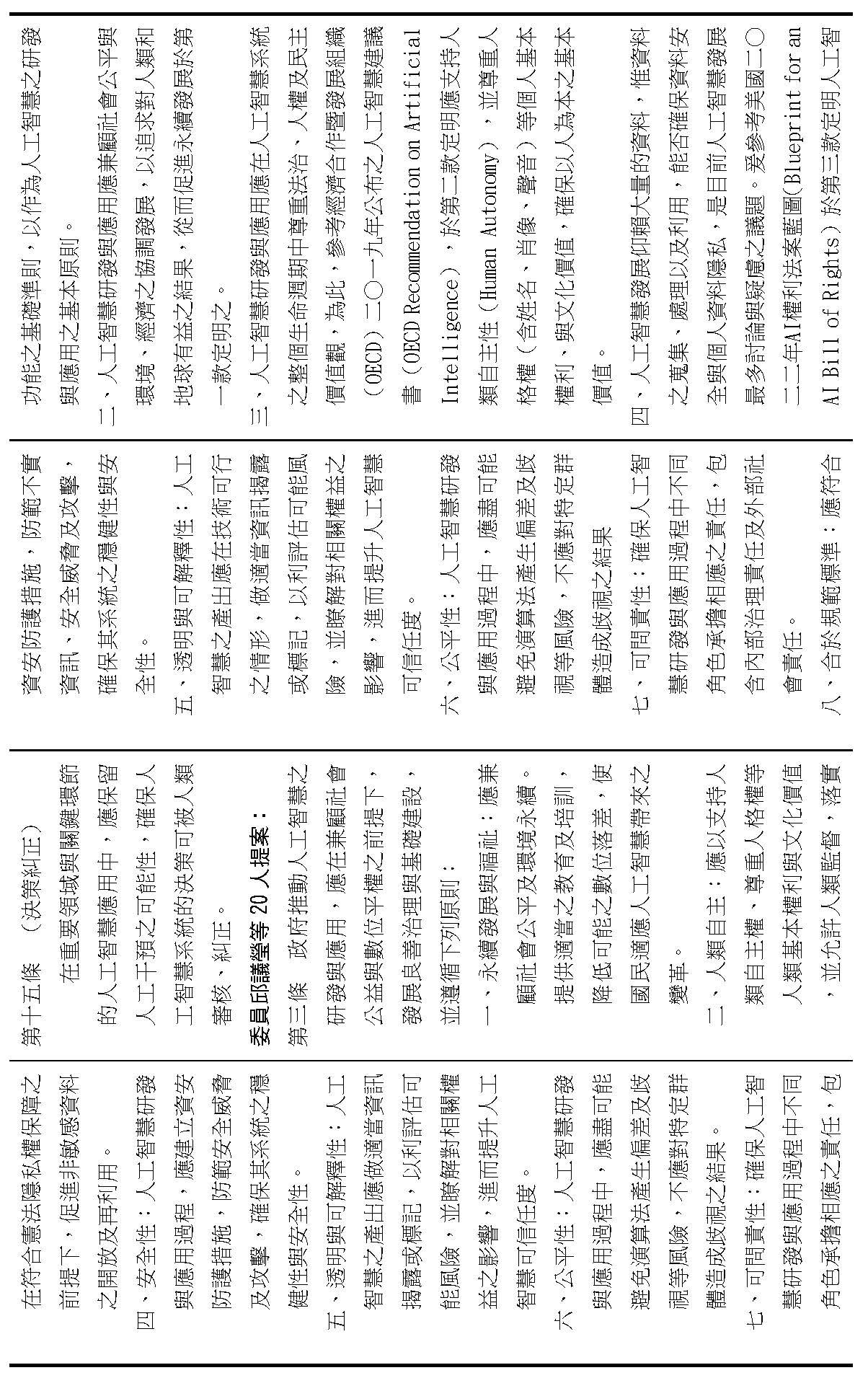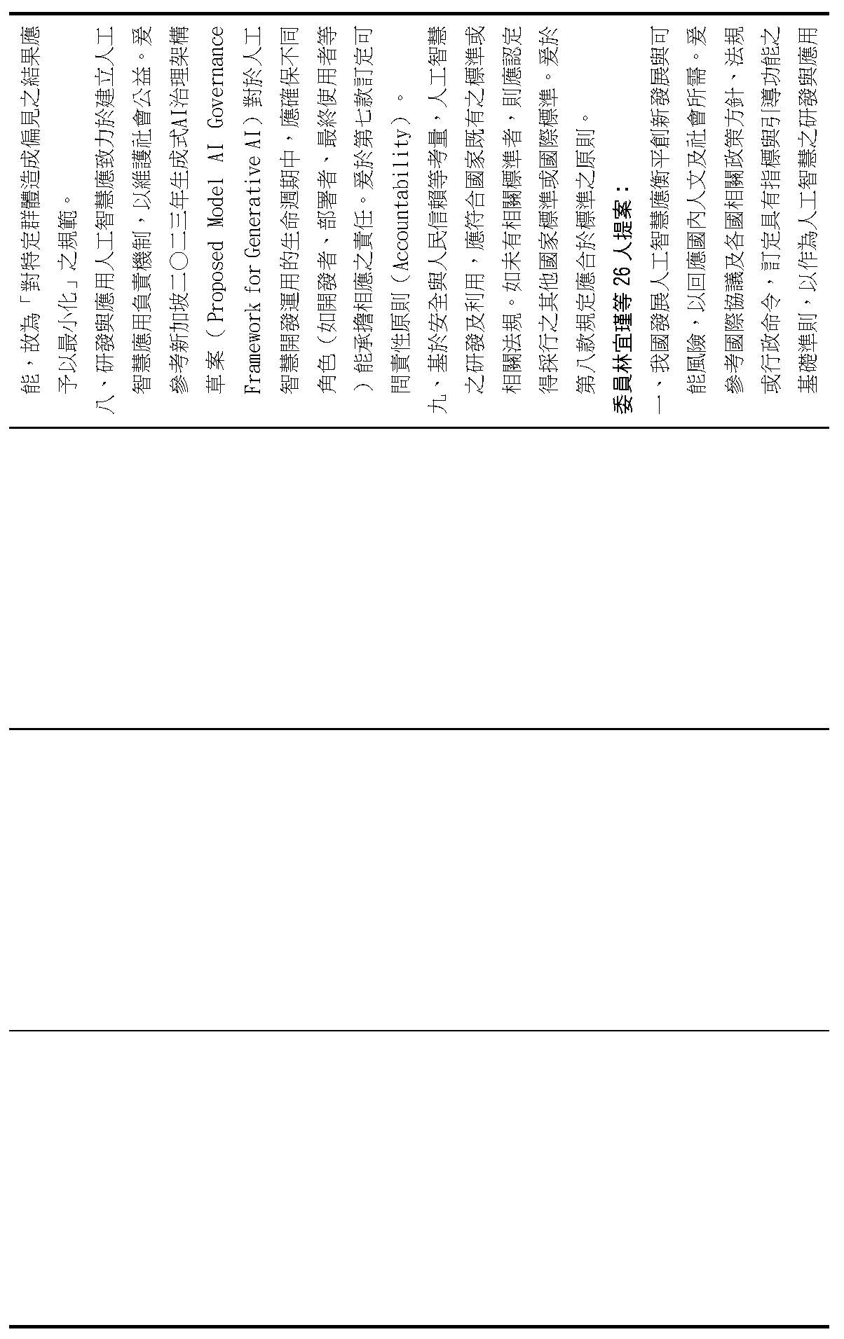 至於工作的內容,我覺得因為剛剛講了AI的變化很快,我們要做的工作不止這8項,所以我覺得這邊應該不用去條列,而是一個基本原則的宣示比較重要。