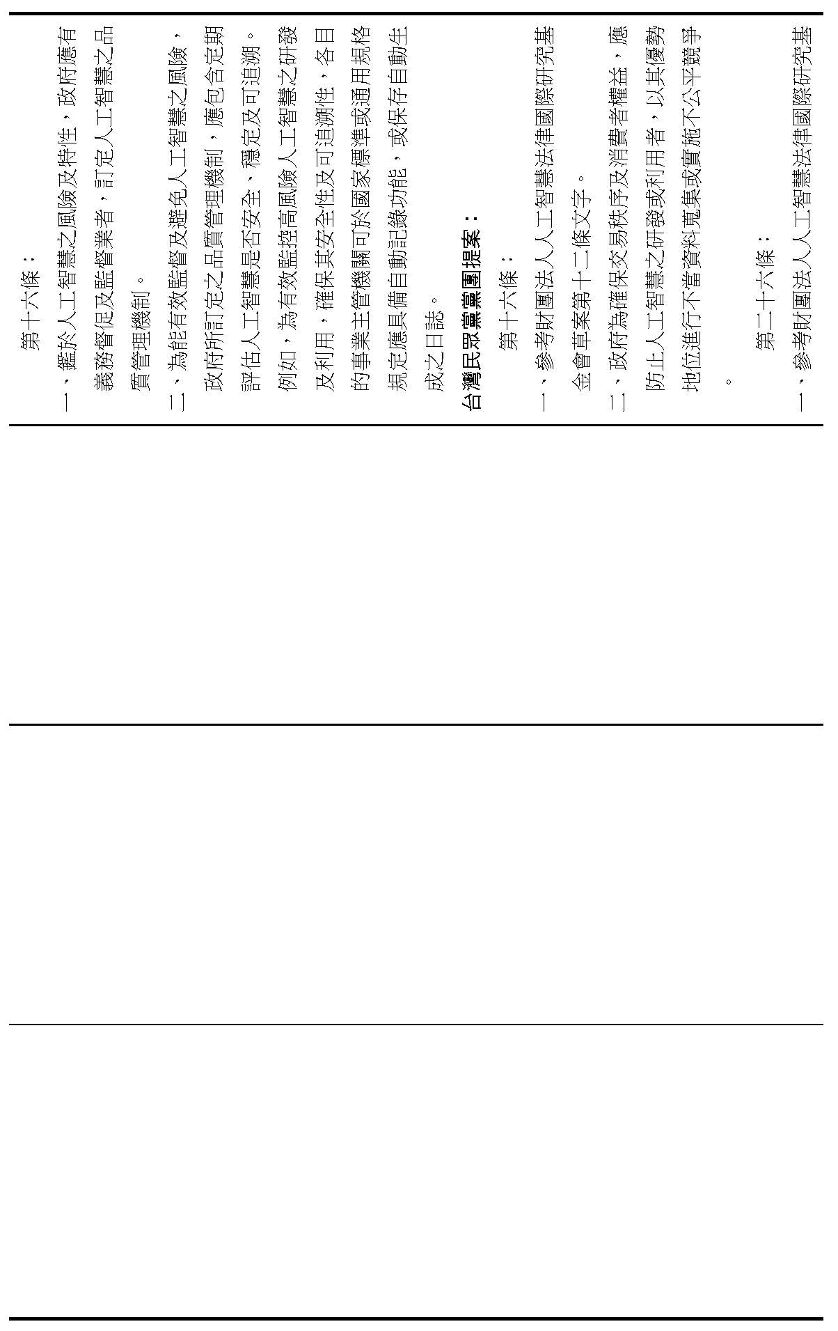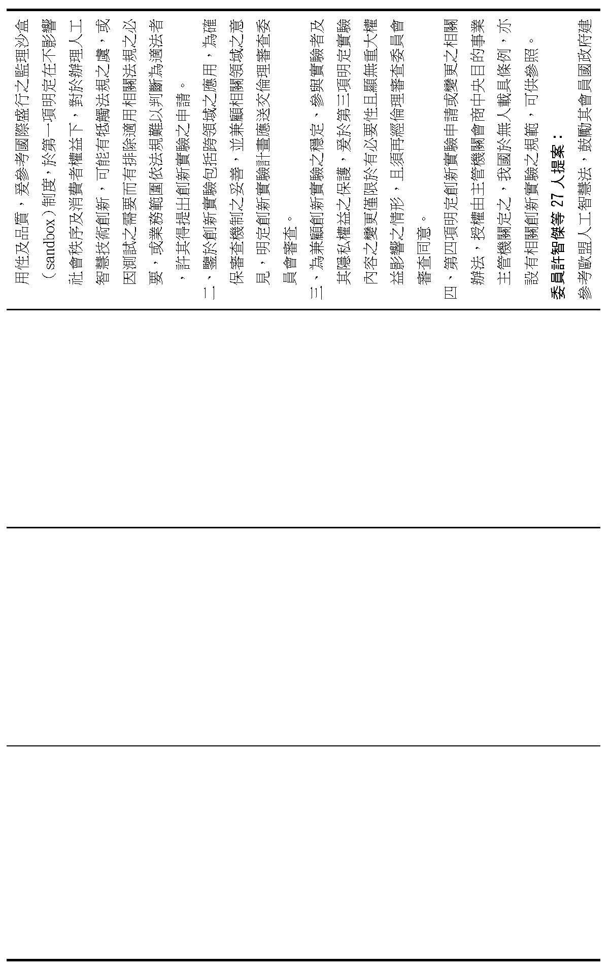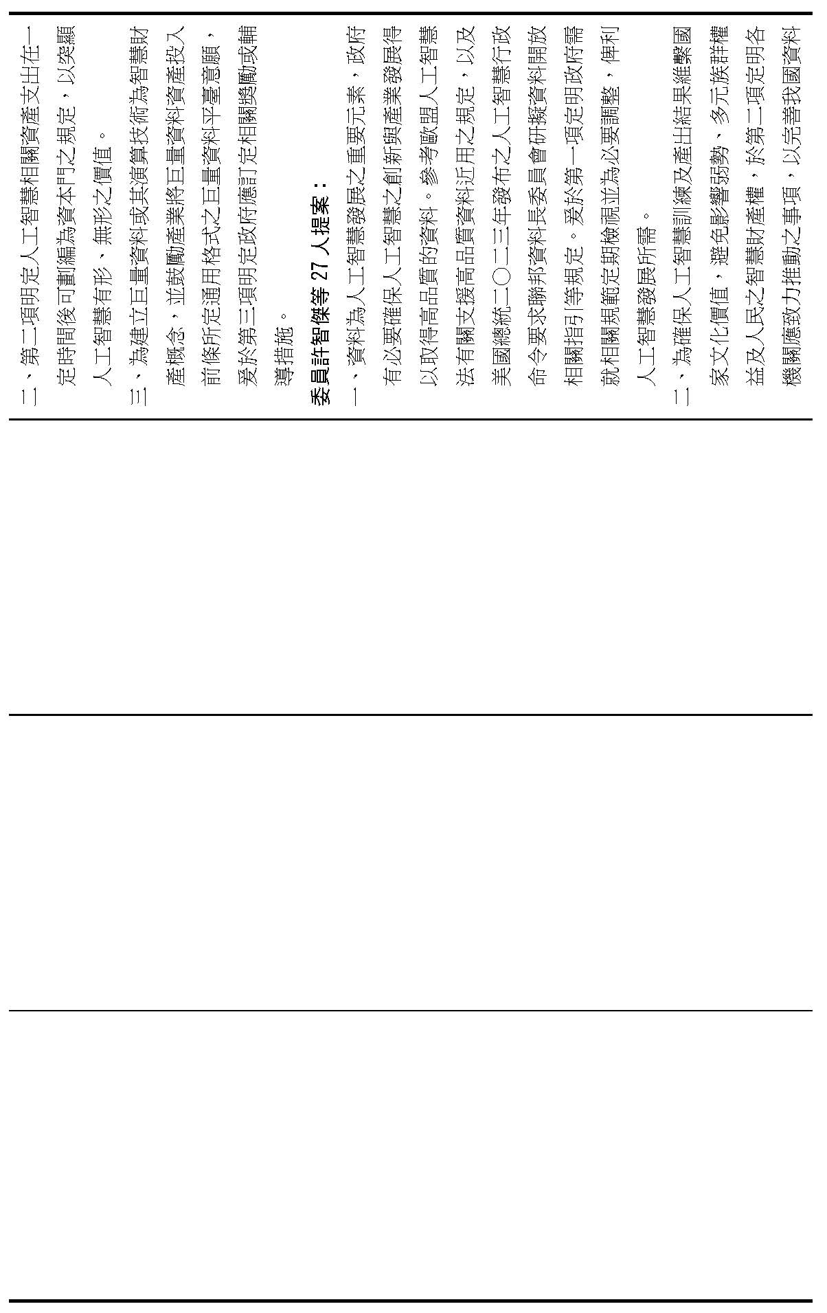 3.再者,國際上已經有多起著作權人對AI工具開發商提起的侵權訴訟,為避免人工智慧之發展侵害他人智慧財產權,本席於條文中明定人工智慧發展及應用,應遵守智慧財產權,不能為了發展AI而侵權。