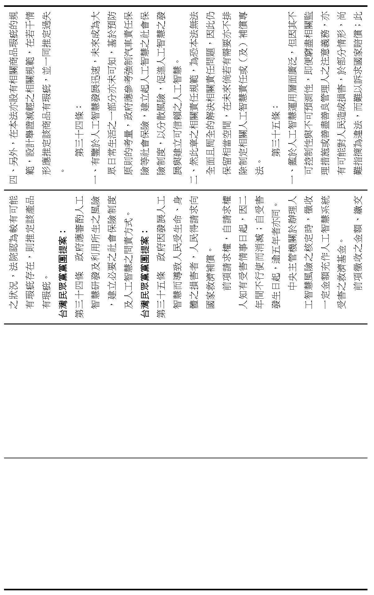 劉委員書彬:民眾黨在這部分認為發展AI絕對是要有預算,但是預算的編列當然還是要符合國家財政,所以我們的第五條對應到目前在討論的葛委員版第十一條,就是政府應該在國家財政能力範圍內寬列預算,採取必要措施,確保經費能夠符合人工智慧發展所需。我們自己版本的第七條是有關國發基金的運用,也可以運用到促進AI發展,目前應該是在國科會當中有一些科研經費,目前應該是最大的部分,當然也是針對AI的發展。所以這部分我想應該都會有預算,只是我們透過法定預算的方式把它呈現到條文當中,謝謝。