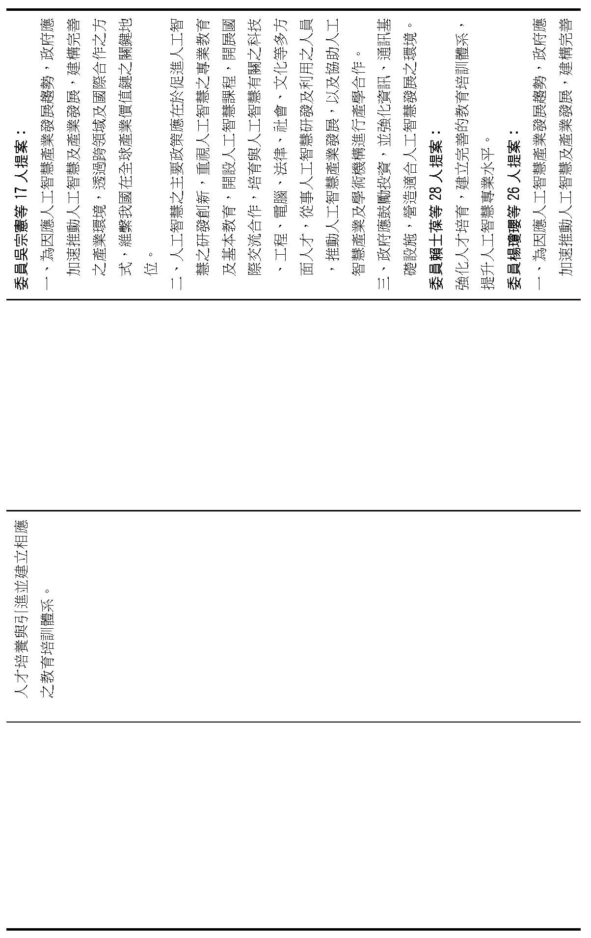 劉委員書彬:我剛才發覺到,其實民進黨的許智傑委員跟林宜瑾委員的部分基本上是一樣的,而且跟葛如鈞委員的內容其實很相近,我覺得我們可以在第九條整合,真的是可以達到的,因為看文字,尤其在教育跟素養倫理通通都有包含到了,我覺得可以就文字上面達成一個共識。