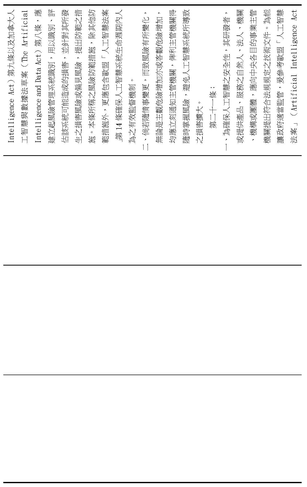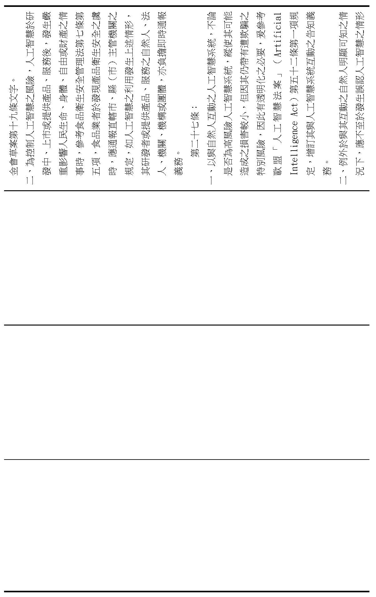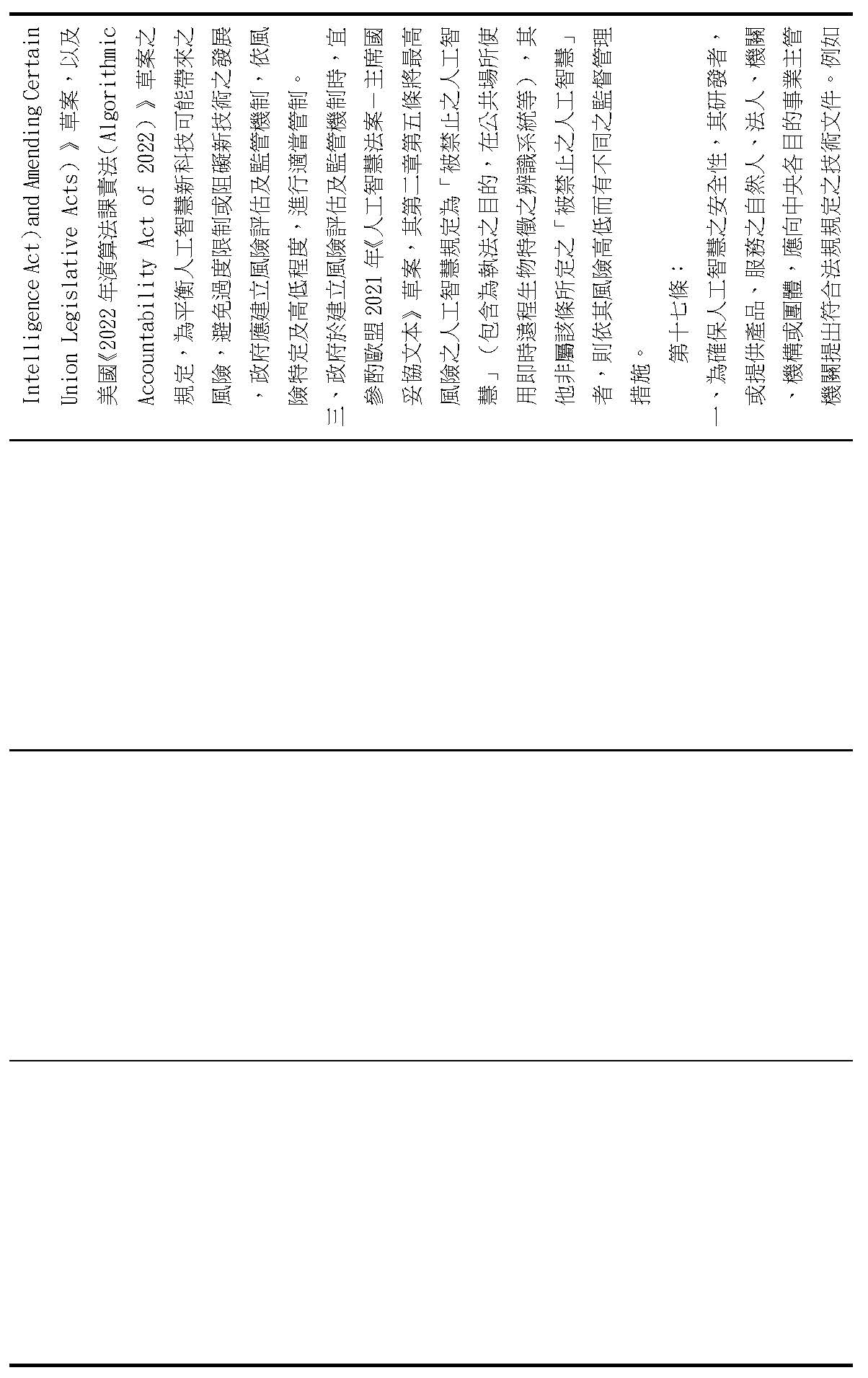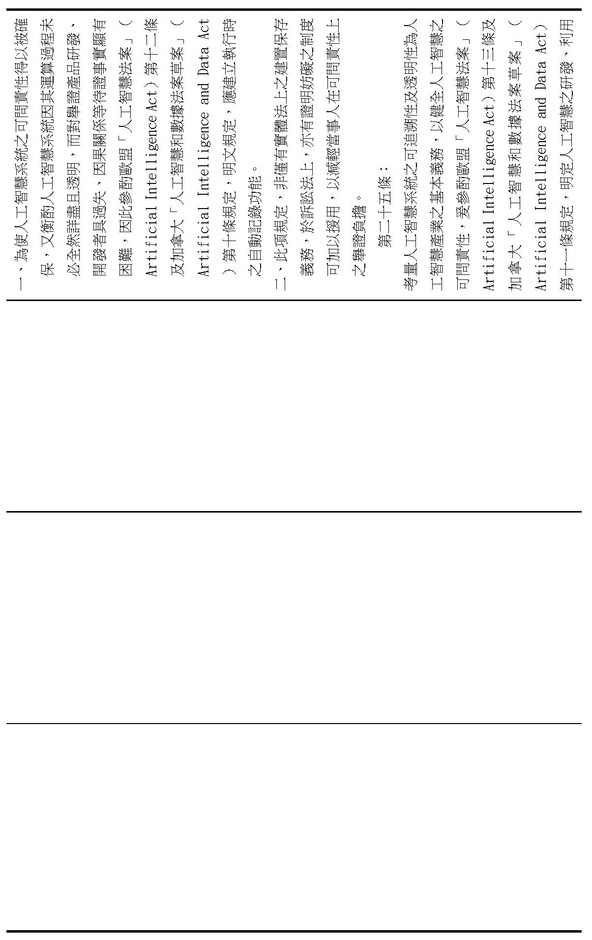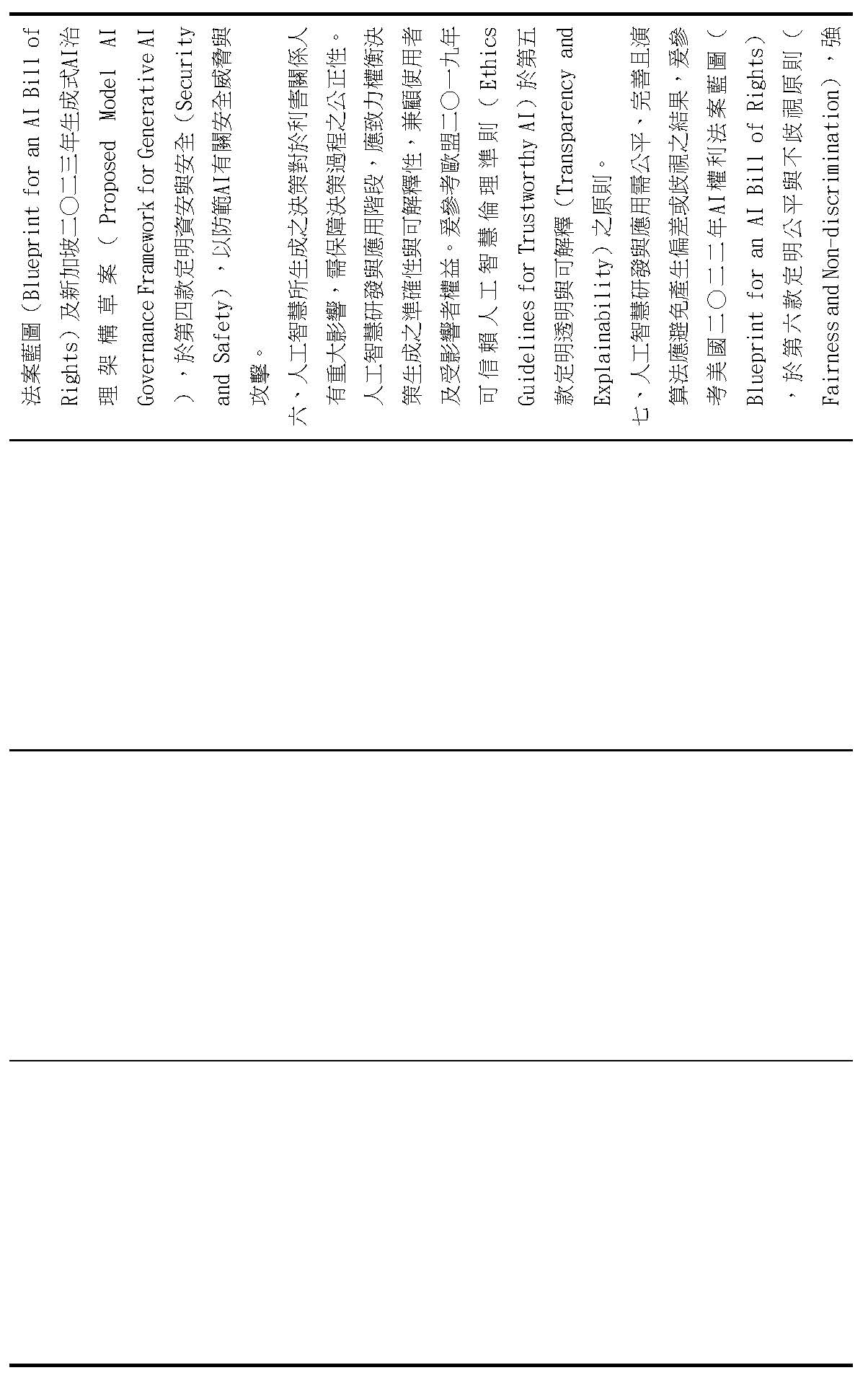 第二個,我想AI這部分要不要有基本法,比較大的爭議就在於,目前我們看到有兩個完全不同的方向,歐盟的方向還是美國的方向?美國的方向是重產業發展,希望監管密度低;歐盟的方向是希望監管密度高。如果以歐盟為例的話……美國還曾經規定,他在上次的預算審查,就是各州不得立法,因為他擔心規範不一引起產業的困境;歐盟當時是要2025年、2026年開始實行,因為現在很多產業發現發展不一,可能在競爭上會輸給像中國這種威權國家,所以產業希望部分的法規延後施行,而且歐盟也沒有辦法把相關的技術移植,這個東西只是一個母法,因為AI的環境變化太大了。