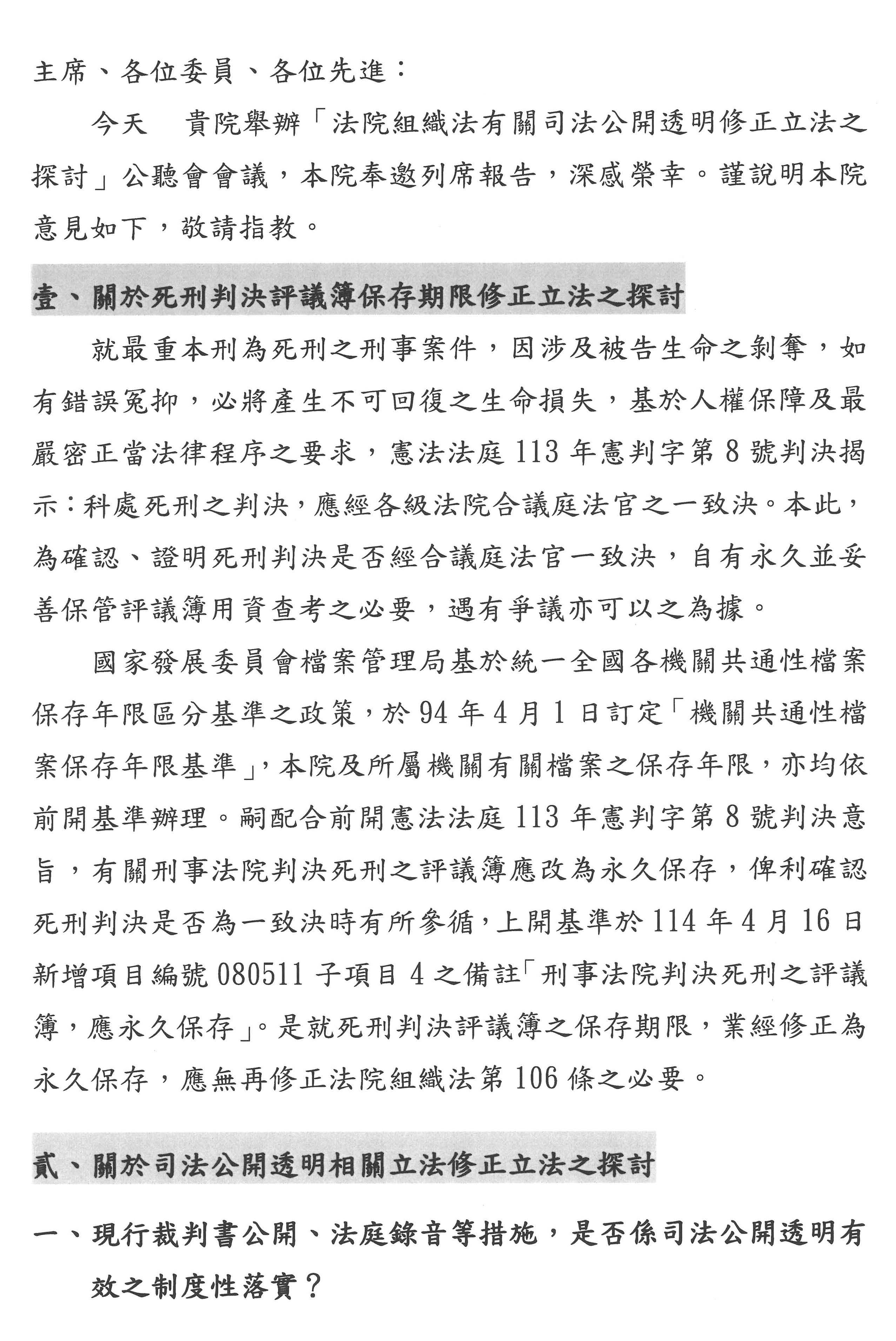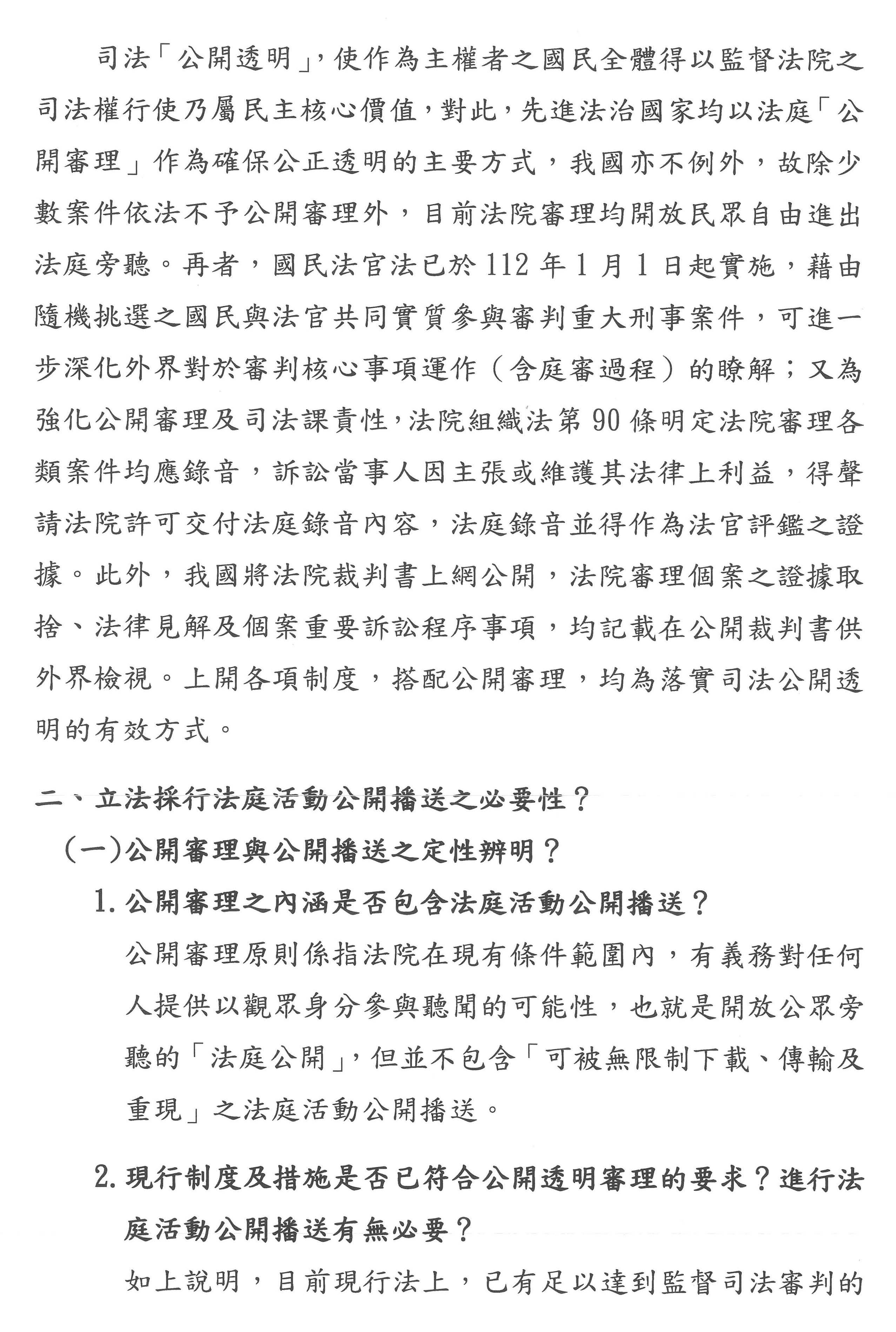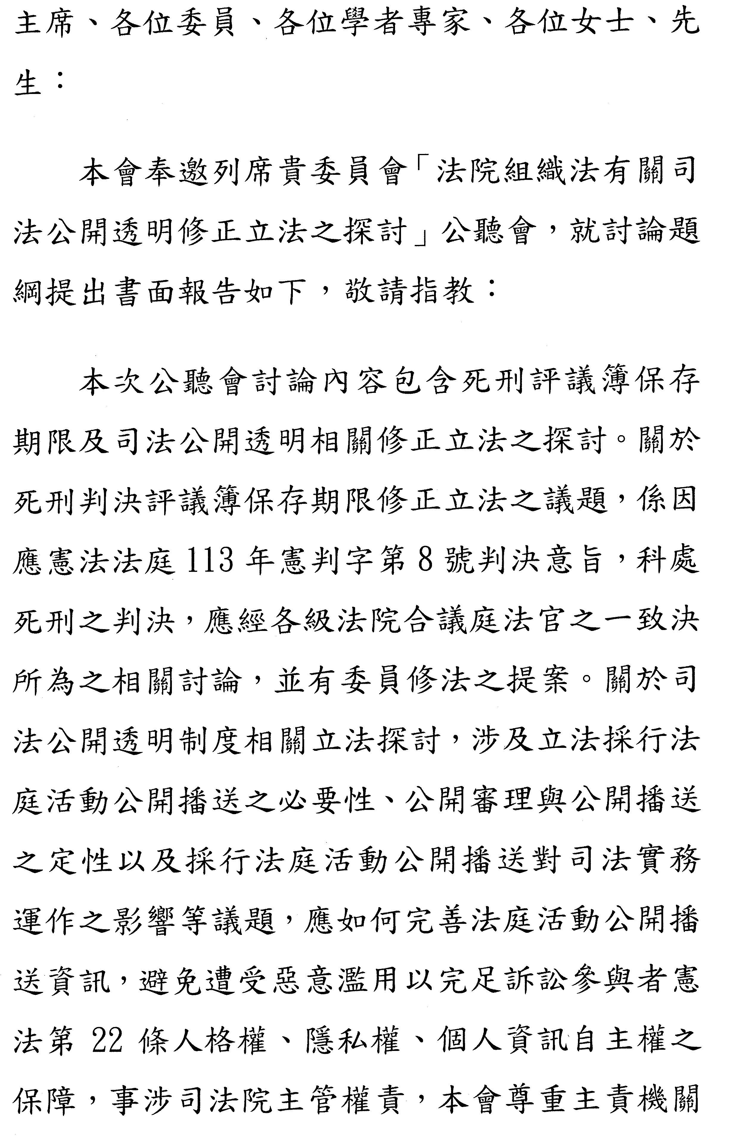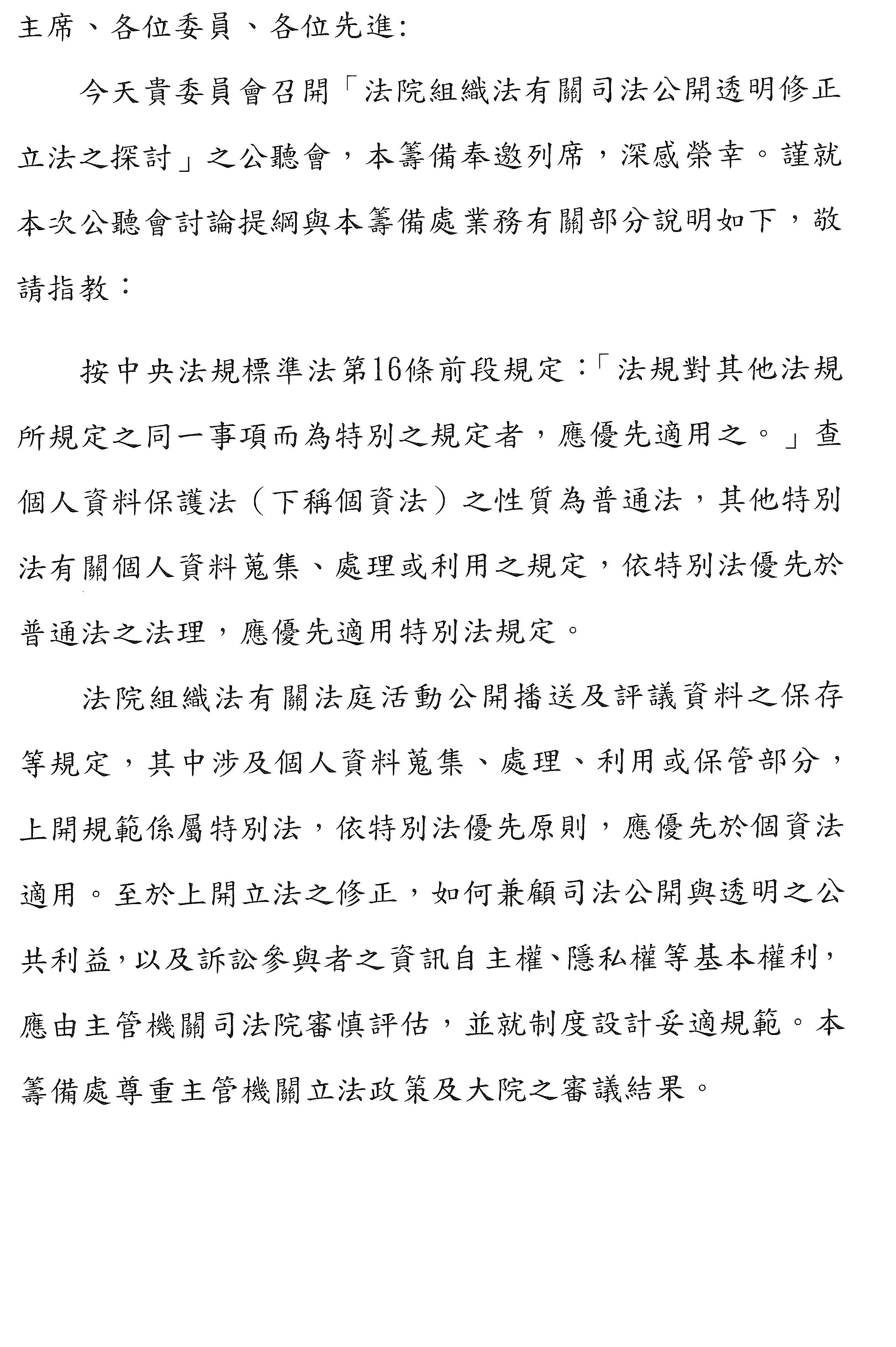 「法院組織法有關司法公開透明修正立法之探討」公聽會書面報告