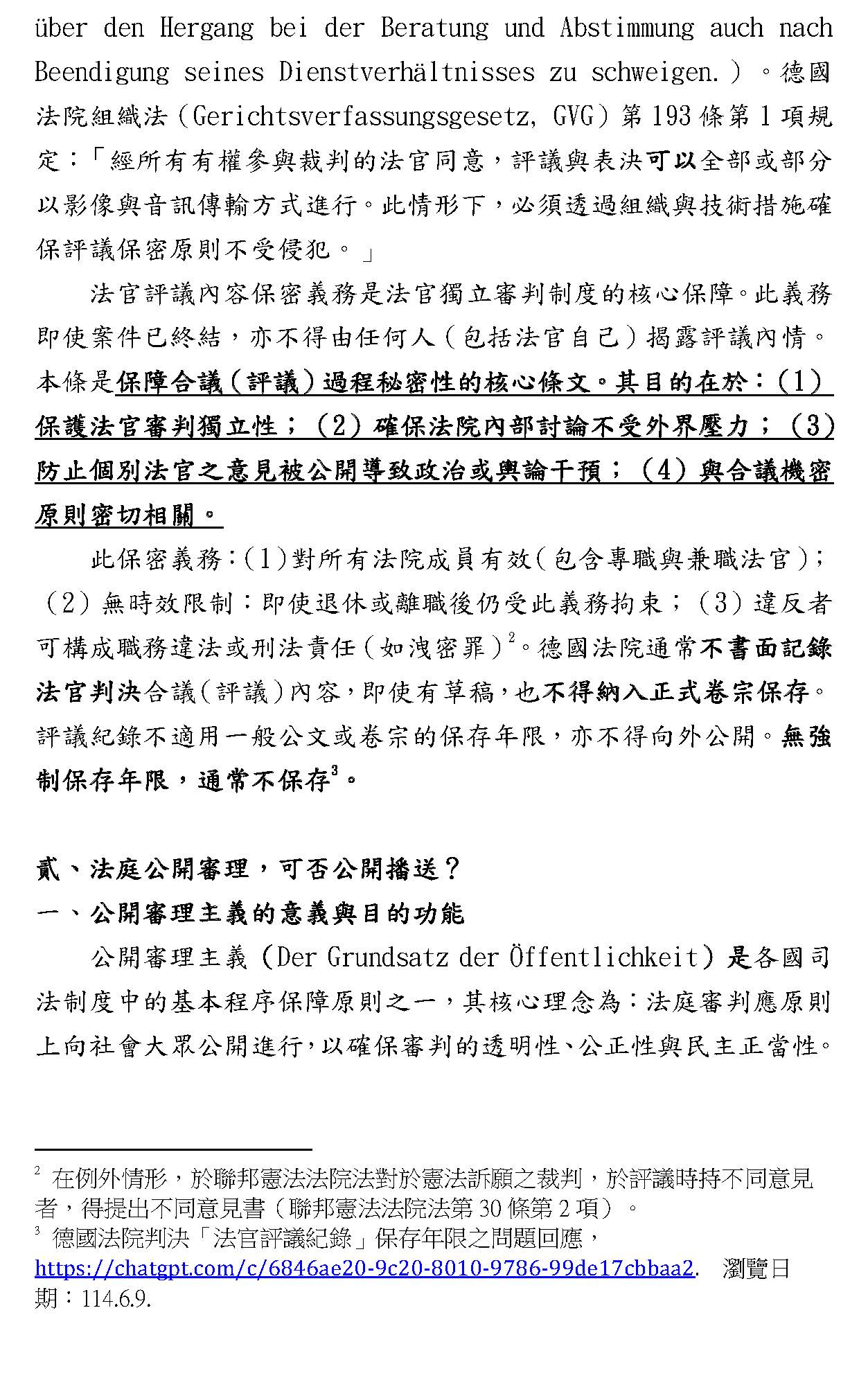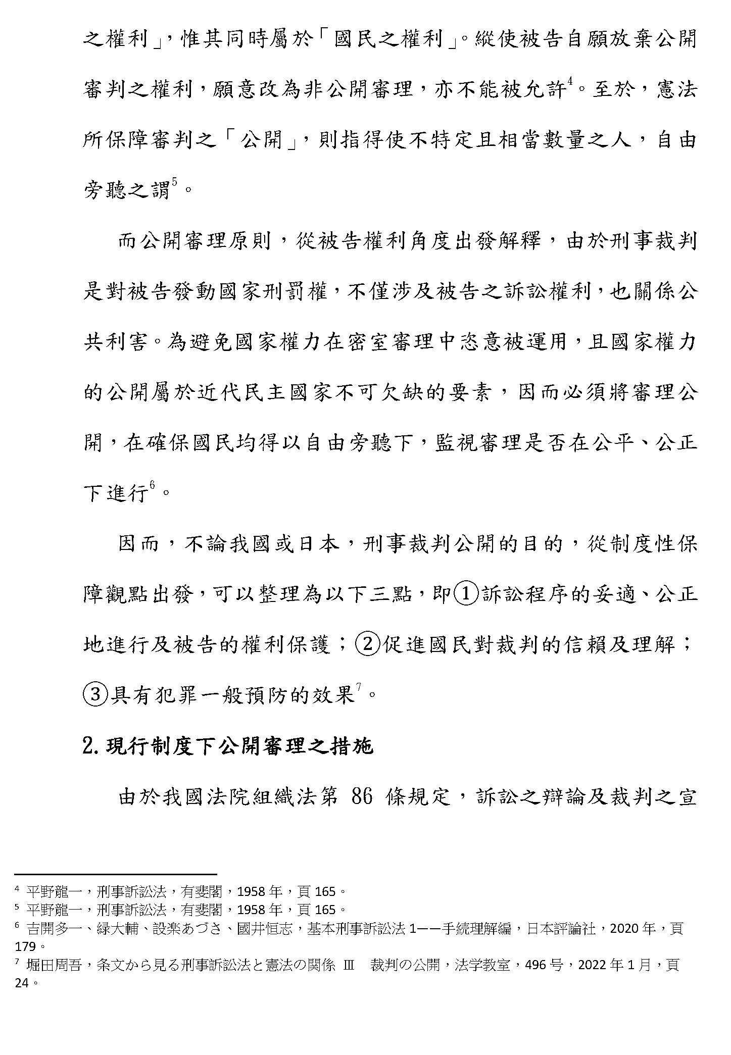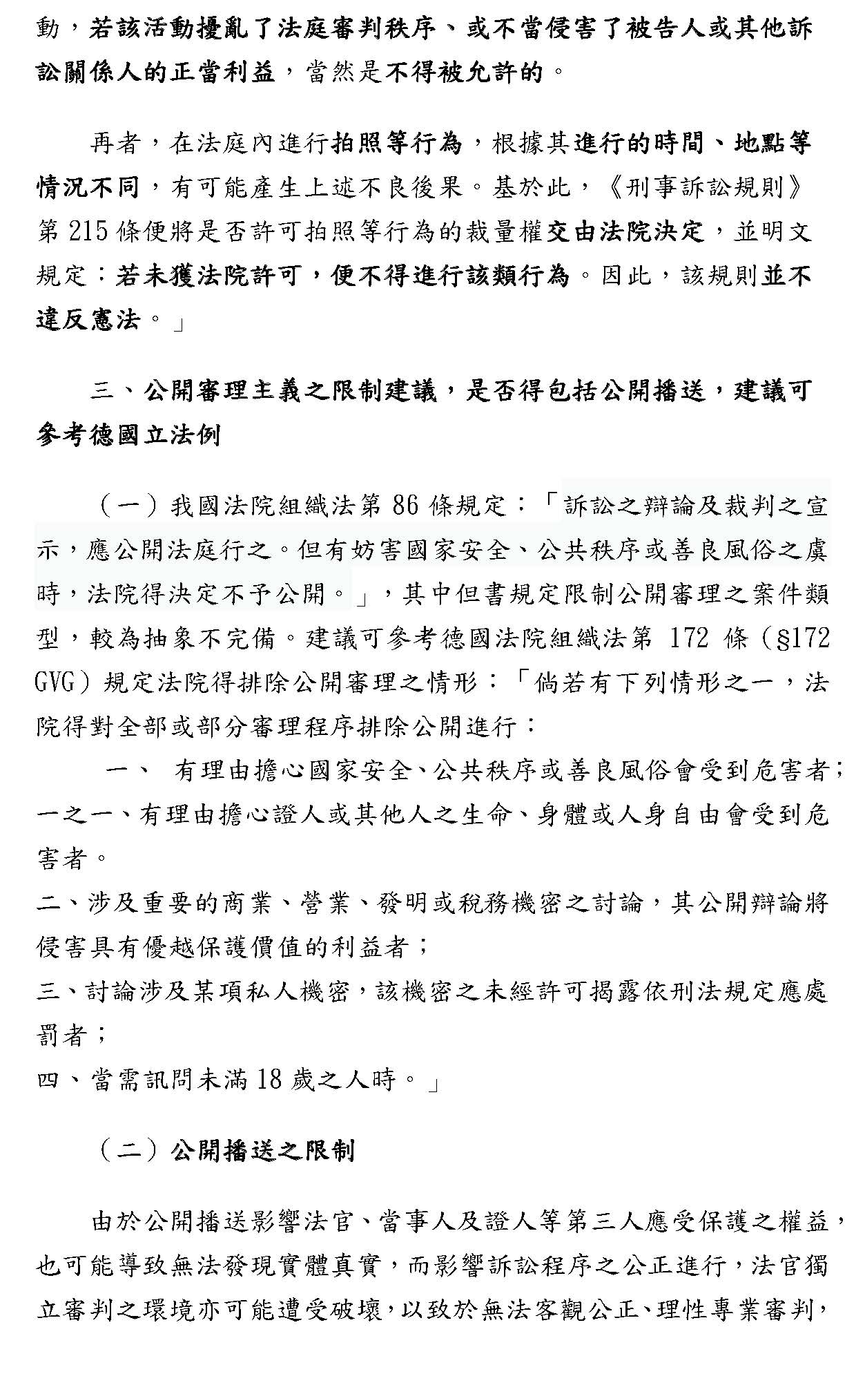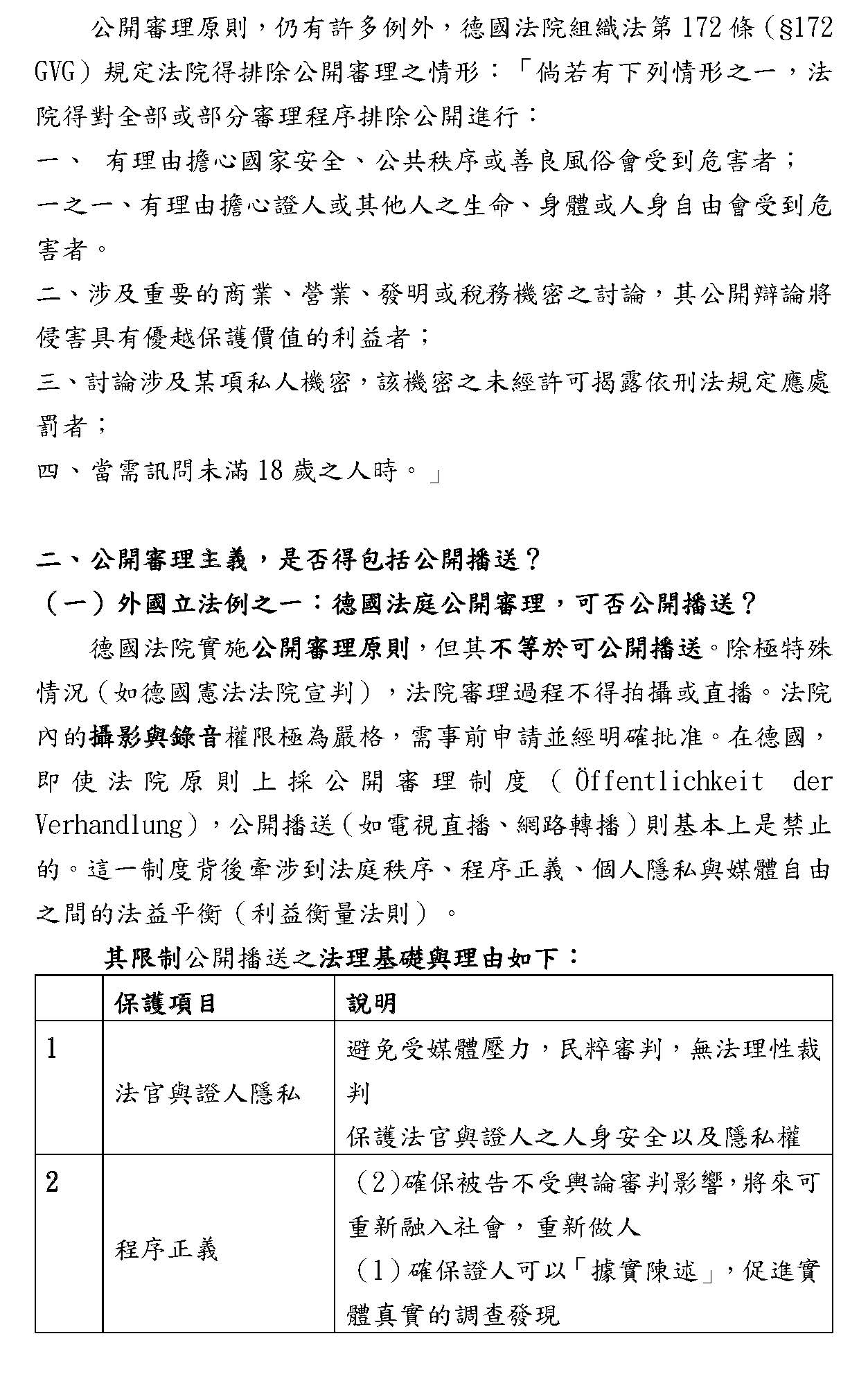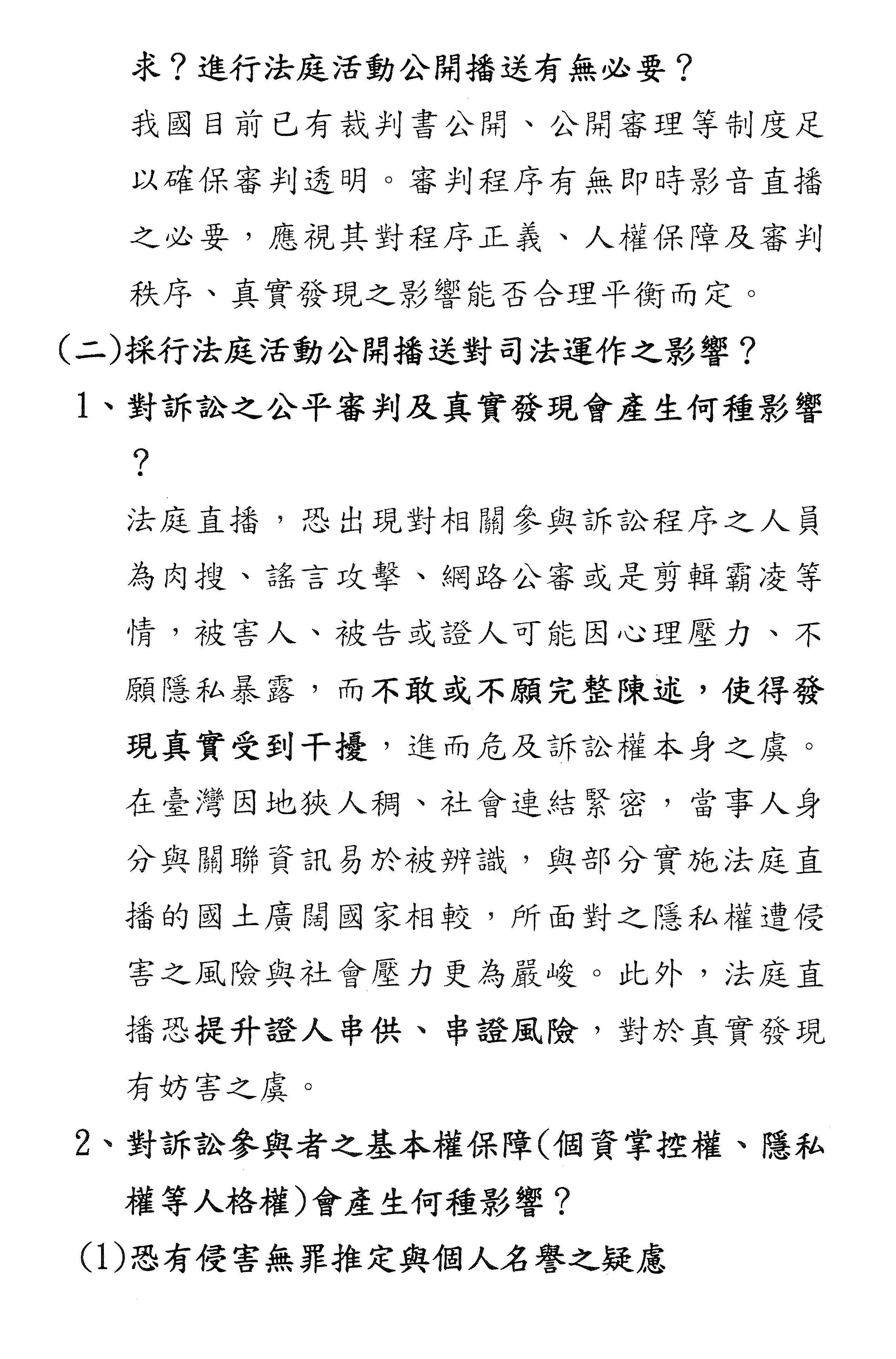 「法院組織法有關司法公開透明修正立法之探討」公聽會書面報告