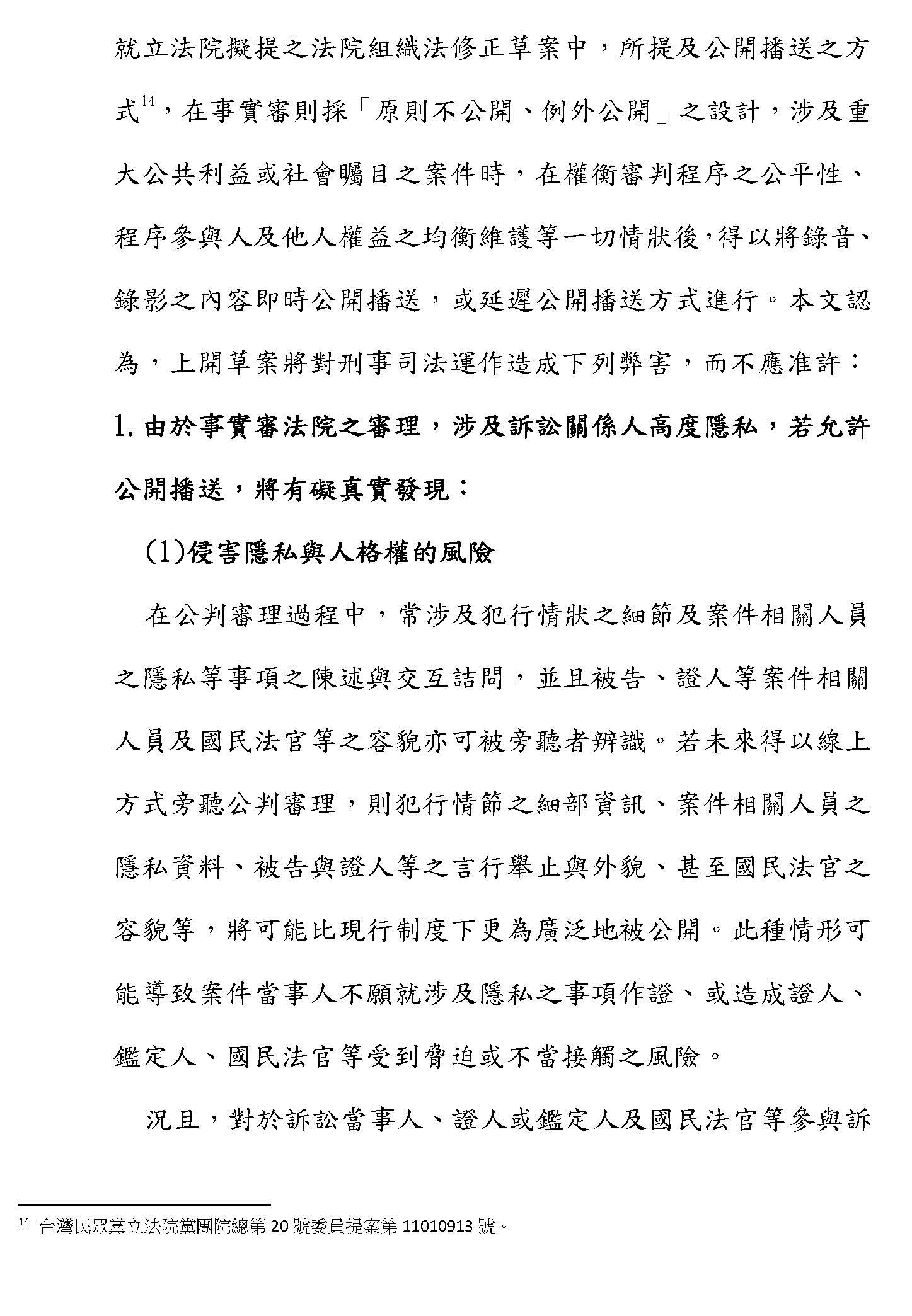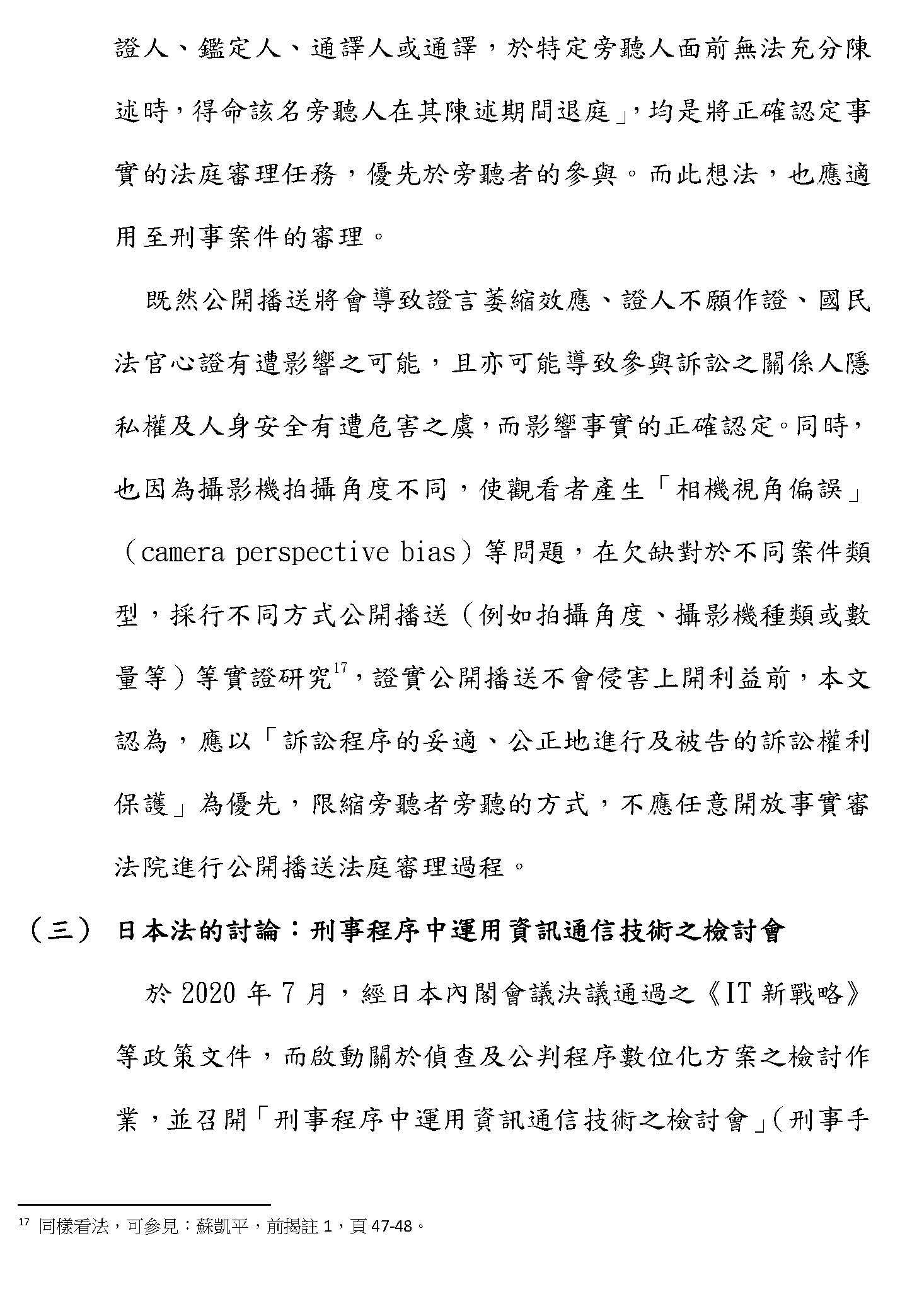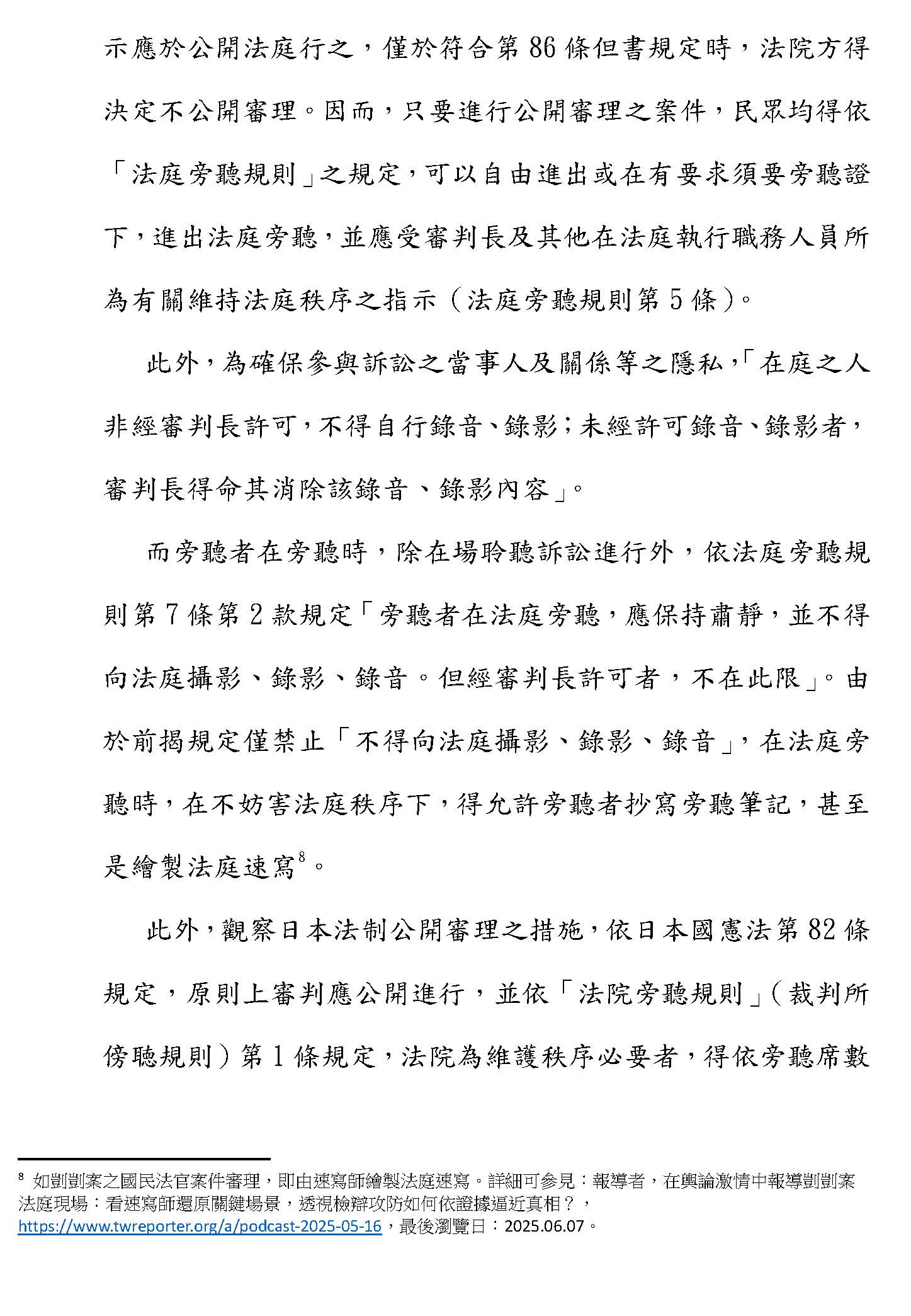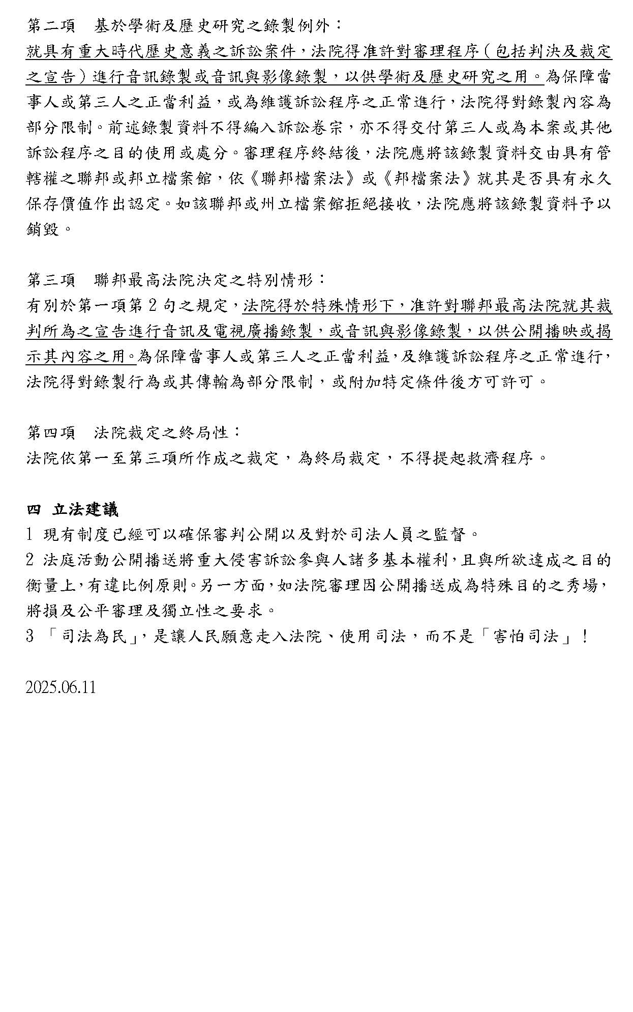 「法院組織法有關司法公開透明修正立法之探討」公聽會書面報告
