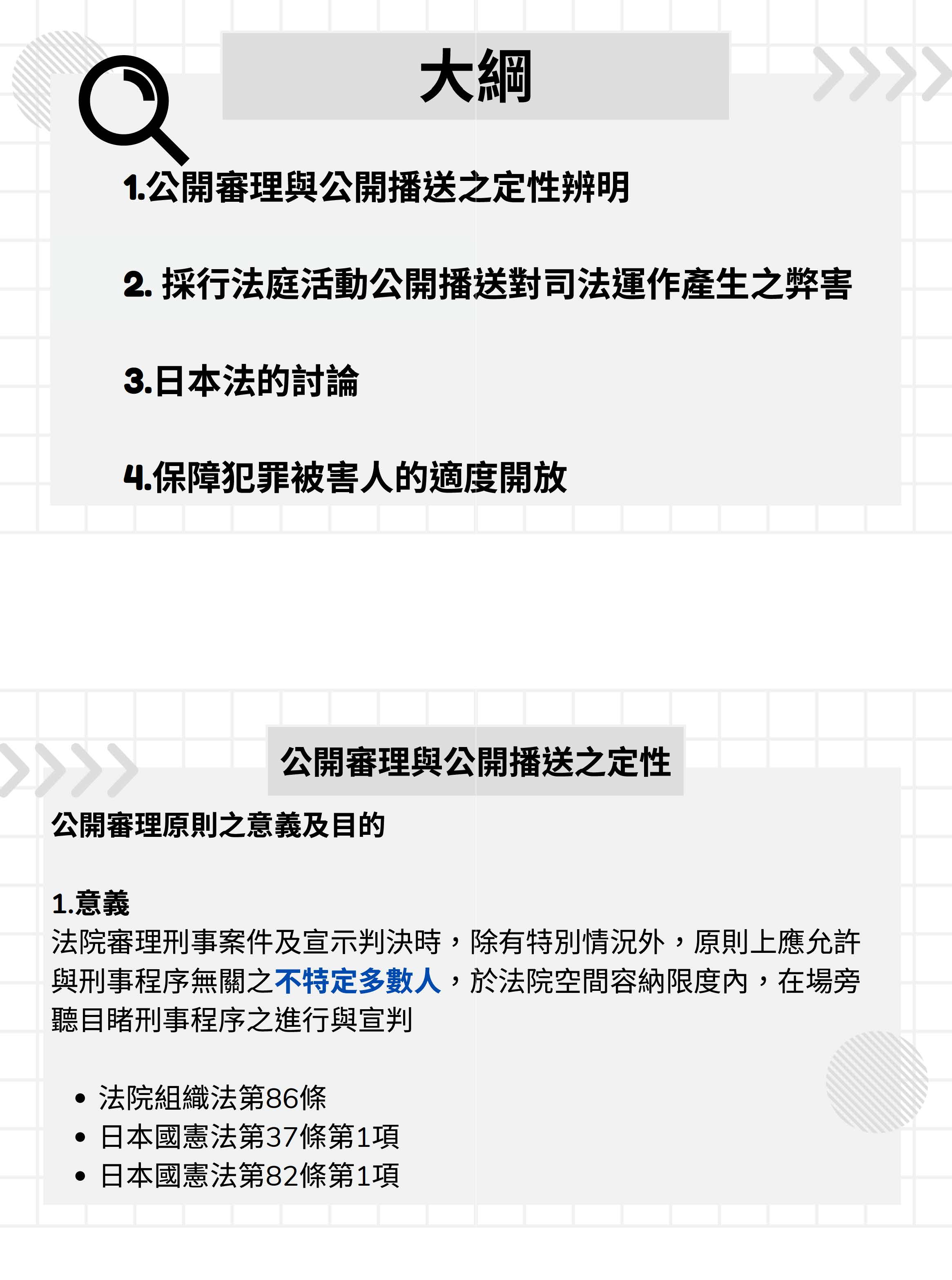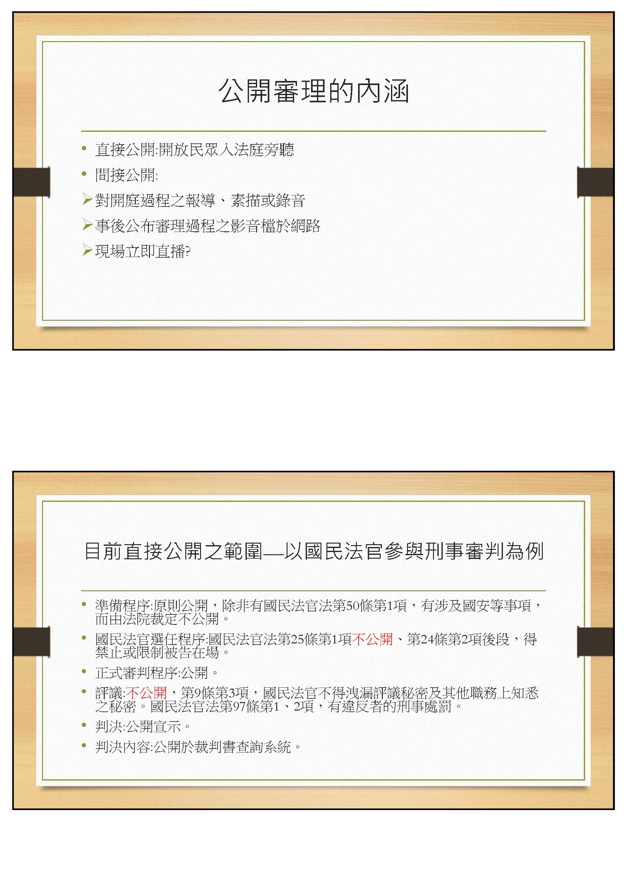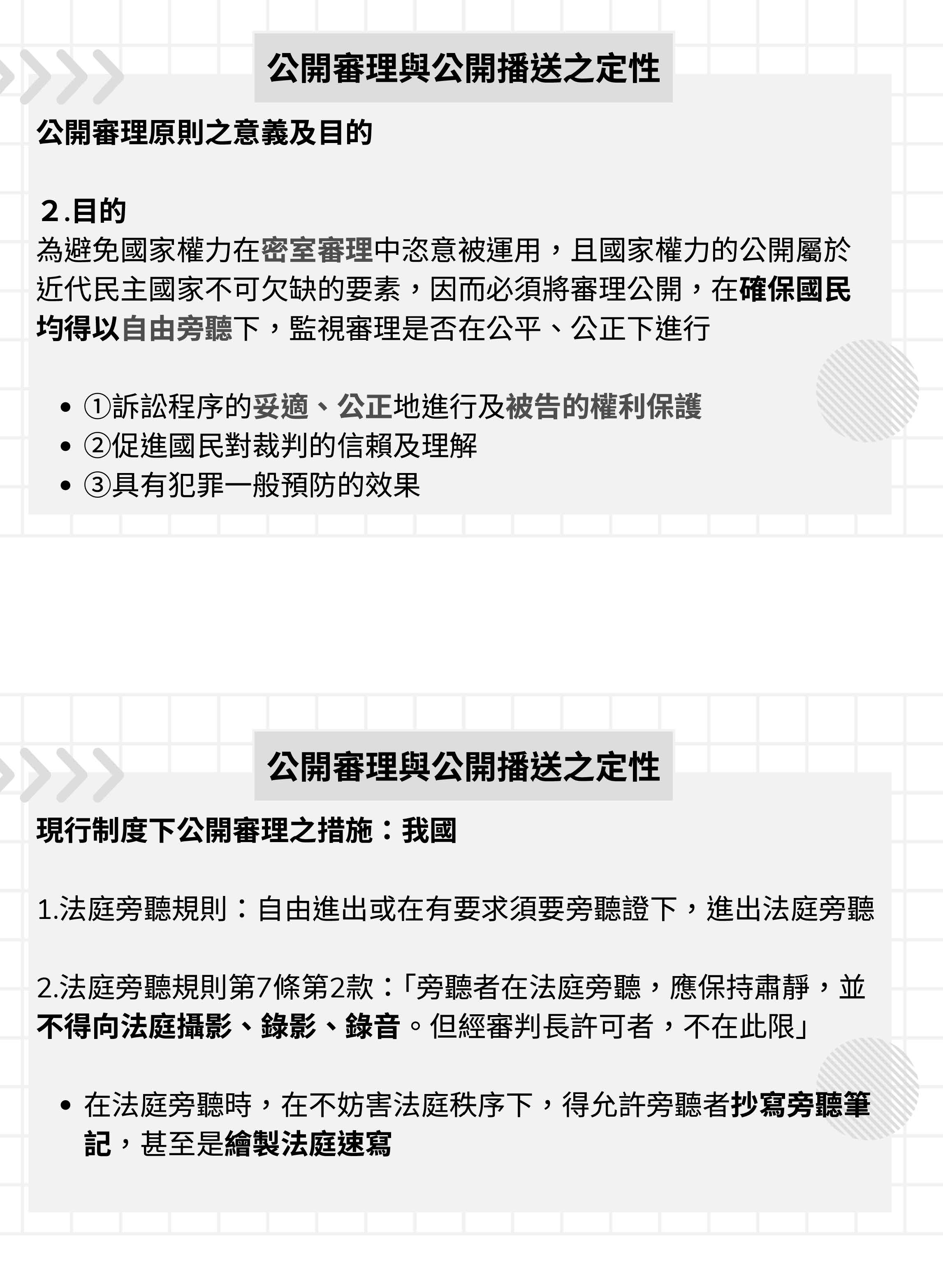 1.公開審理之內涵是否包含法庭活動公開播送?