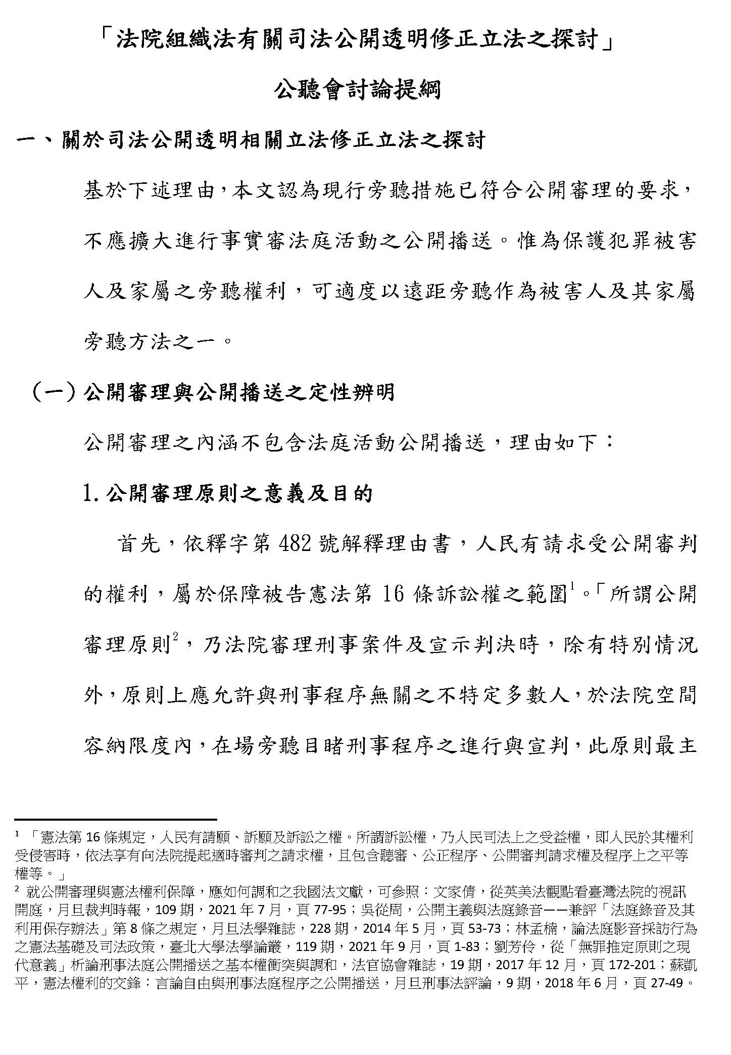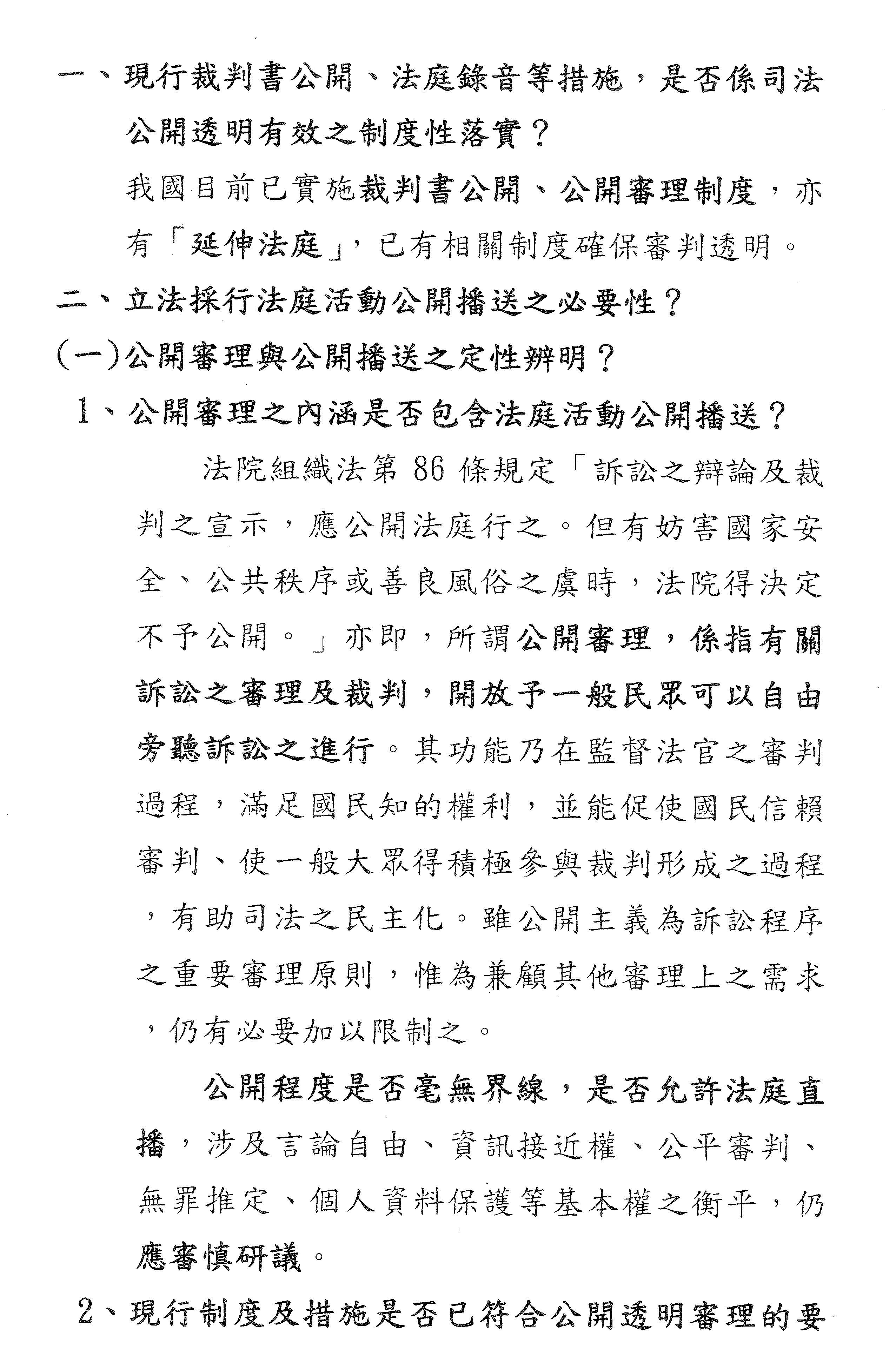 「法院組織法有關司法公開透明修正立法之探討」公聽會討論提綱