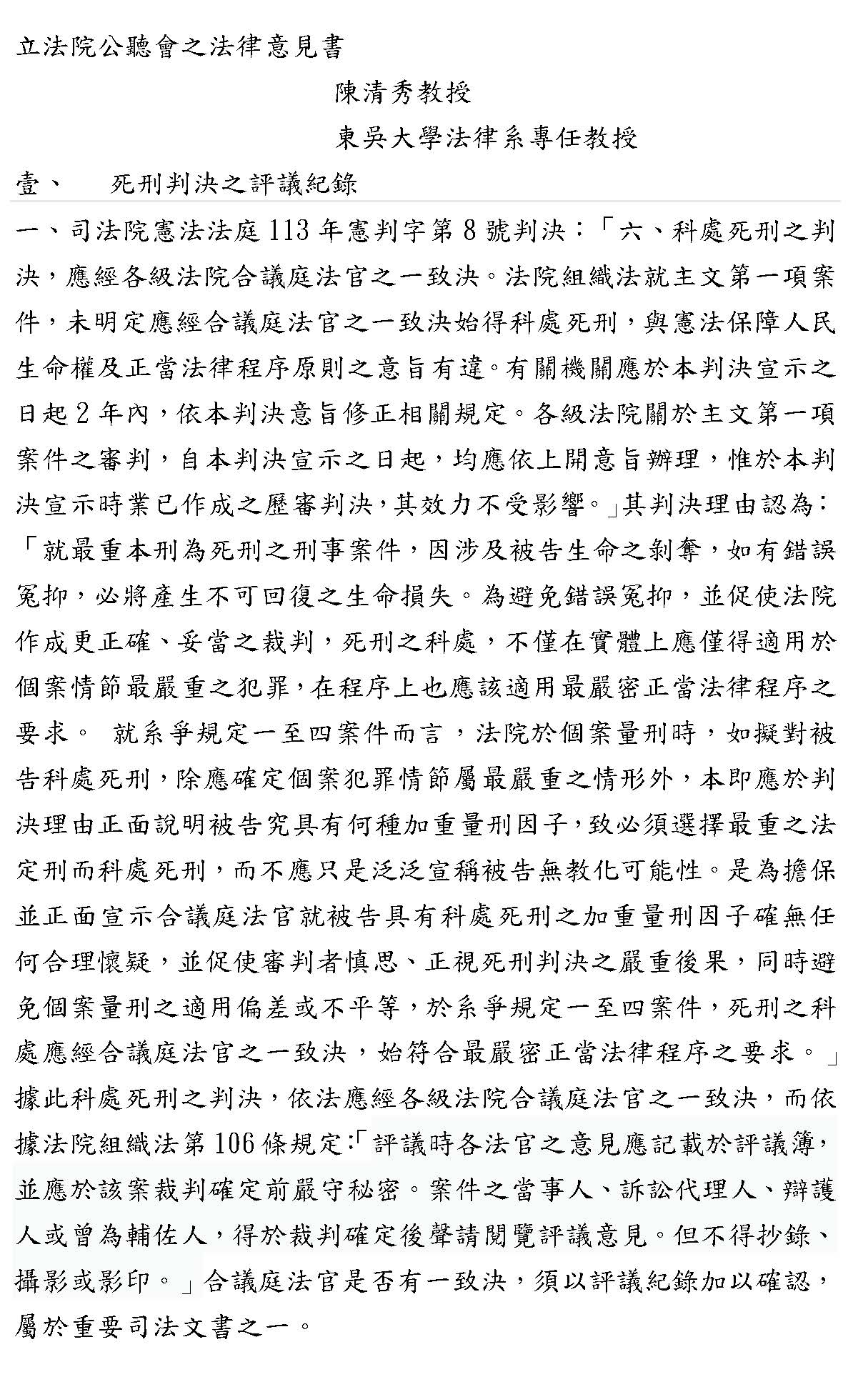 壹、關於死刑判決評議簿保存期限修正立法之探討