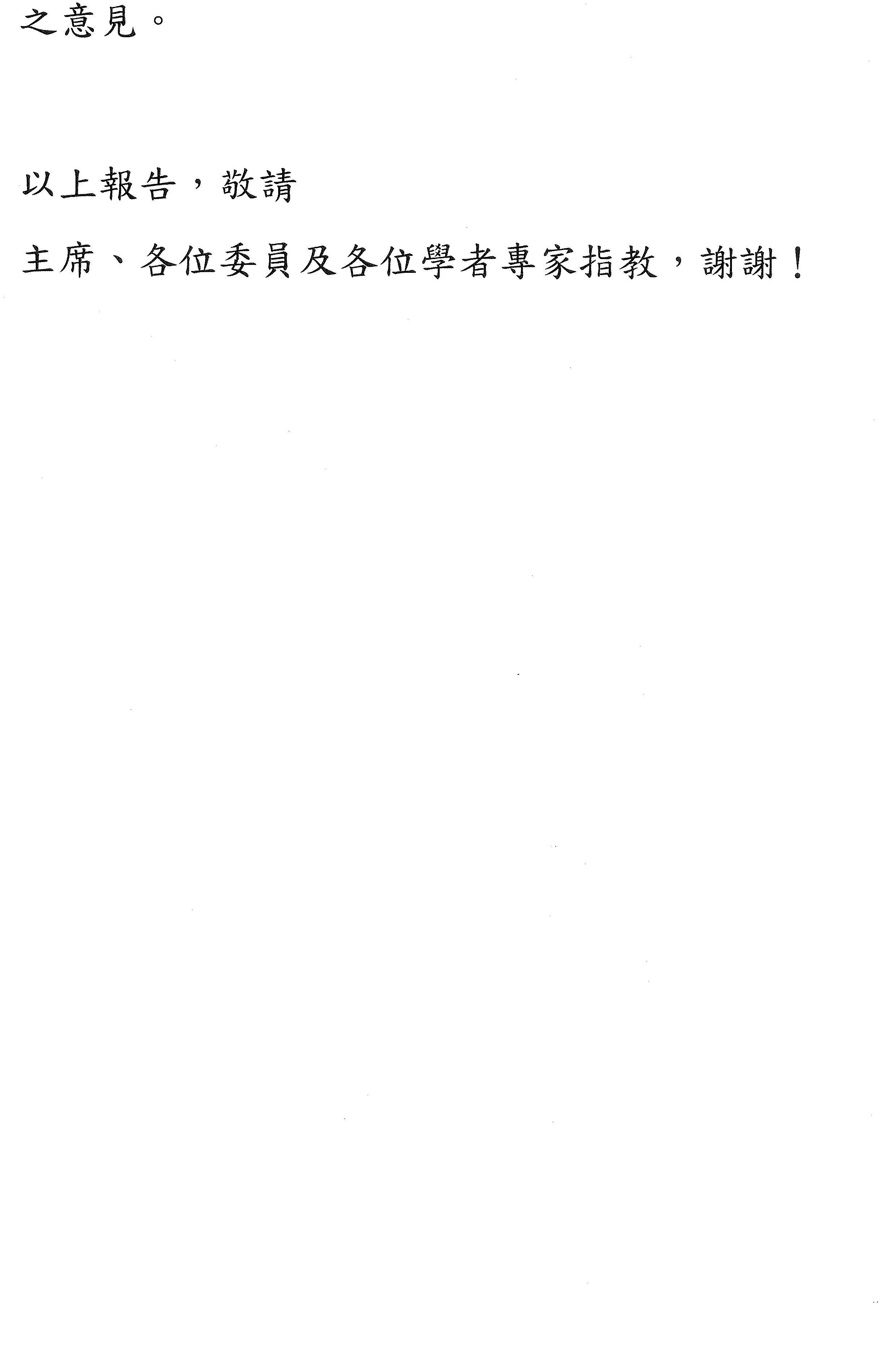 主席:謝謝,我也希望能有機會請更多學者專家來表達意見。本次的公聽會到此結束,謝謝大家,現在散會。