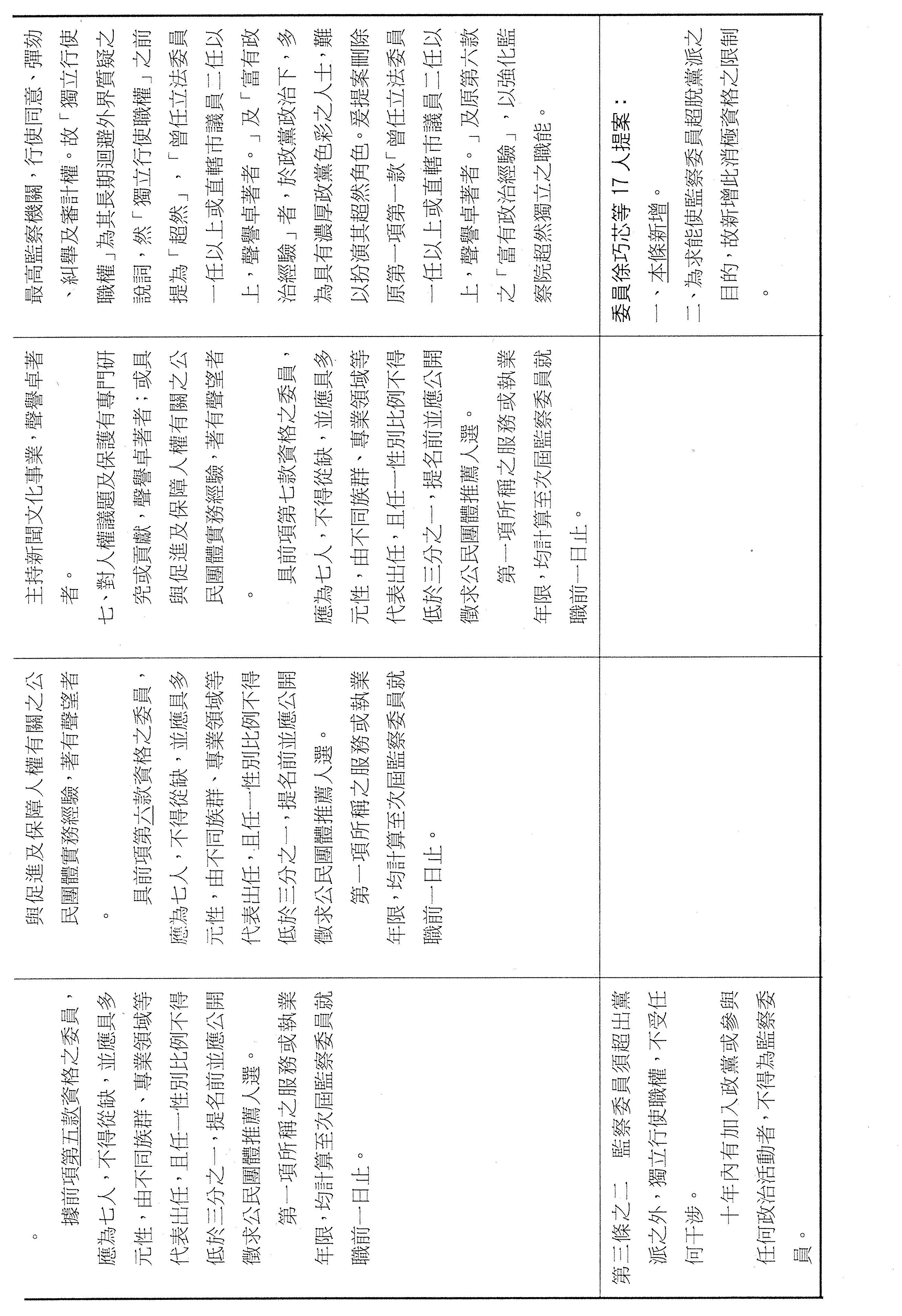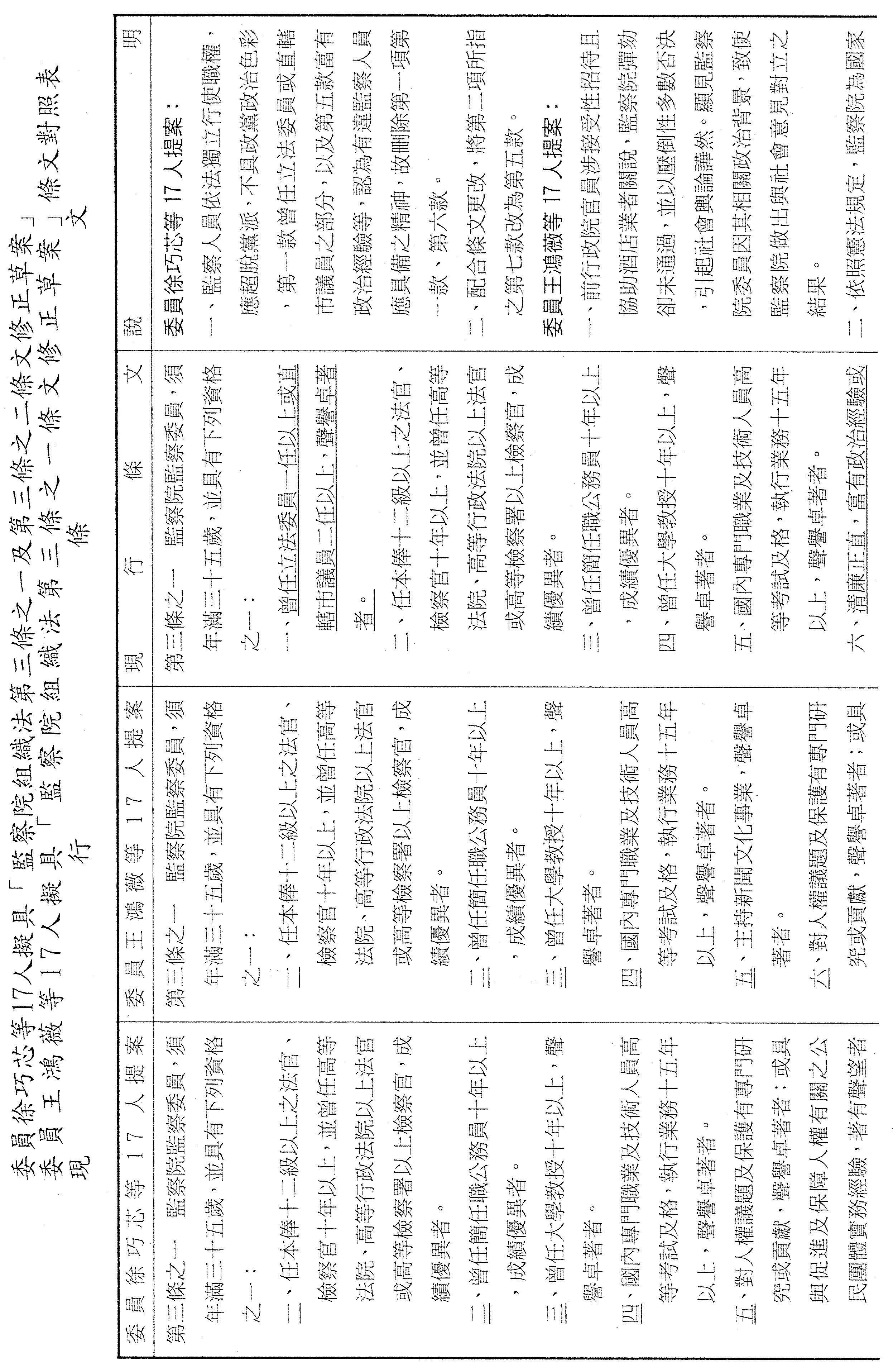 (二)委員王鴻薇等17人擬具「監察院組織法第三條之一條文修正草案」案。
