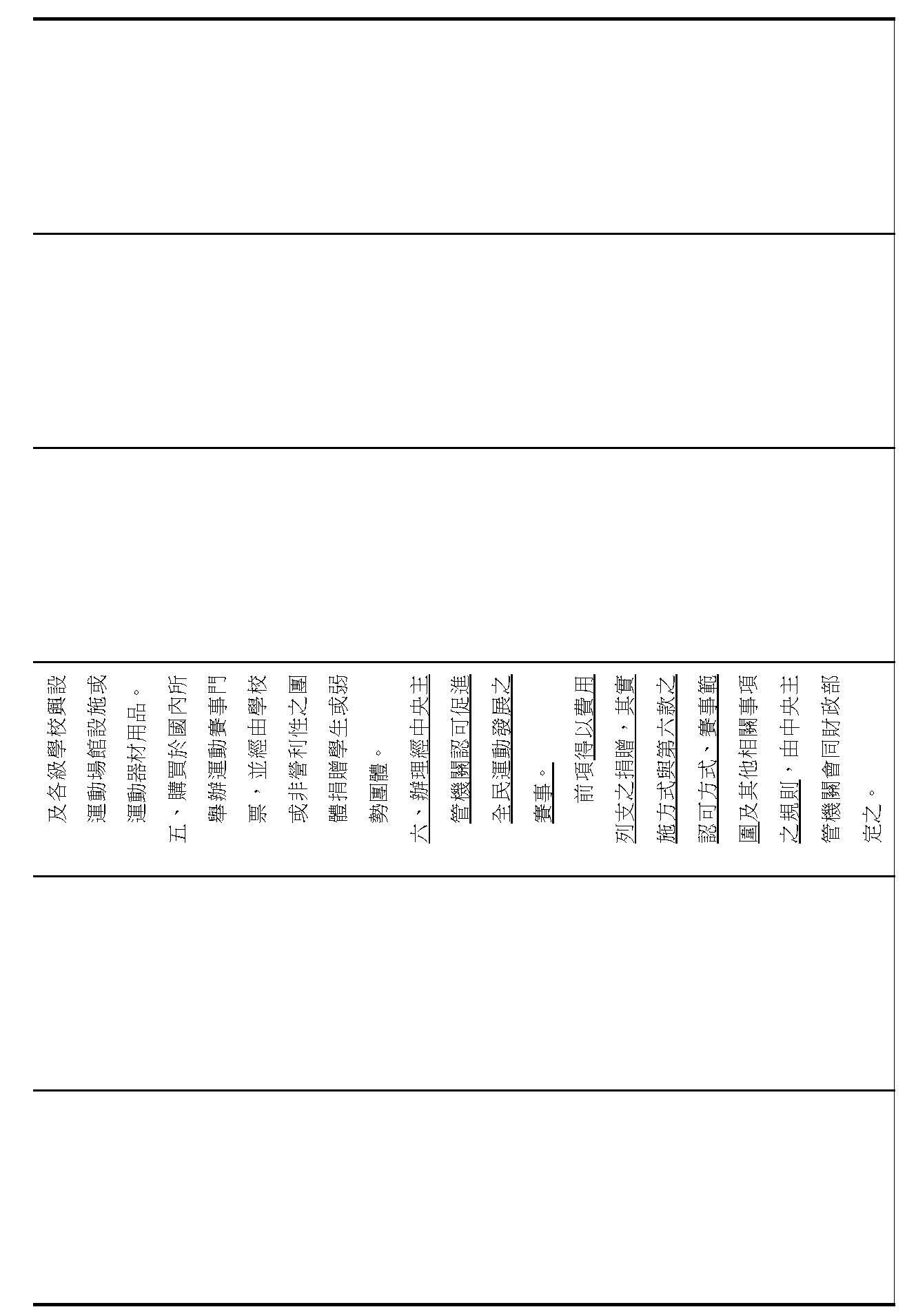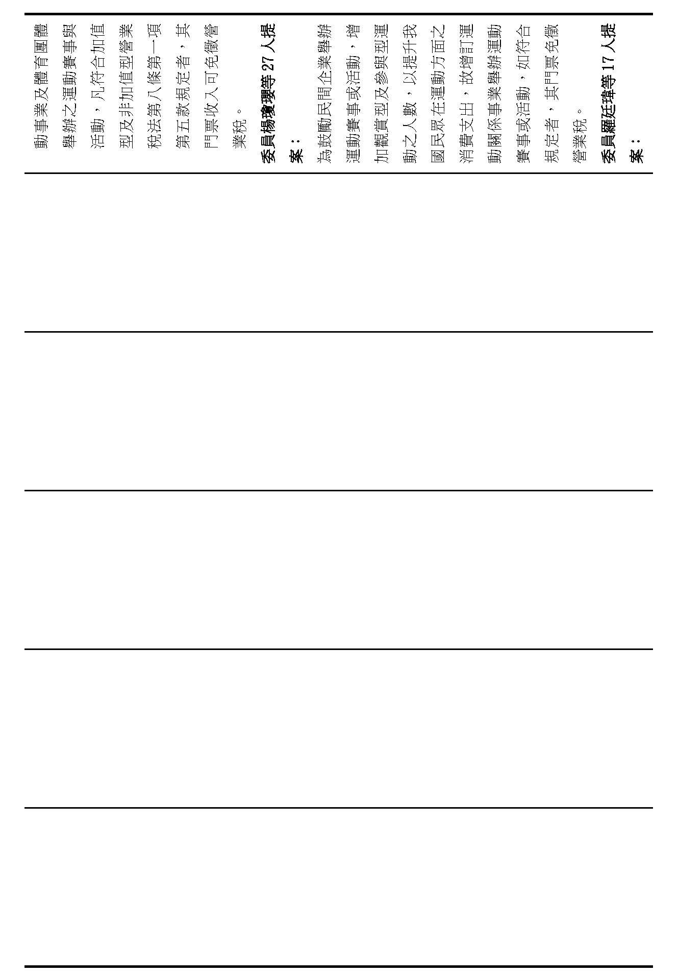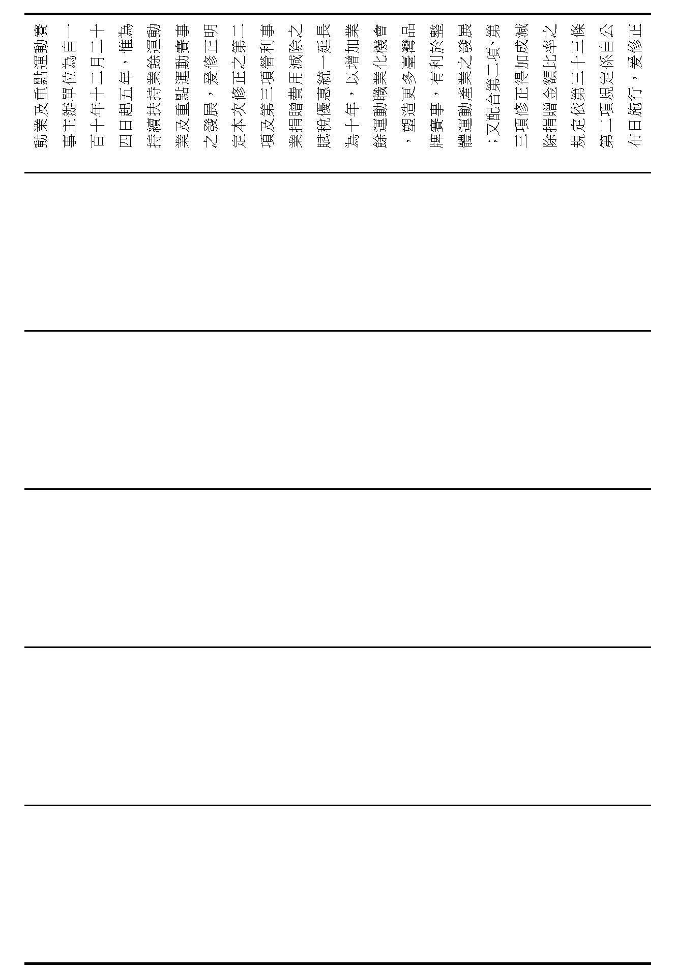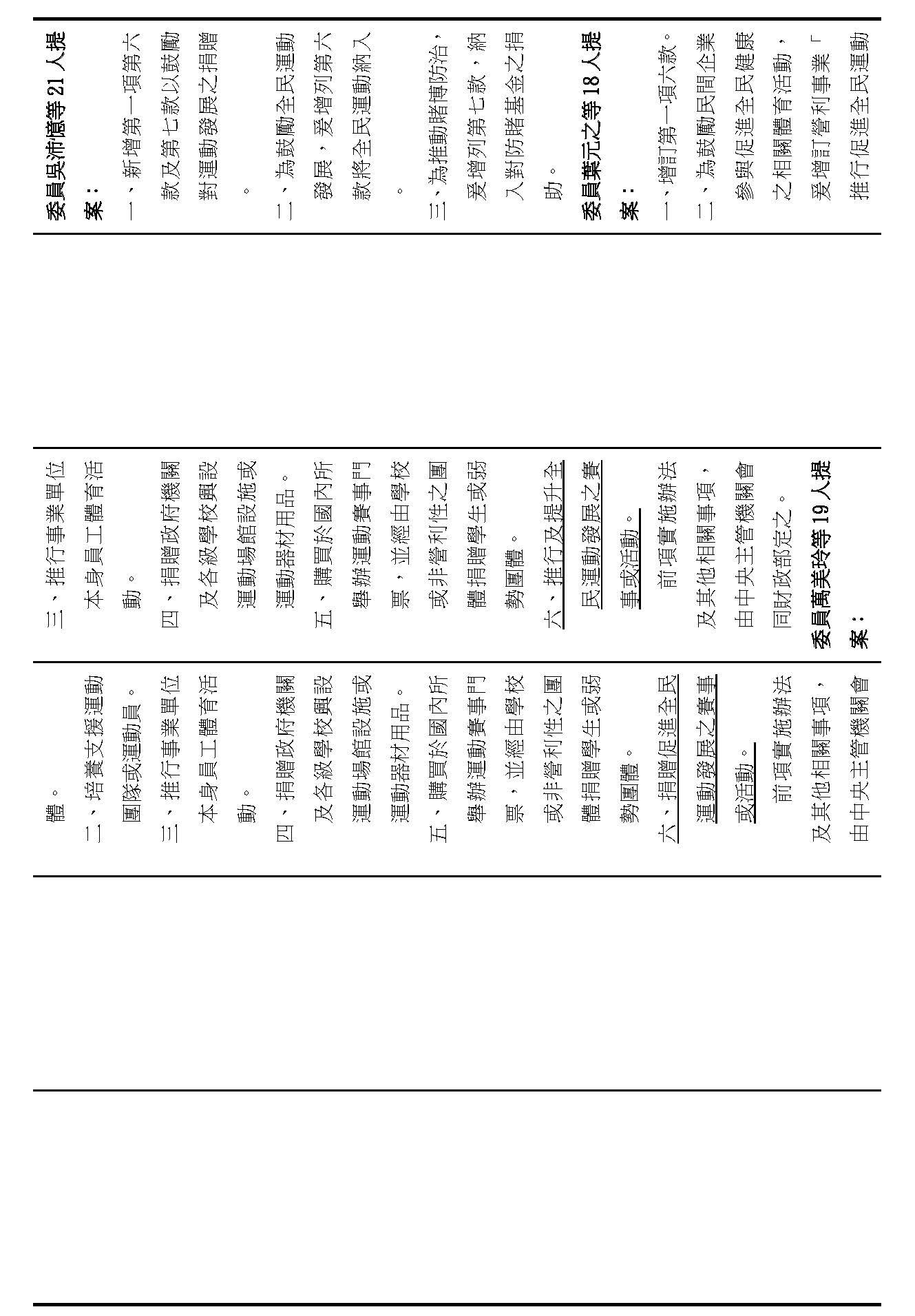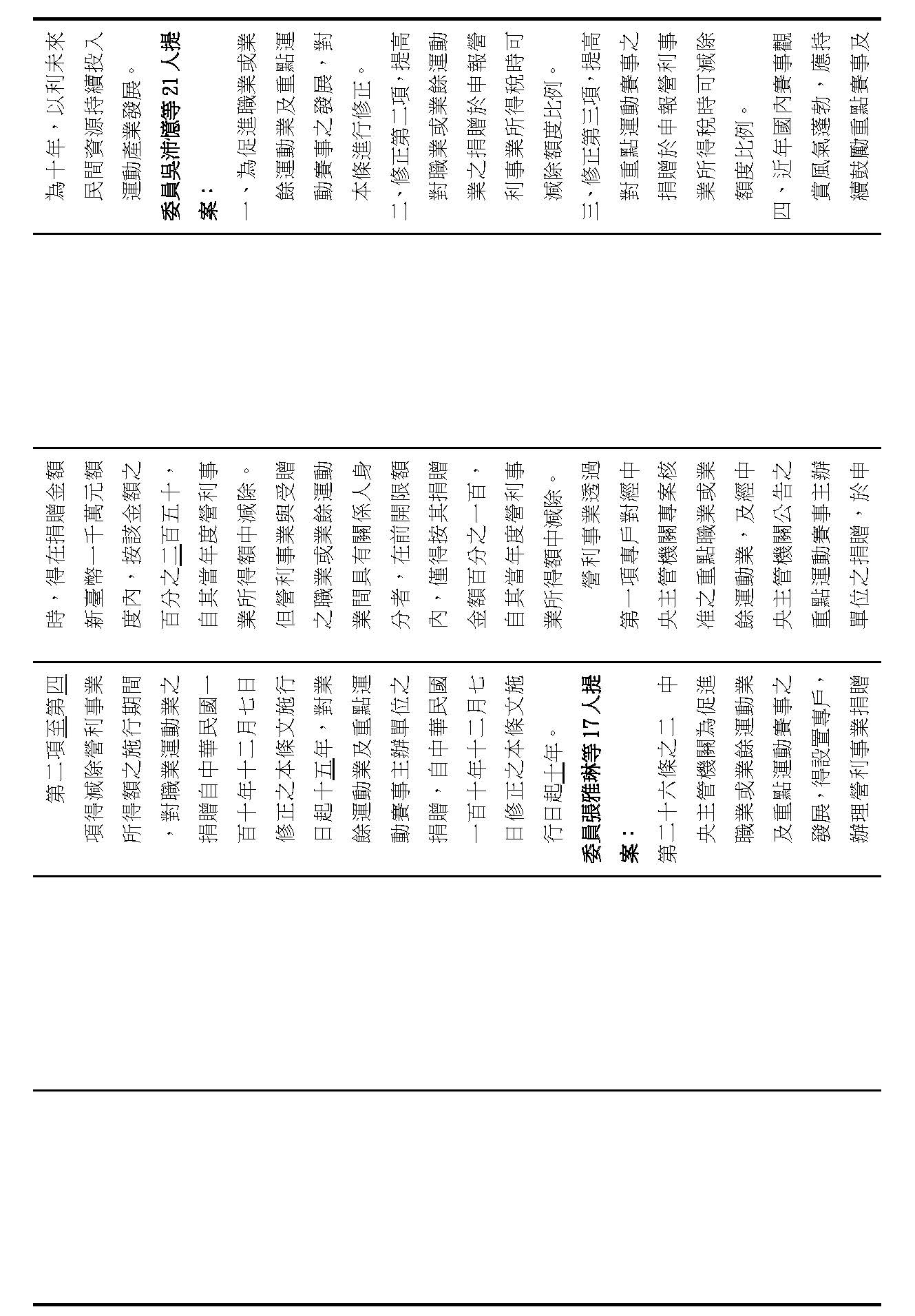 劉委員書彬:(9時18分)主席、各位同仁,大家早安。我國運動產業近年在國際體壇上表現亮眼,帶起全民運動和觀賞賽事的風氣。為繼續支持體育發展,教育及文化委員會於上個月25日審查通過運動產業發展條例部分條文的修訂。