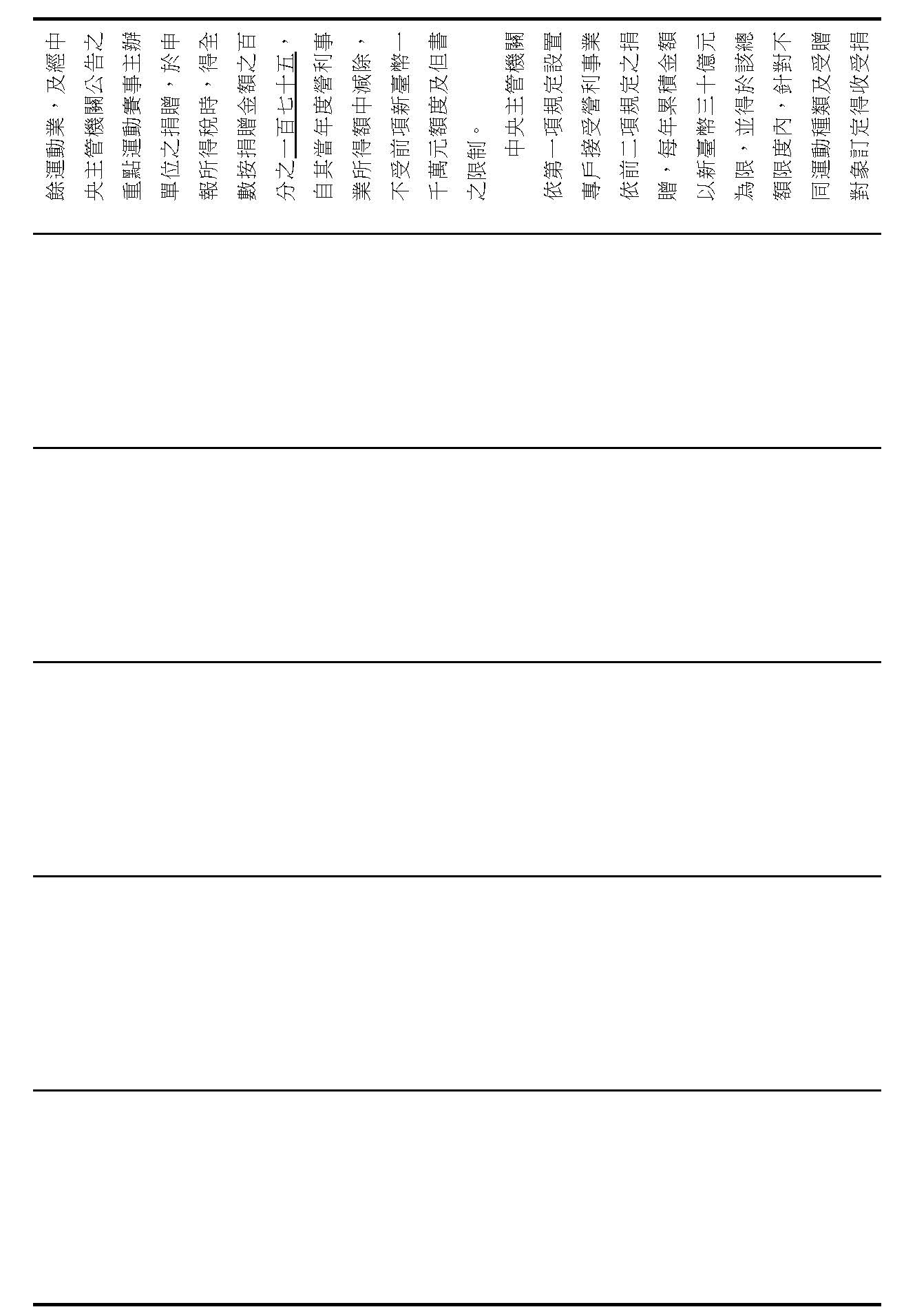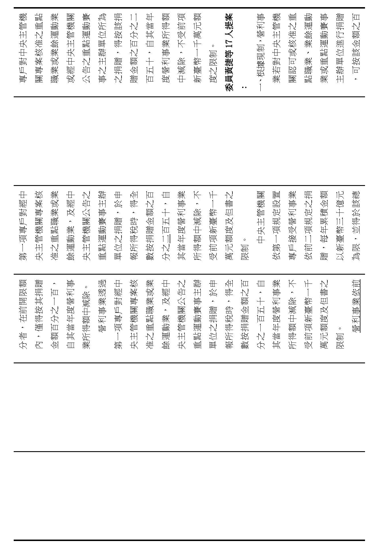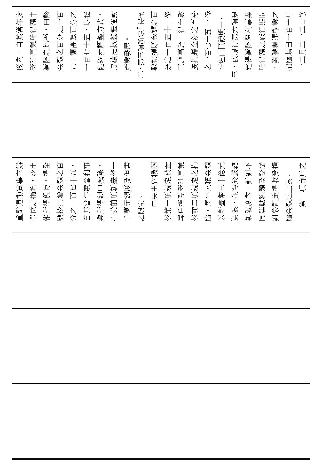 本次條文將企業捐助體育事業的稅前扣除比例由150%提升至175%,反映企業在非本業領域長期投入時所承擔的機會成本與品牌風險。175%的設計,提供企業更明確的誘因起點,同時保有財政穩健性與社會監督機制。本席亦建議,未來運動部與財政部應建立制度化的年度檢討與比例調升機制,視體育投入成效與財政狀況,逐年推動扣除比例朝向200%甚至更高,讓企業能在制度穩定下做出長期規劃。