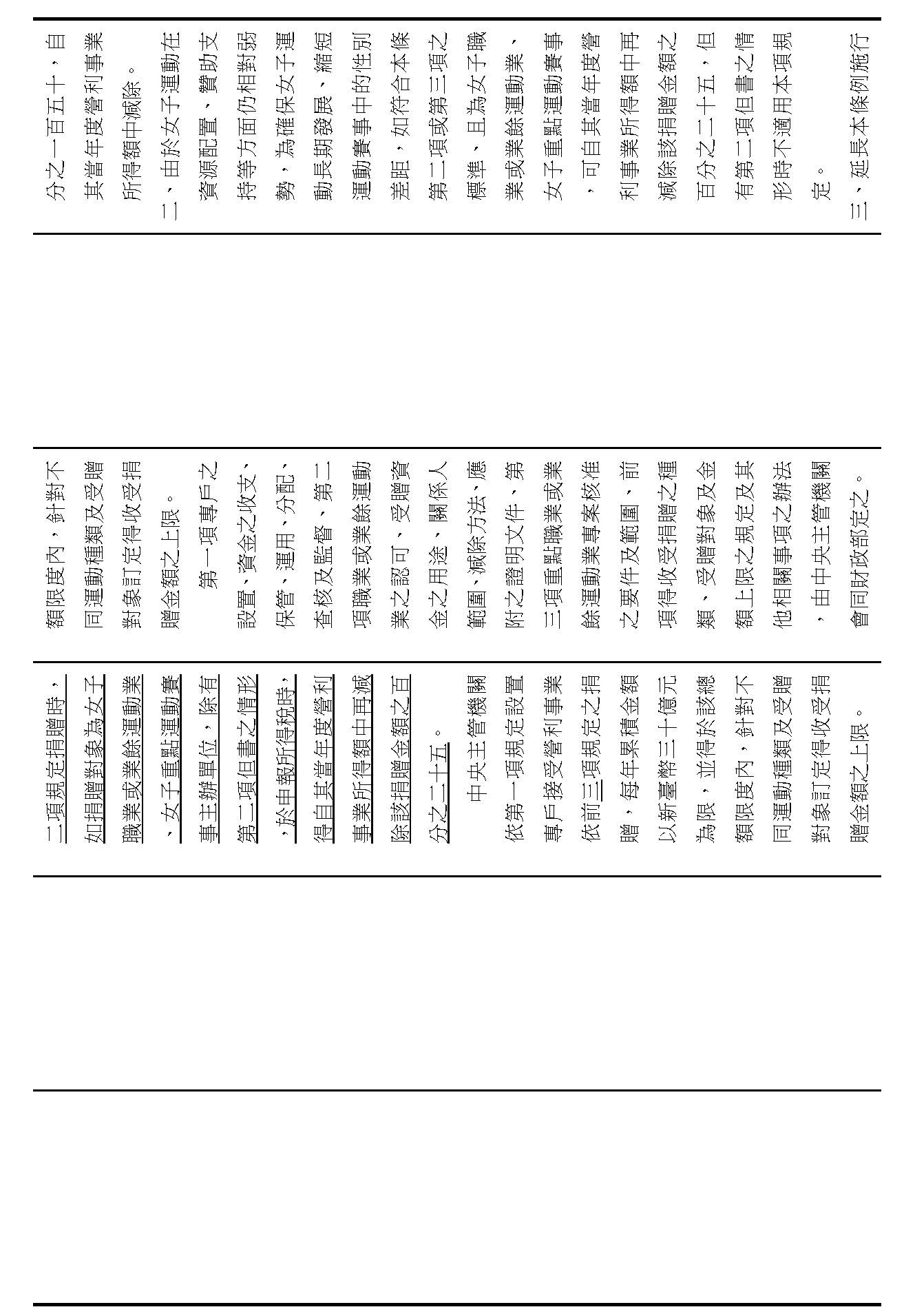 這次第二十六條之二的修法也同步加碼企業對運動團體或賽事捐贈的稅務優惠,從150%提高到175%;為扶持業餘運動賽事跟重點運動賽事之發展,租稅優惠也延長到十年,未來企業在規劃贊助時就會更有動力持續投入資金發展體育活動。