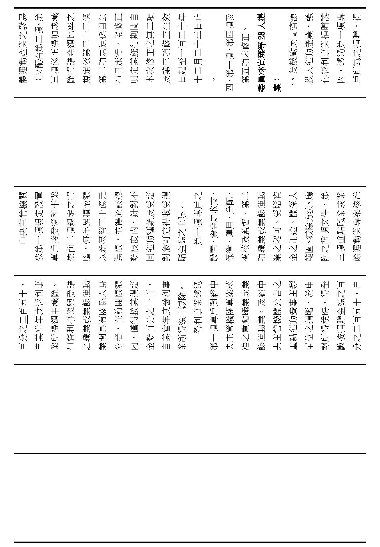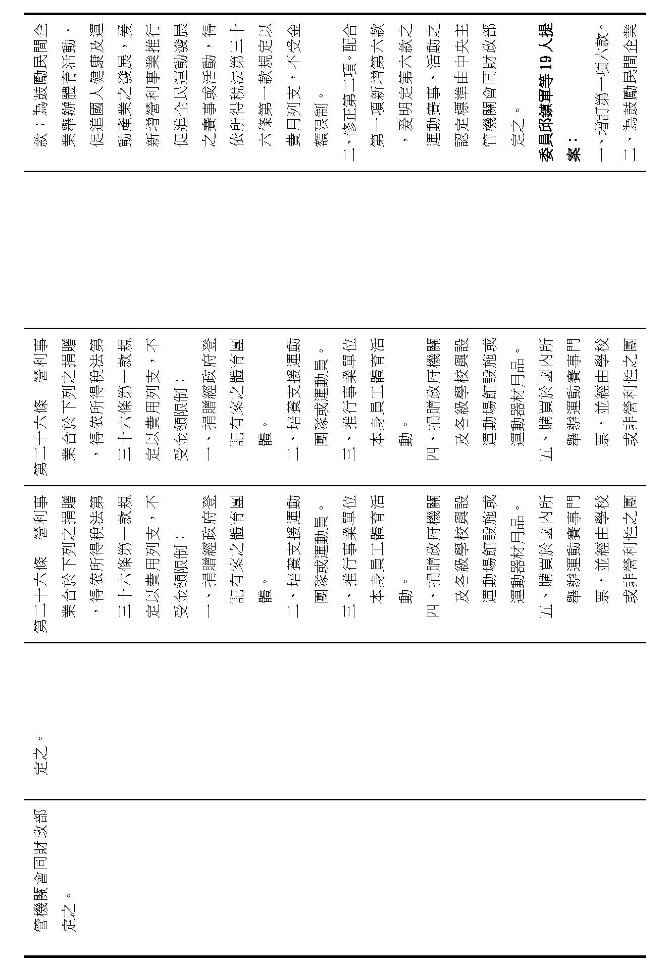 運動產業發展條例修正第八條、第十三條、第二十六條及第二十六條之二條文(三讀)