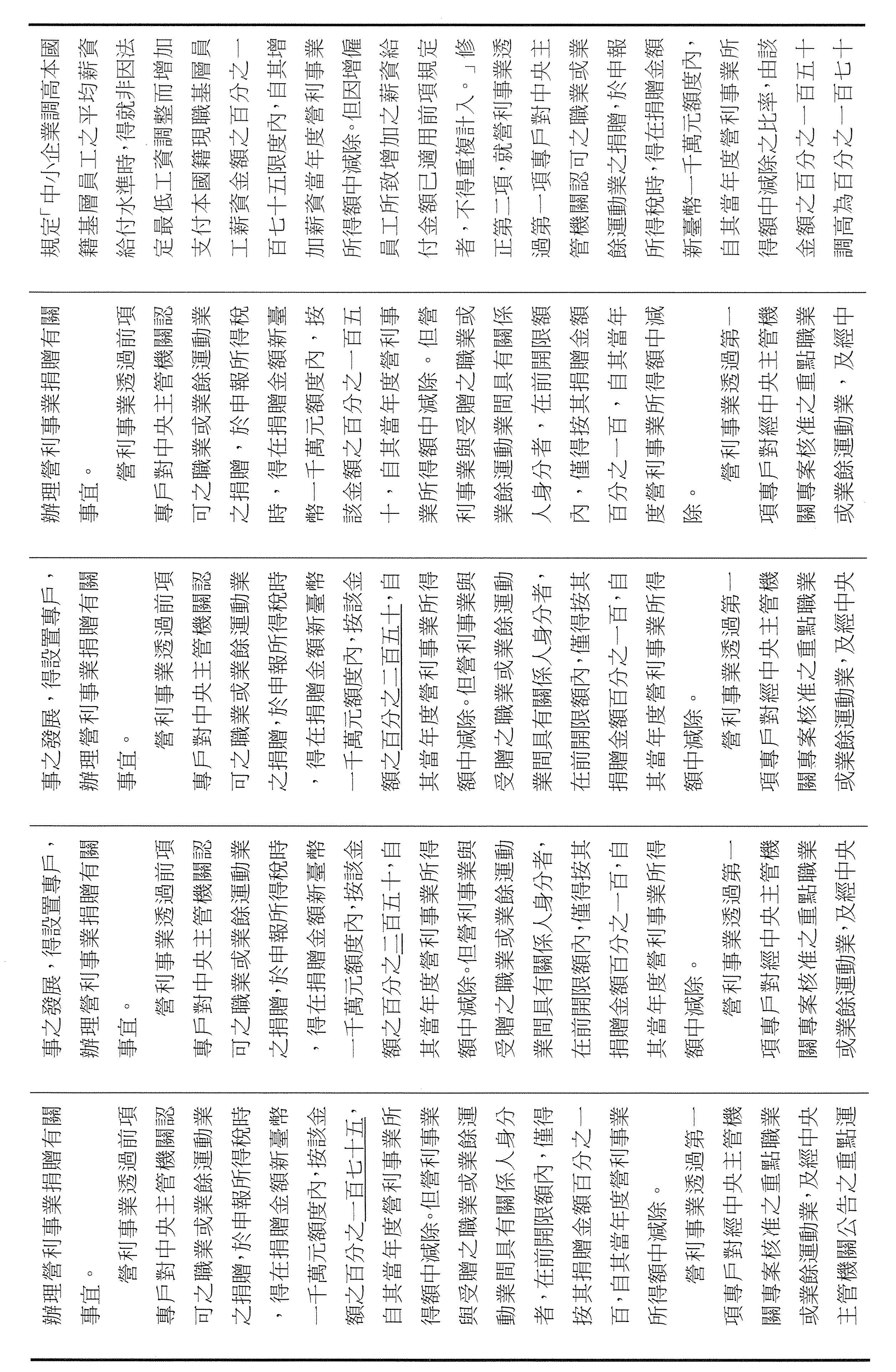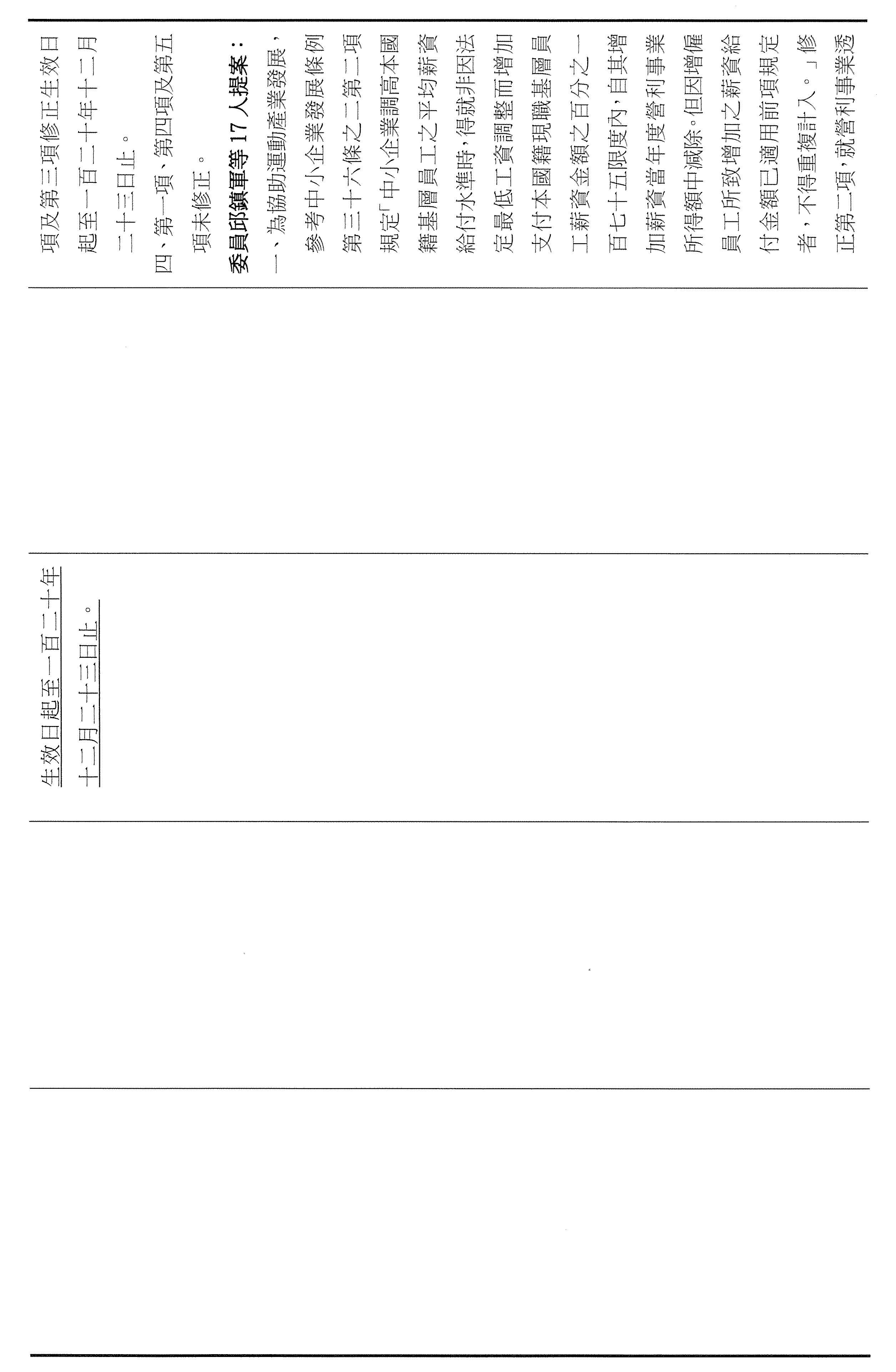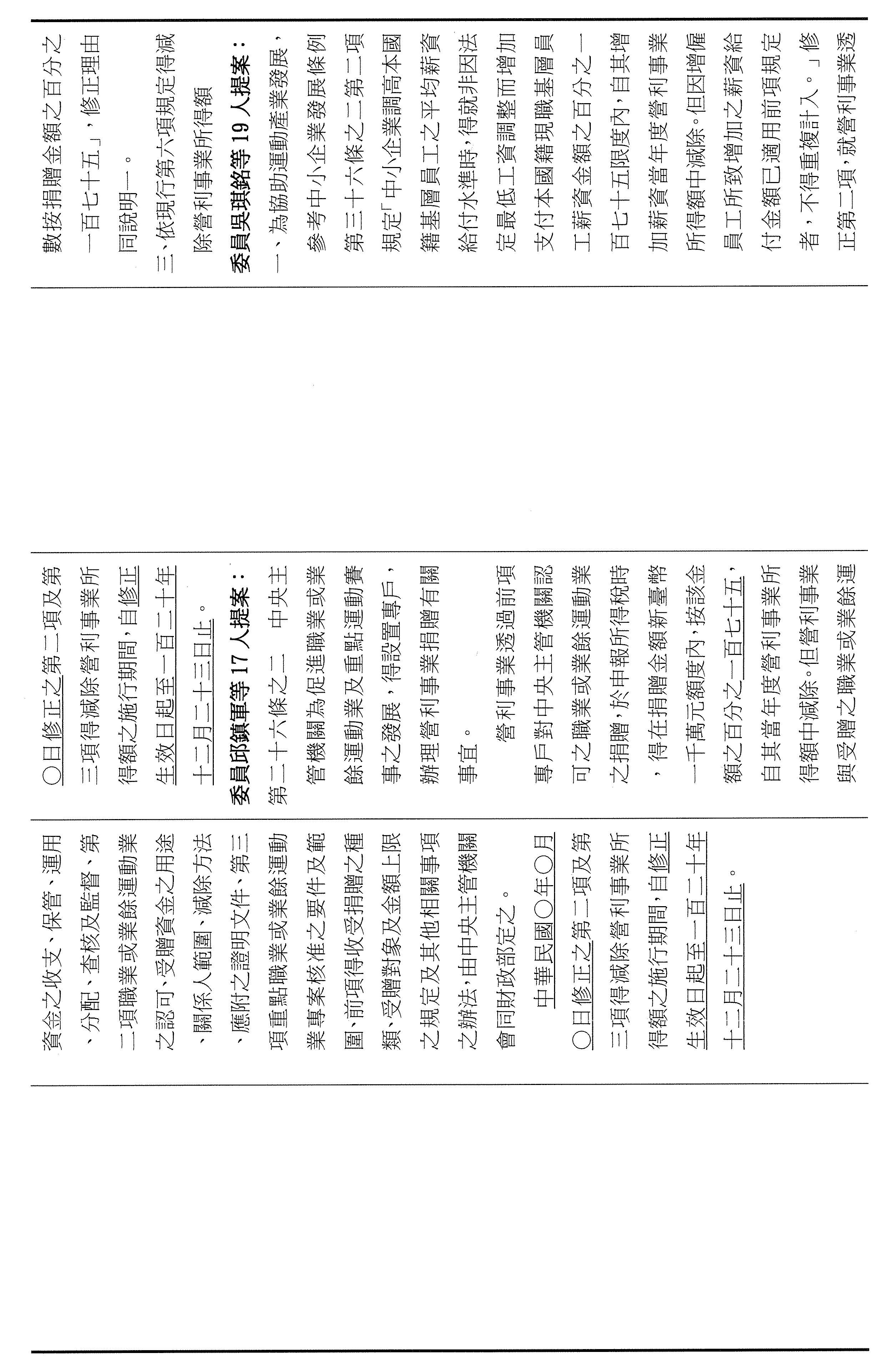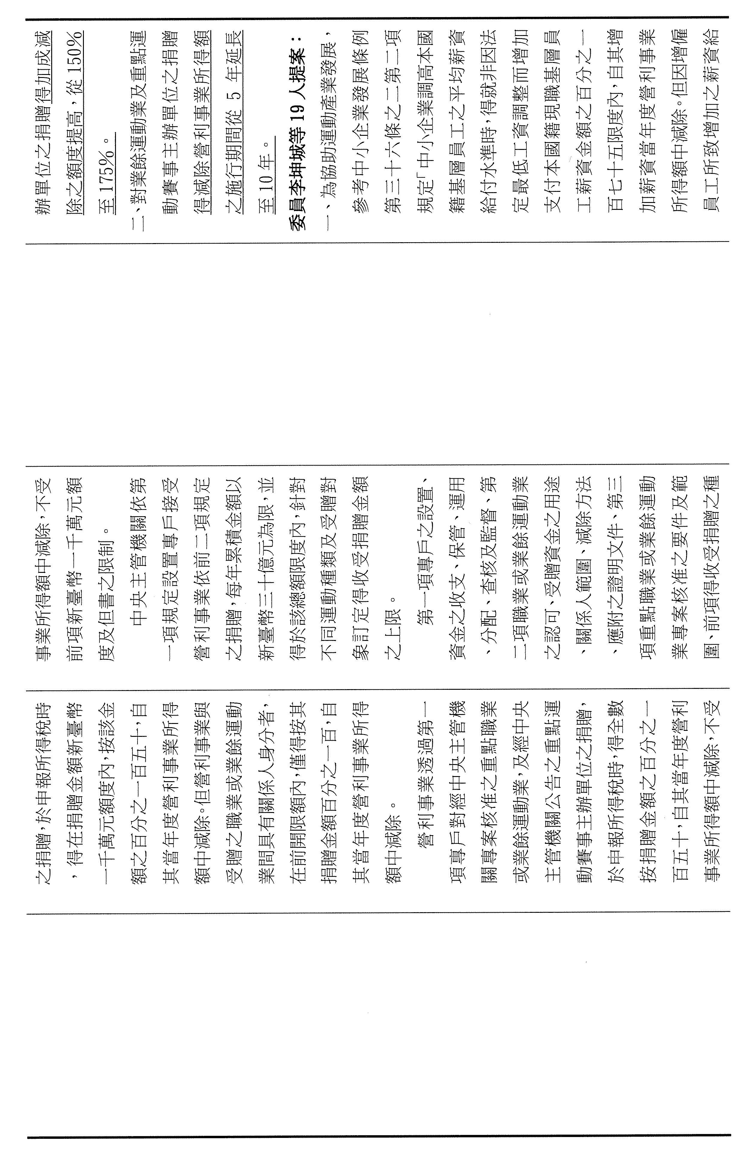 主席:謝謝。剛才我們已有非常完整的討論了,當然本席也是有提案的,因為真的是希望能夠有更多的鼓勵,不管是相關的獎勵,或者是一些激勵的措施。本席的提案也是250%,但是剛才的討論也非常地完整,還有包含各式各樣一些額外的協助。署長有沒有要額外補充?沒有嗎?好,那我們看一下螢幕上面有修改的部分。