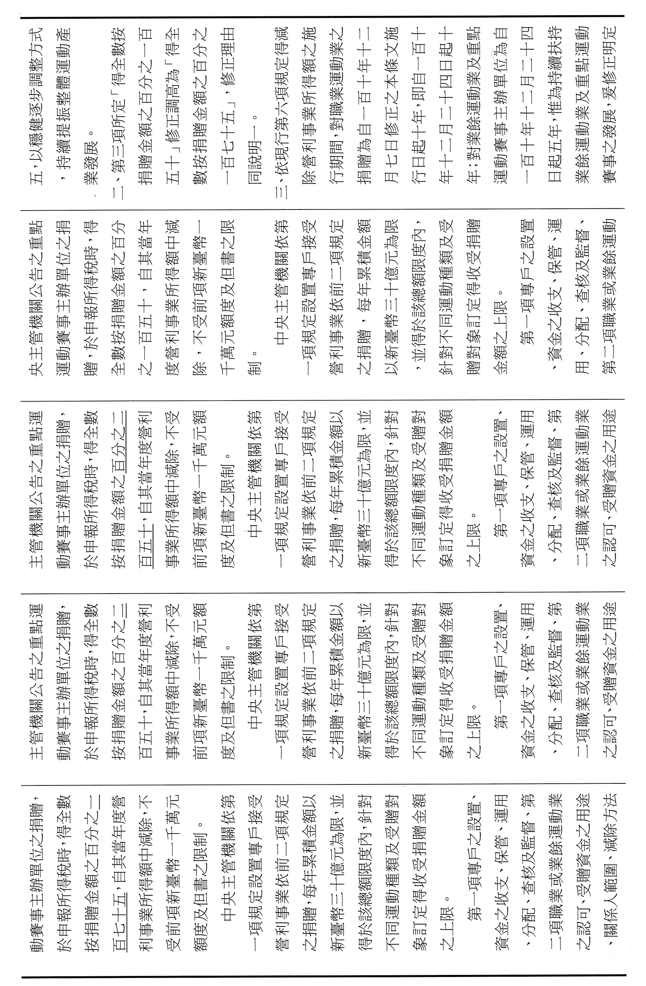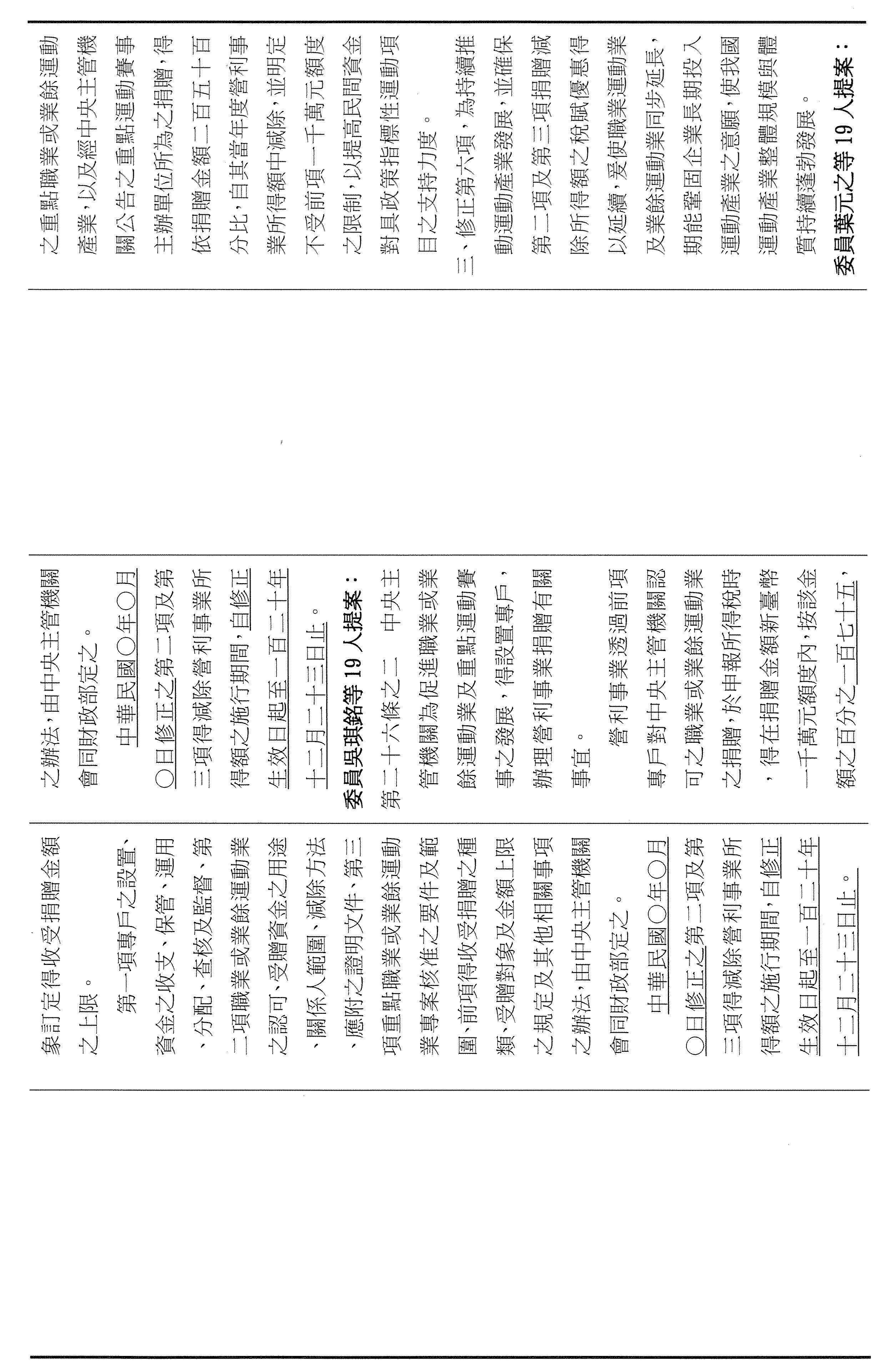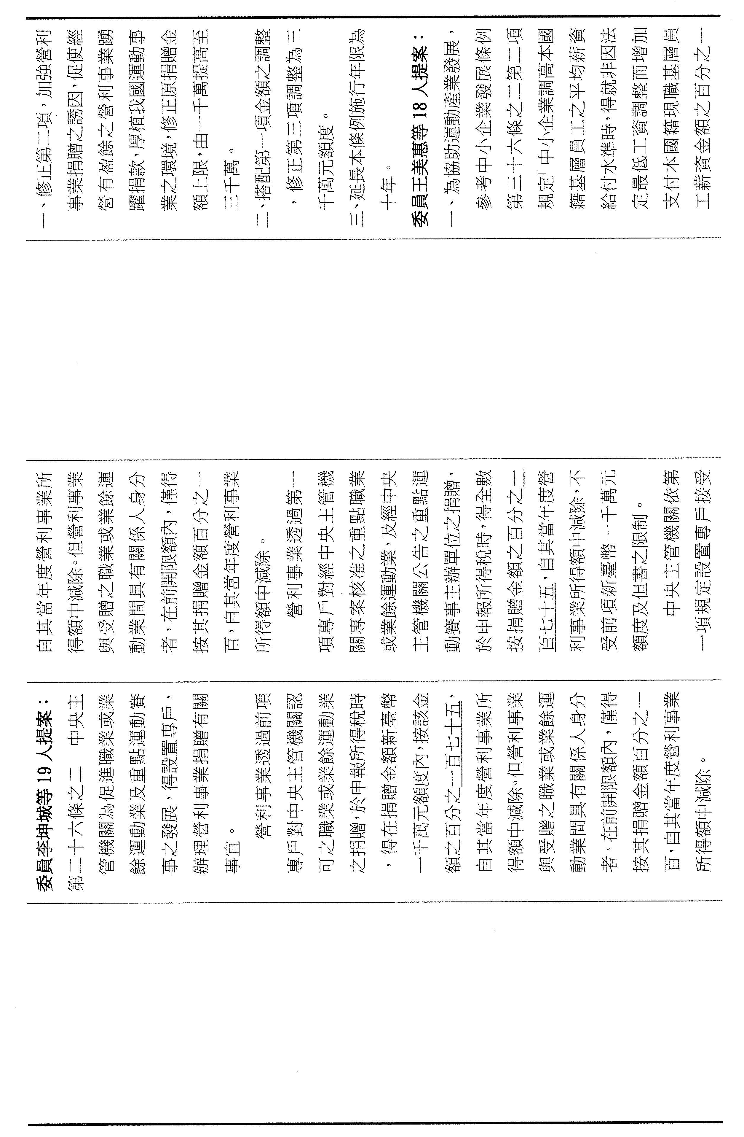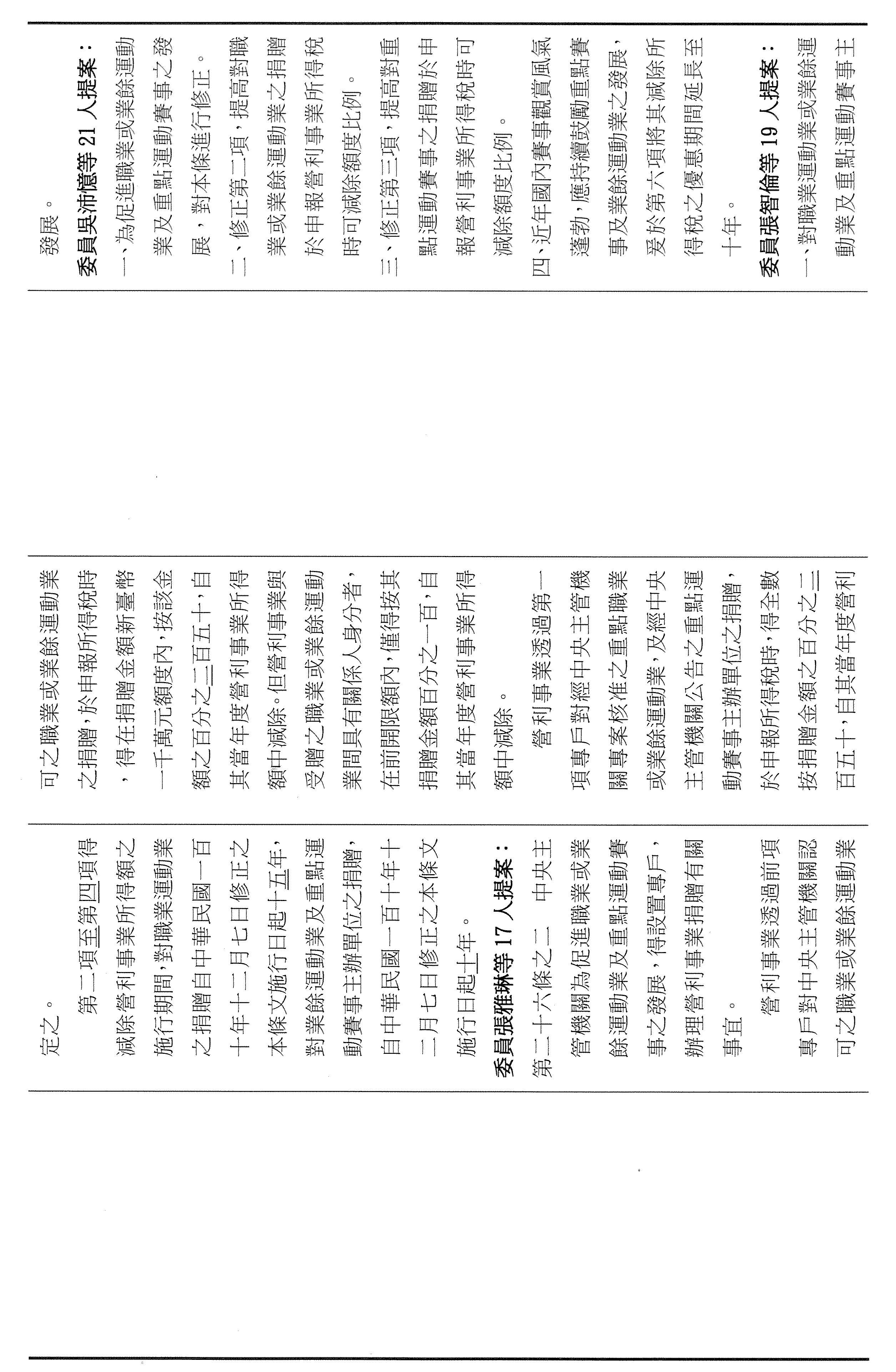第二項是針對業餘運動業及重點運動賽事捐贈的期限,希望能夠比照職業運動的期限,把它延長到10年,所以這部分委員們提案的修正方向與院版幾乎都是一致的,所以建議維持院版。
