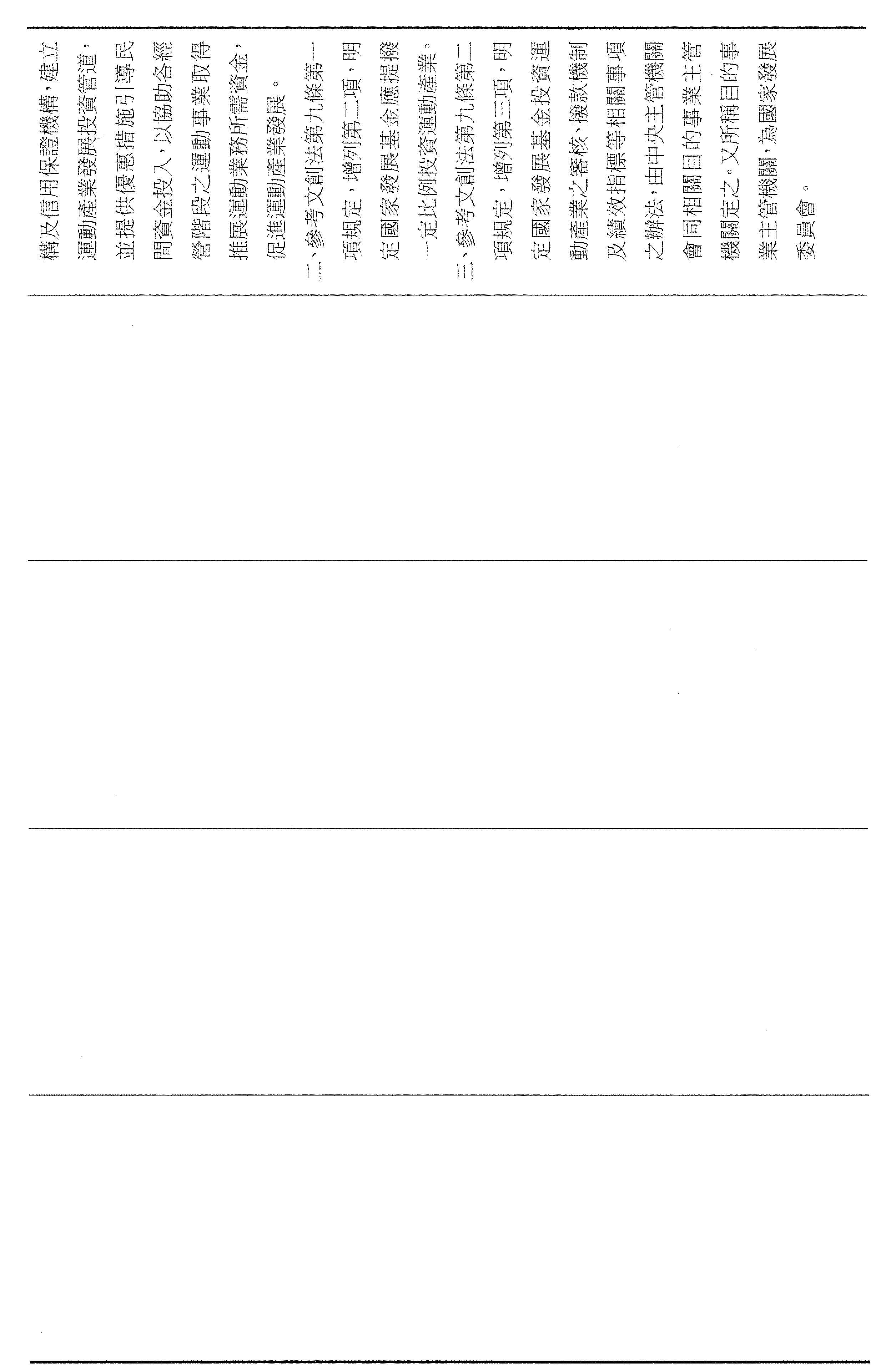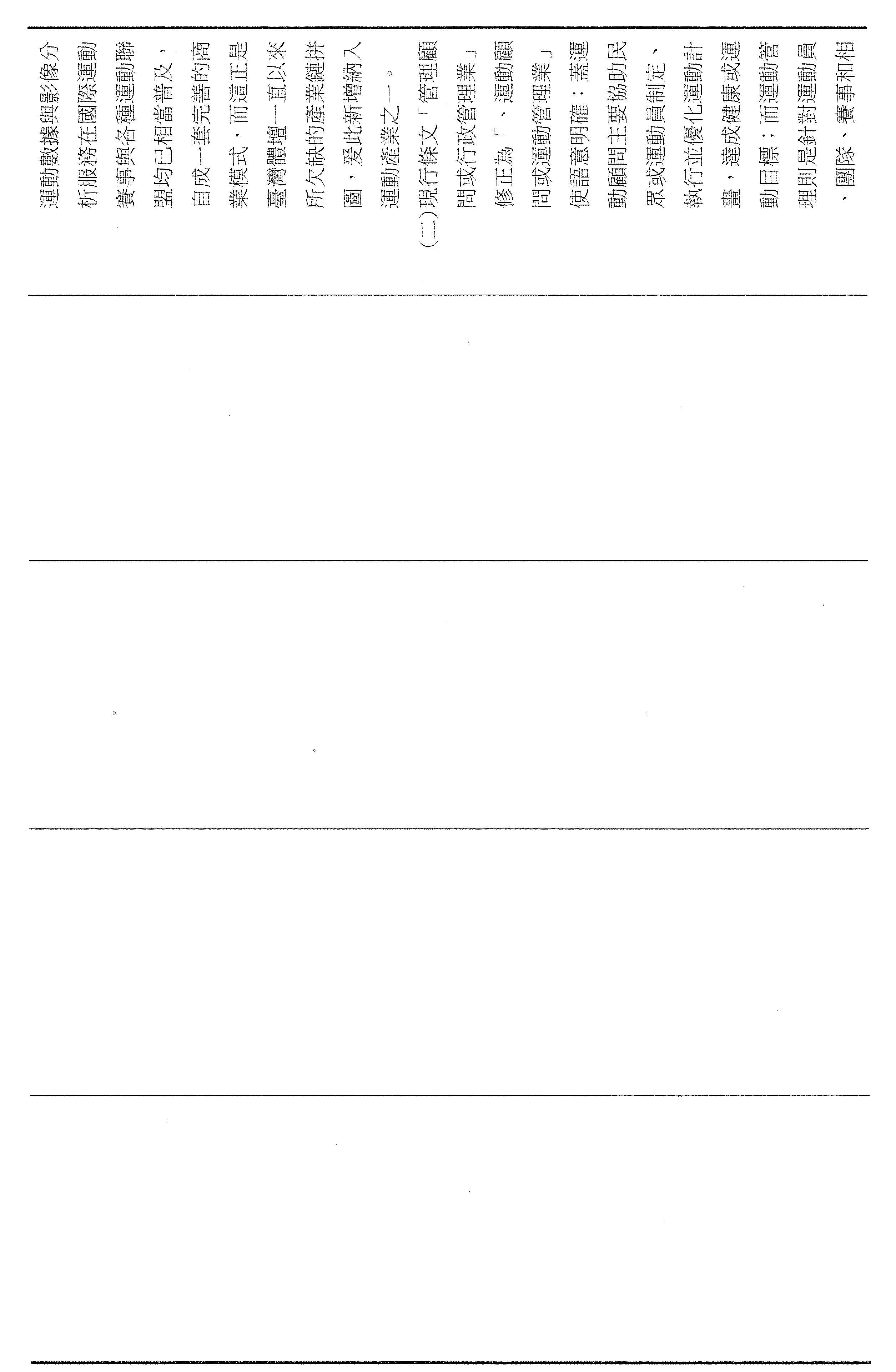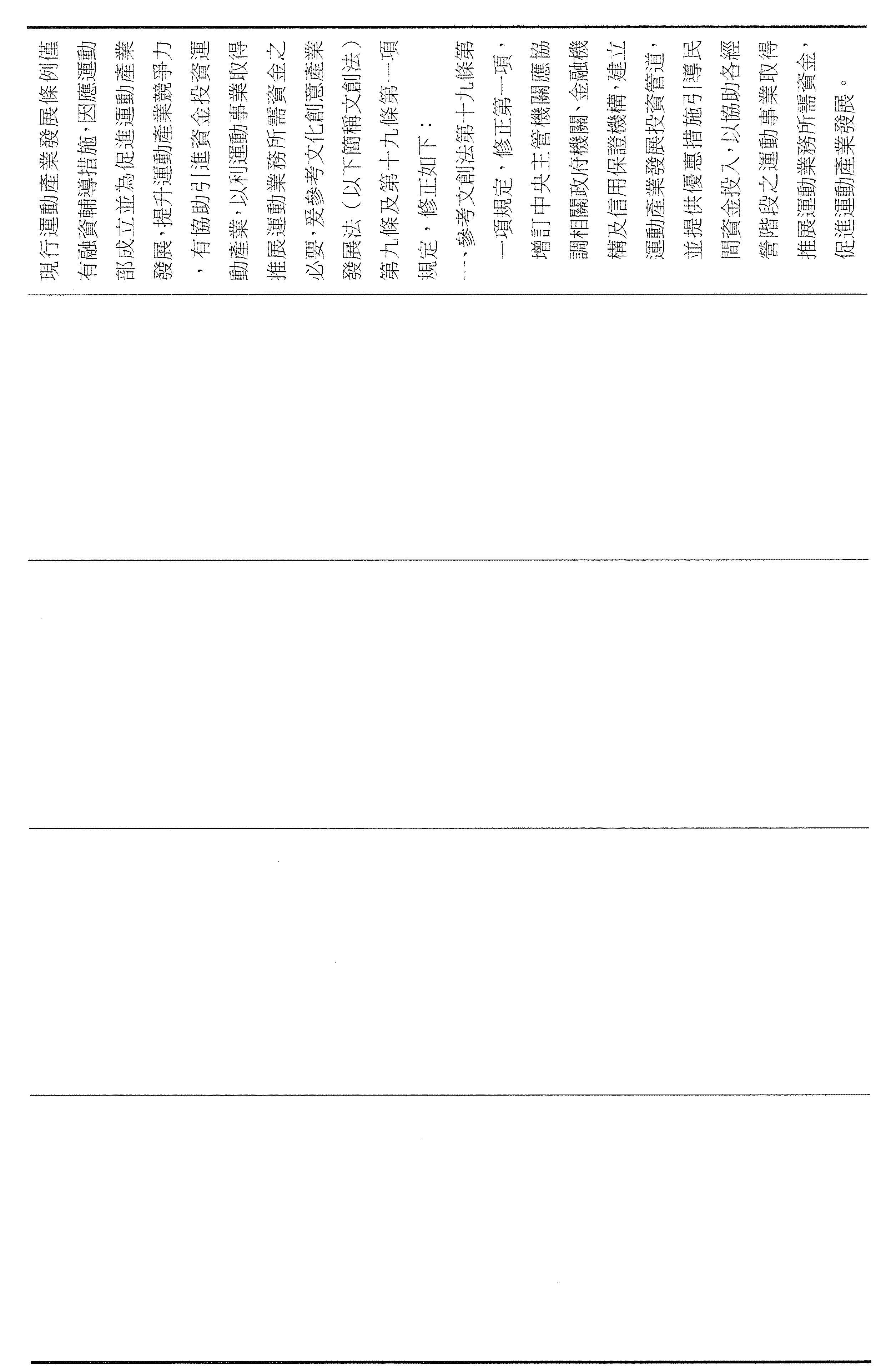 鄭署長世忠:有關第二十六條之二這一條的修正草案,感謝各位委員的提案,都是為了給予我們運動產業的發展一個支持,特別感謝。我們這個案子的修正草案分為五大部分,我這邊會逐一做個說明。