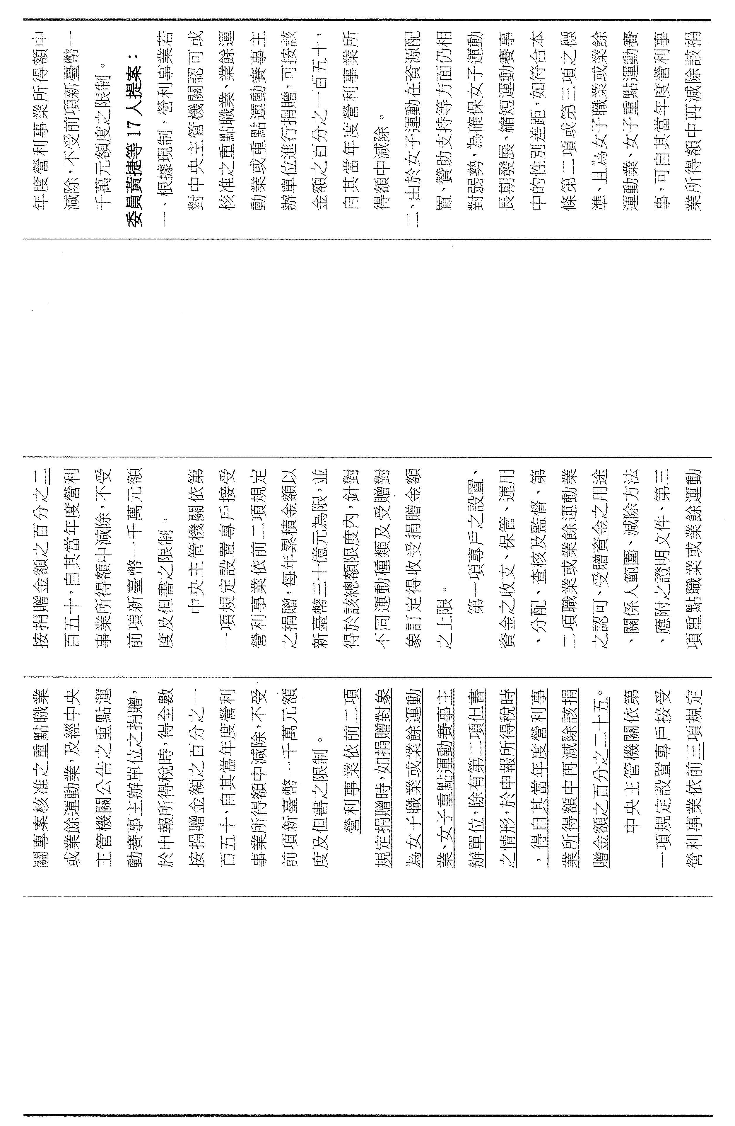 至於黃捷委員提案確保女子運動長期發展,這部分我們體育署其實是表示尊重;有關稅制的部分再請財政部說明。
