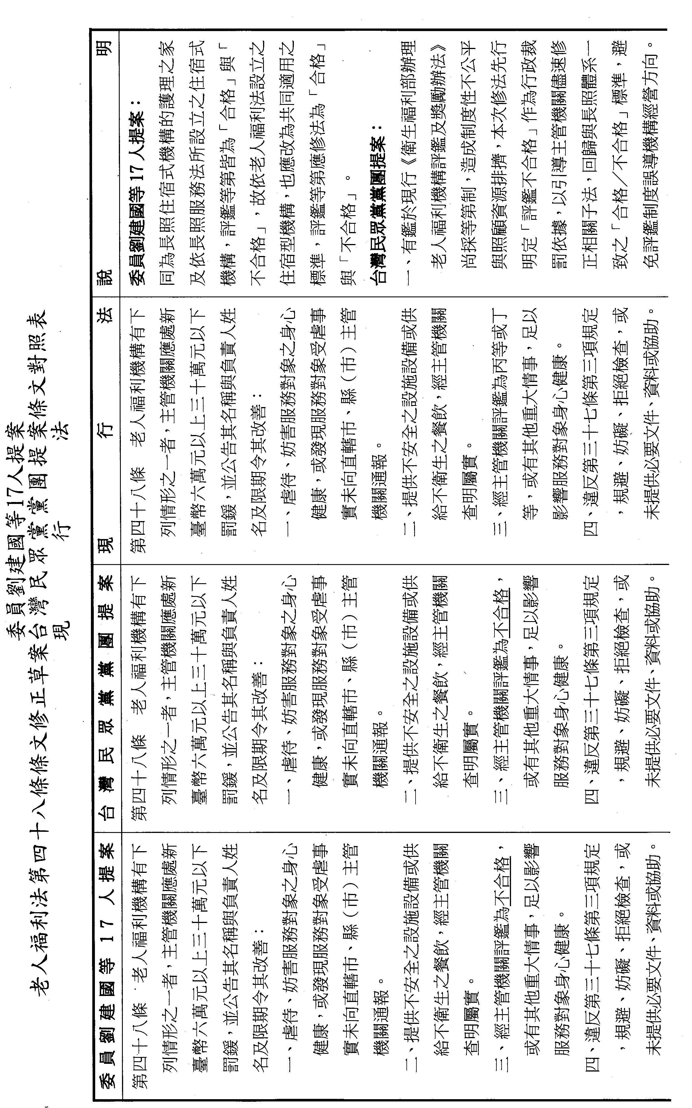 (二)台灣民眾黨黨團擬具「老人福利法第四十八條條文修正草案」案。