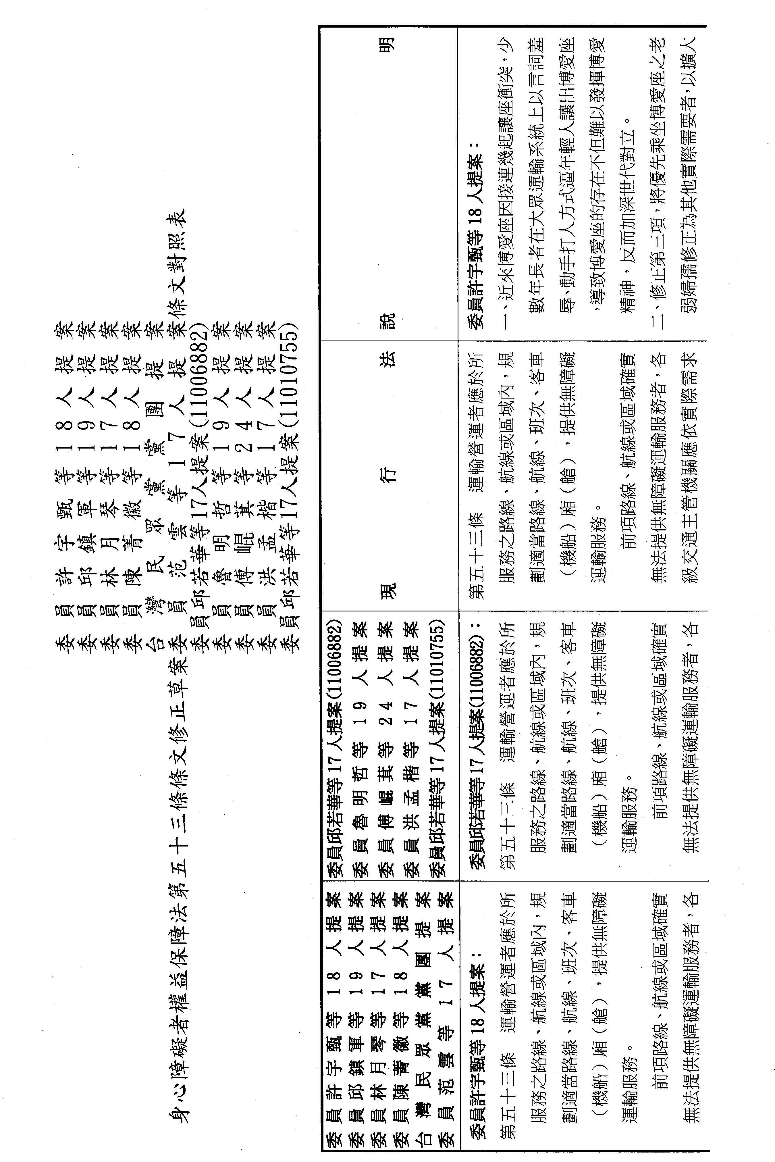 (六)委員徐富癸等18人擬具「身心障礙者權益保障法第十條條文修正草案」案。