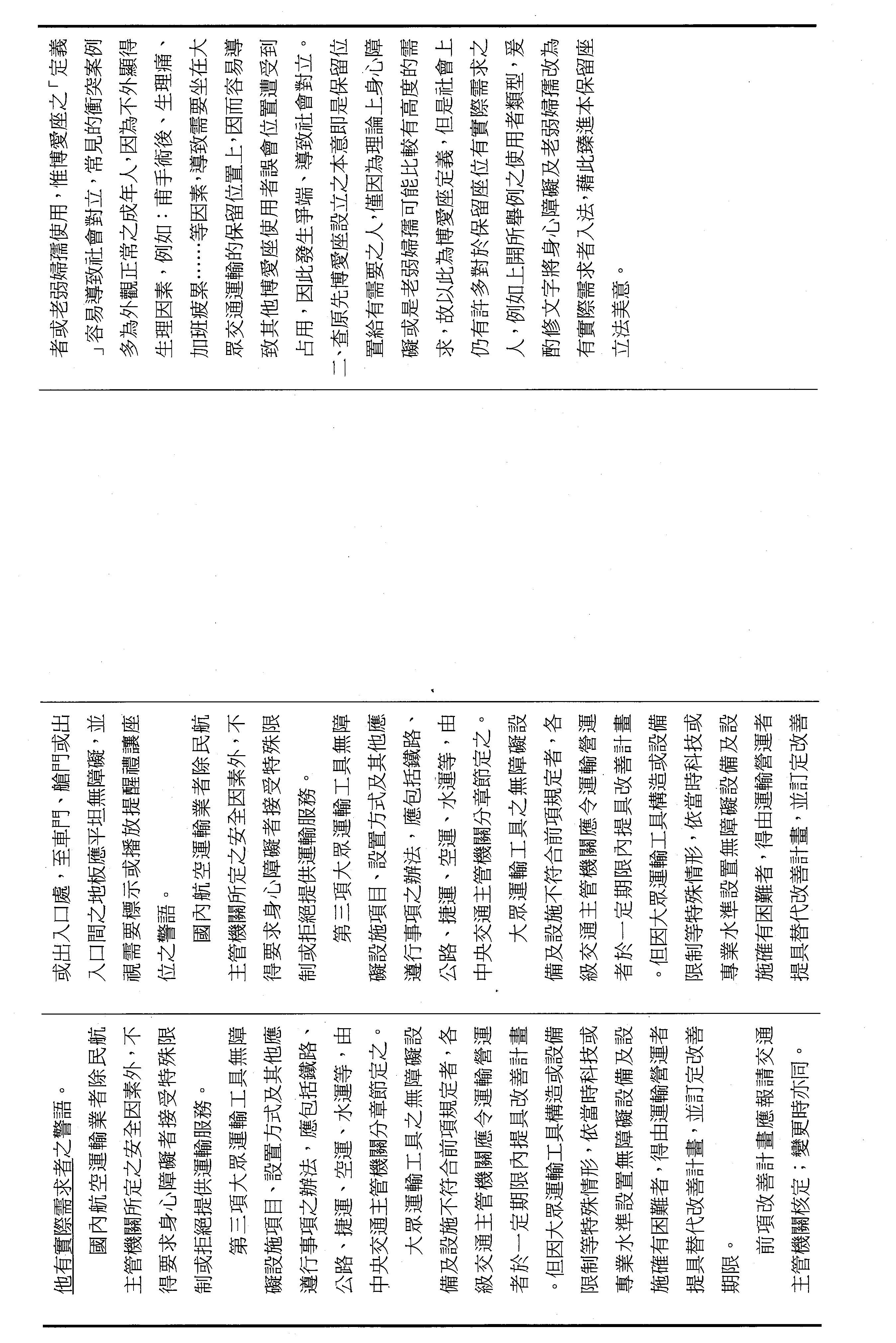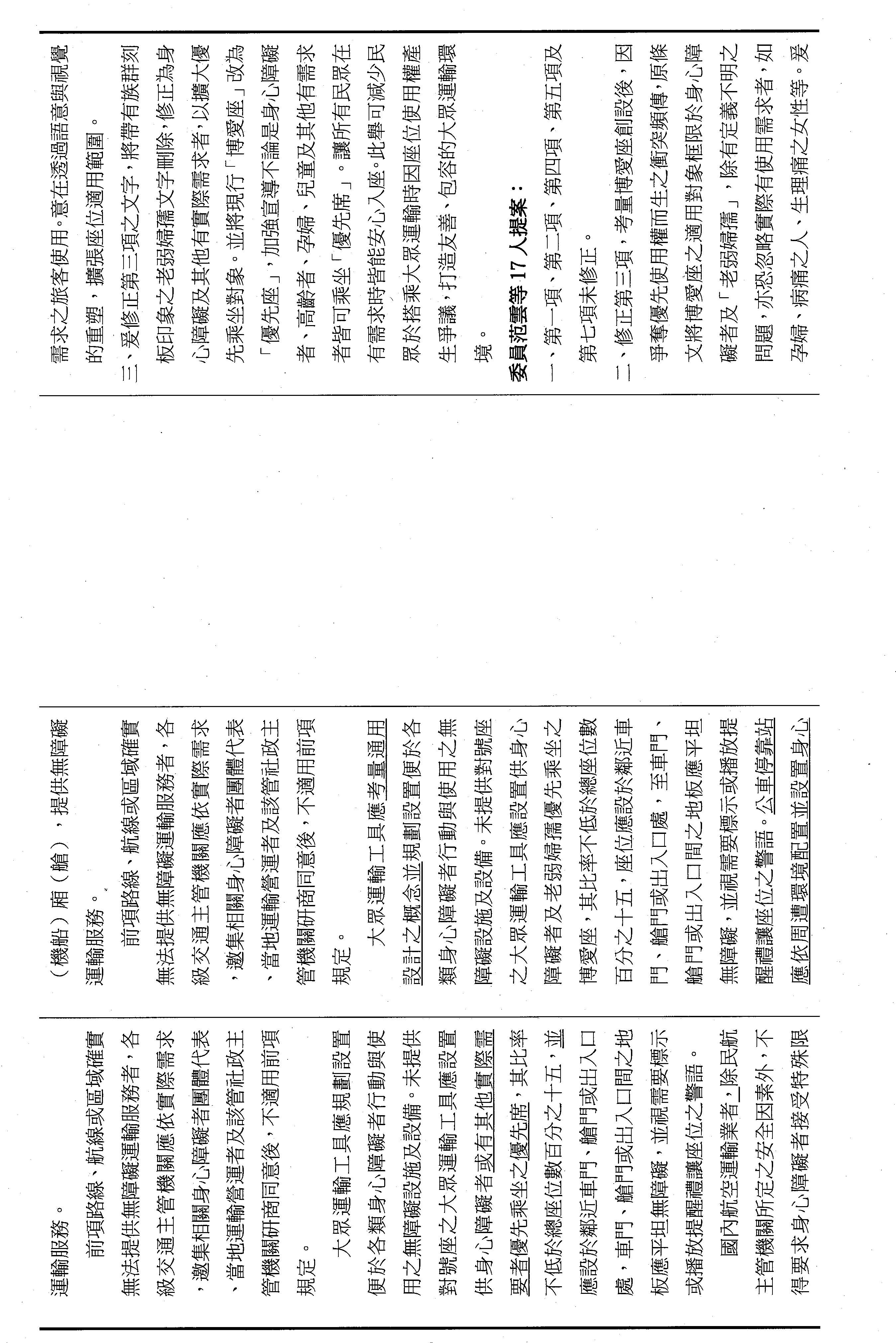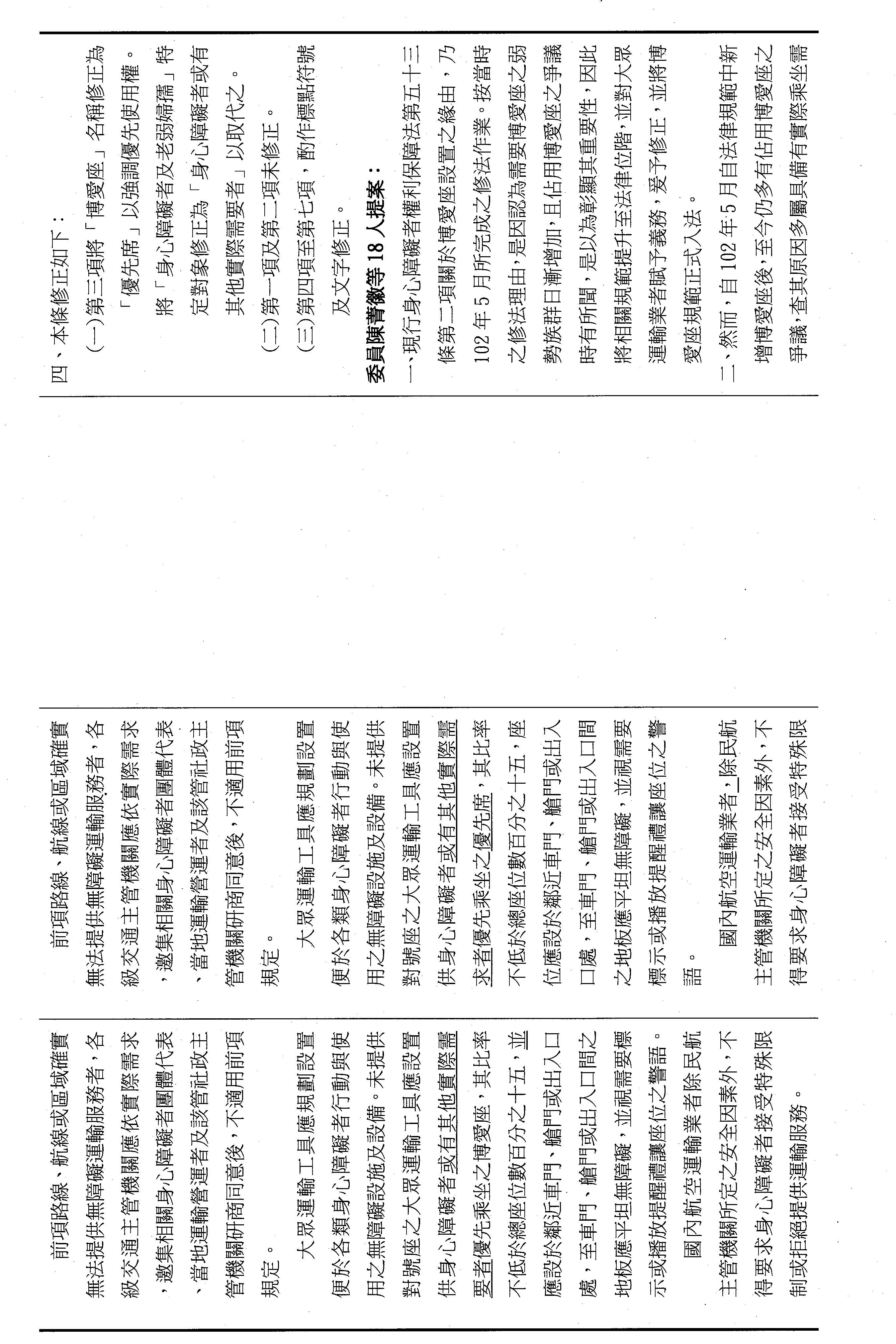 第三個,我現在再確認一次,這個作法……雖然例子很多,放在捷運等等,但這個是公共運輸的座位,請問我可以請代理署長再確認一下,這是適用範圍嗎?就是我們今天改了這個以後的適用範圍,你可不可以稍微唸給我聽?適用範圍。