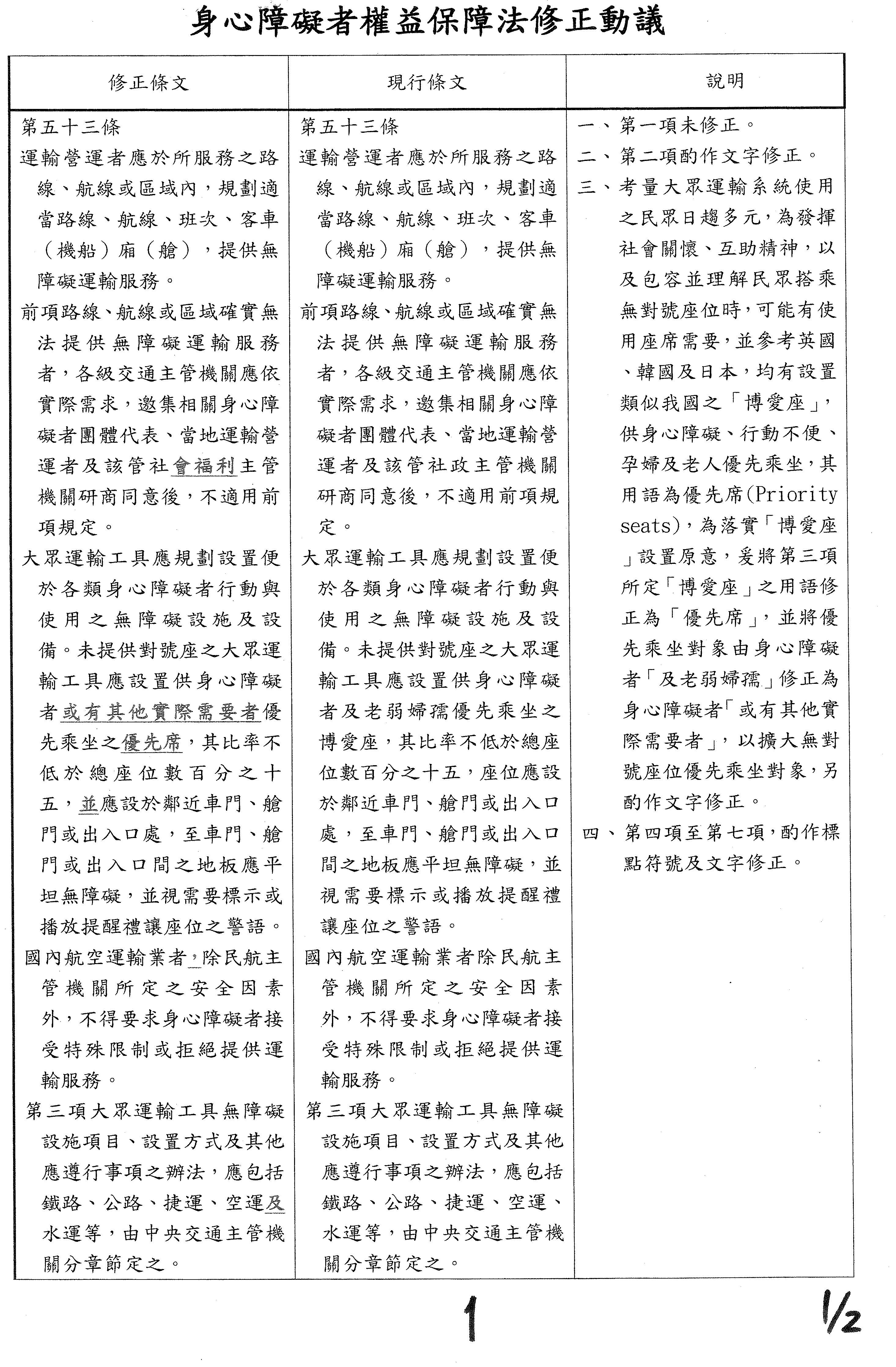 (五)台灣民眾黨黨團擬具「身心障礙者權益保障法第五十三條條文修正草案」案。