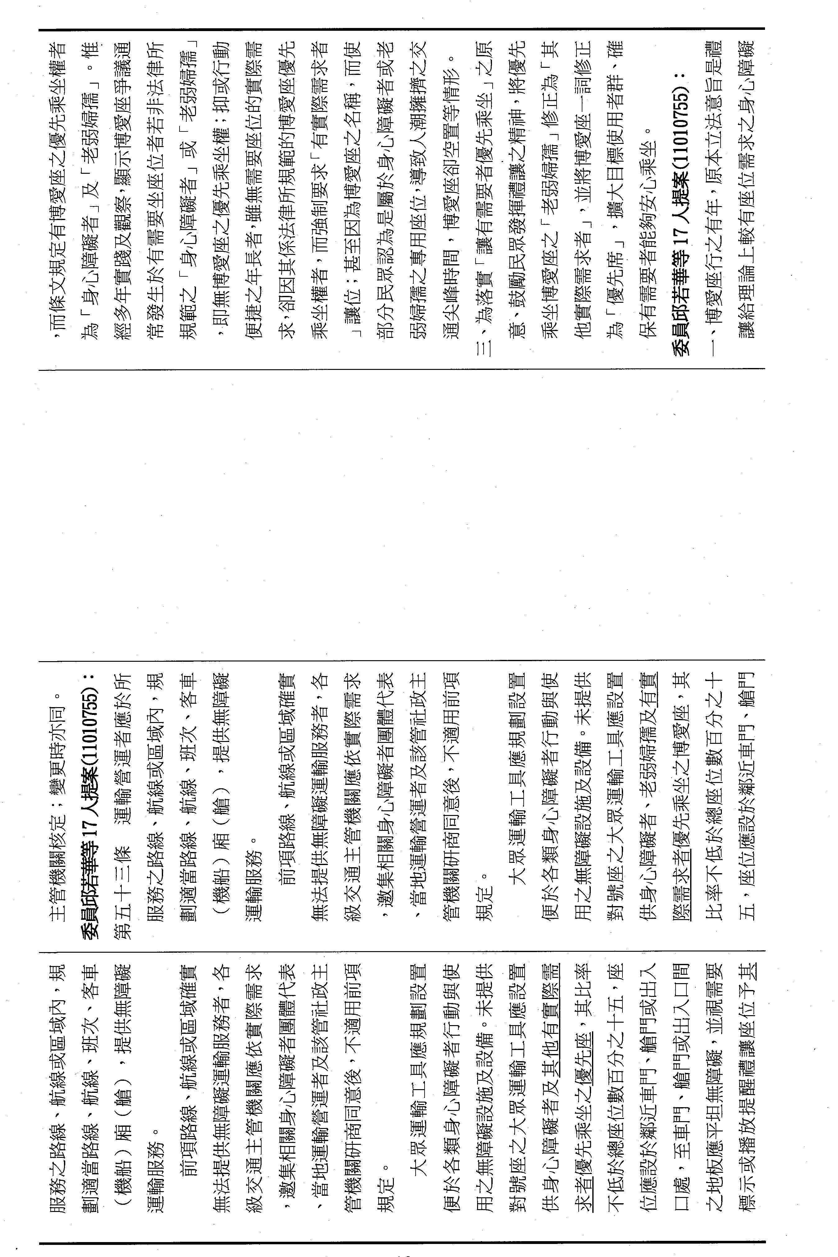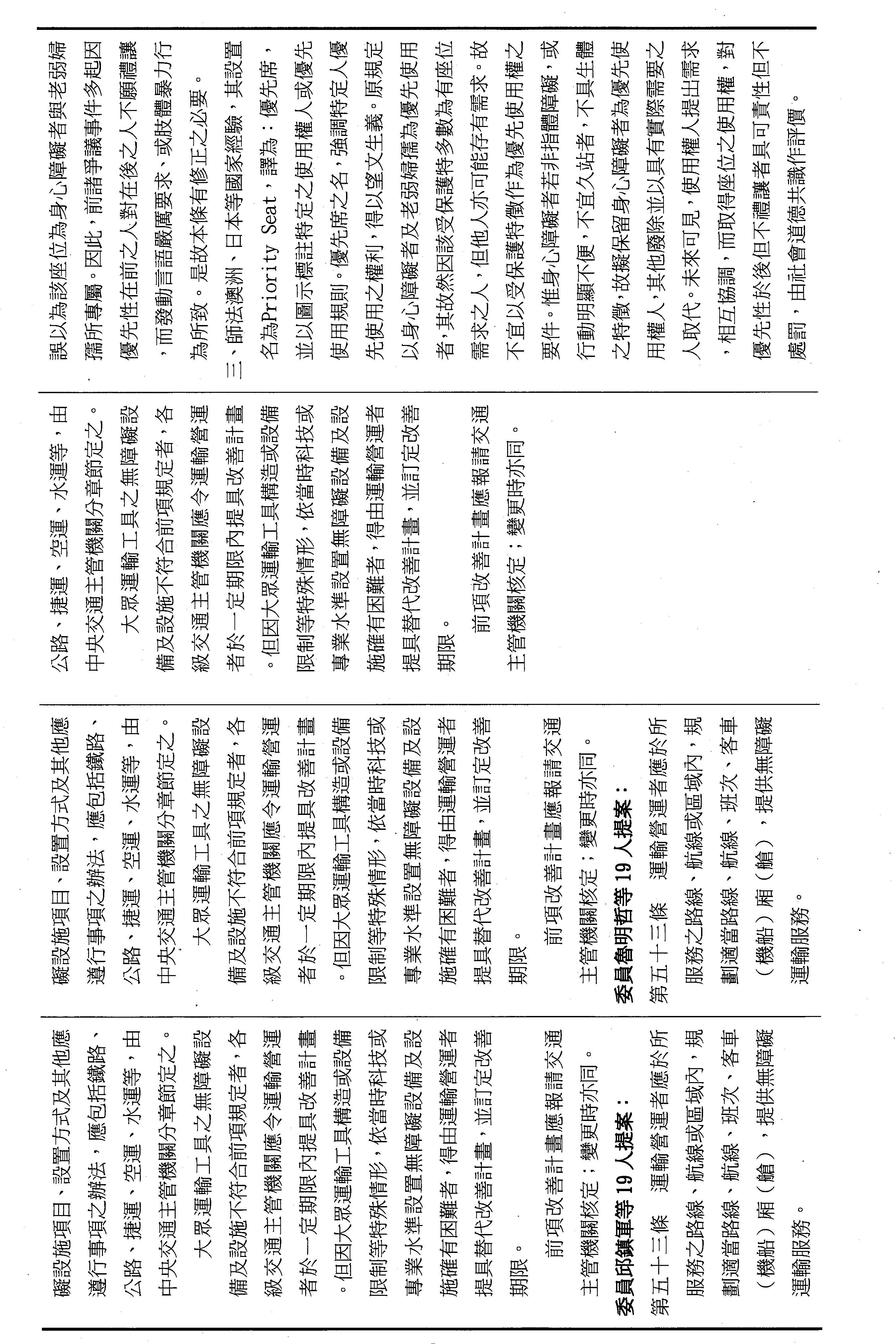 王委員正旭:我想大家對於「席位」還是「座位」本身,如果從英文來看,seat的第一個發音是s,跟「席」比較相近,所以我想如果我們從中英文等等的角度來看,也許請昭姿委員也可以針對這個字眼做一些認同,「優先席」聽起來會不會比較……