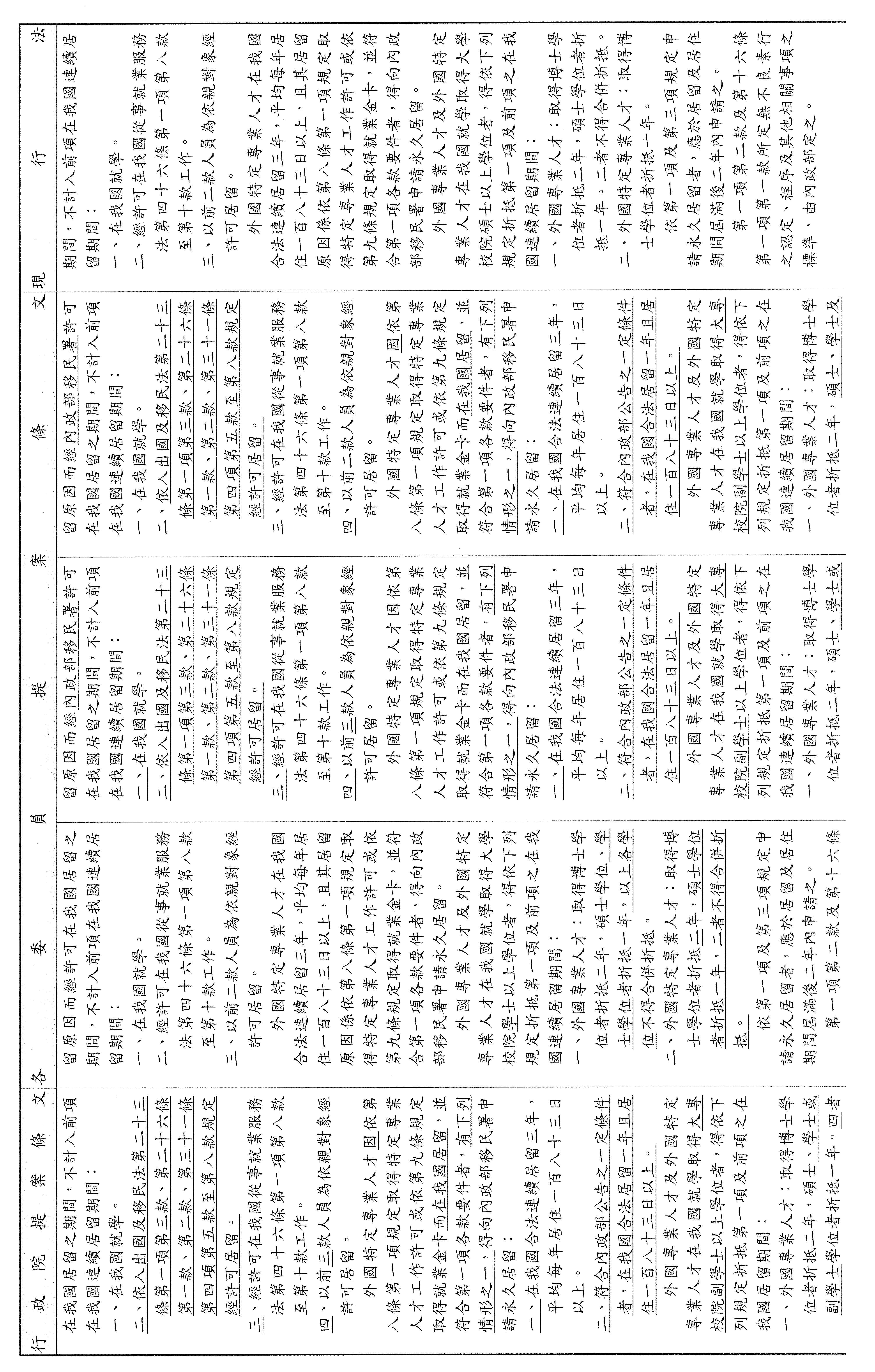 鑑於我國勞動力短缺導因於少子女化與高齡化問題,由於產業人才短缺的急迫性,特別是中高階或掌握關鍵技術的人才,因此,對內打造培育產業人才需求的高教環境,對外進行攬才、留才,兩者應可並行不悖,此次為能立即爭取外籍人才留台服務,修法於我國就讀並取得學位者,放寬申請永久居留年限,惟鑑於政府資源有限,各類產業對專業人才需求的急迫性不一,為免法規遭不當濫用,形成移民漏洞而引發社會對立、影響國人權益,國發會應統籌相關部會依外國專業人才、外國特定專業人才每年申請永久居留情形,適時檢討政策執行狀況。