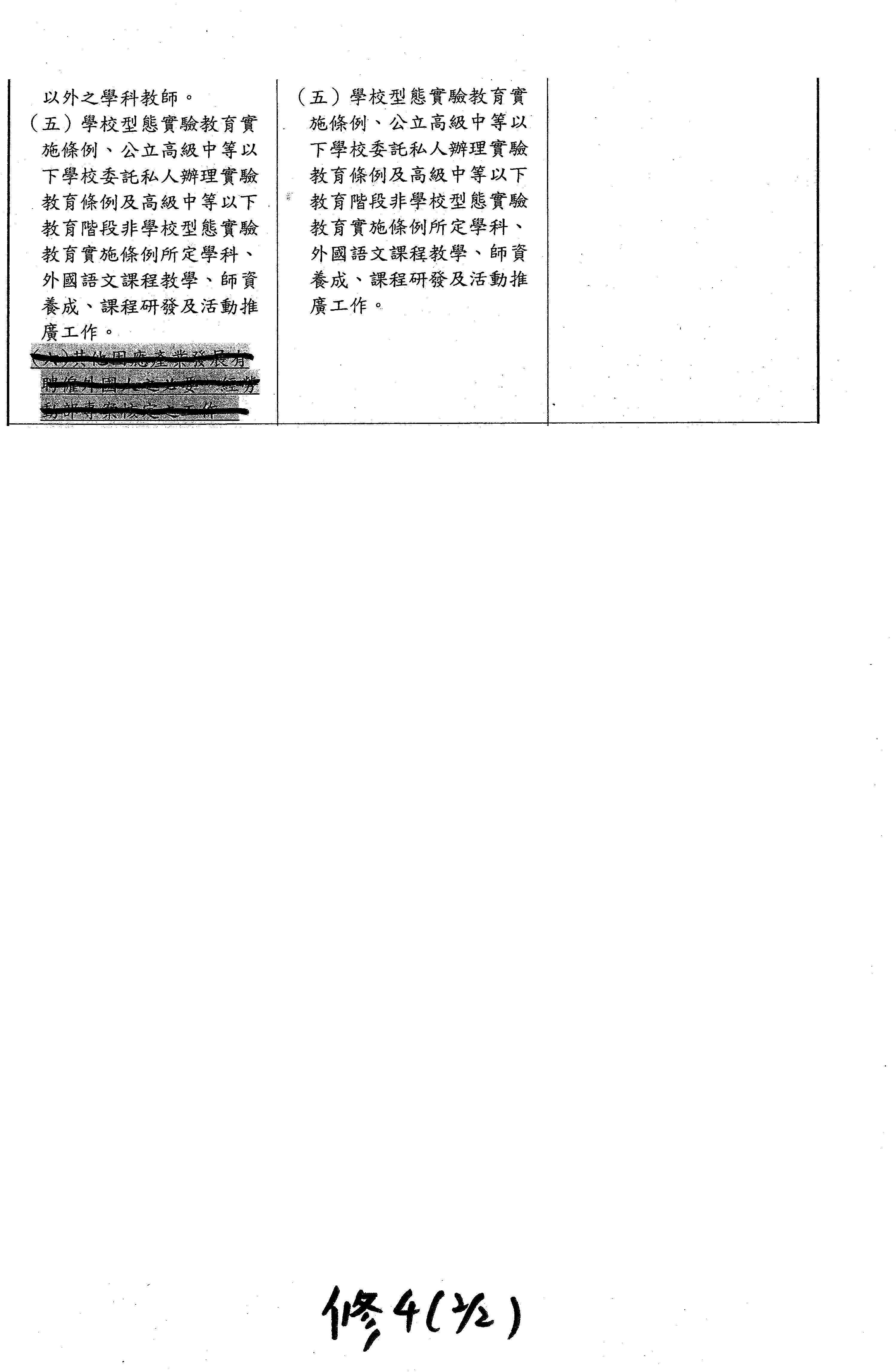 主席:教育部,請你看林岱樺委員的修正條文,他並不是說要開放外師來教授學科,他的文字是「任教語言及語言以外之非學科,並協助相關教學及教師研習、培訓之教師之……」。