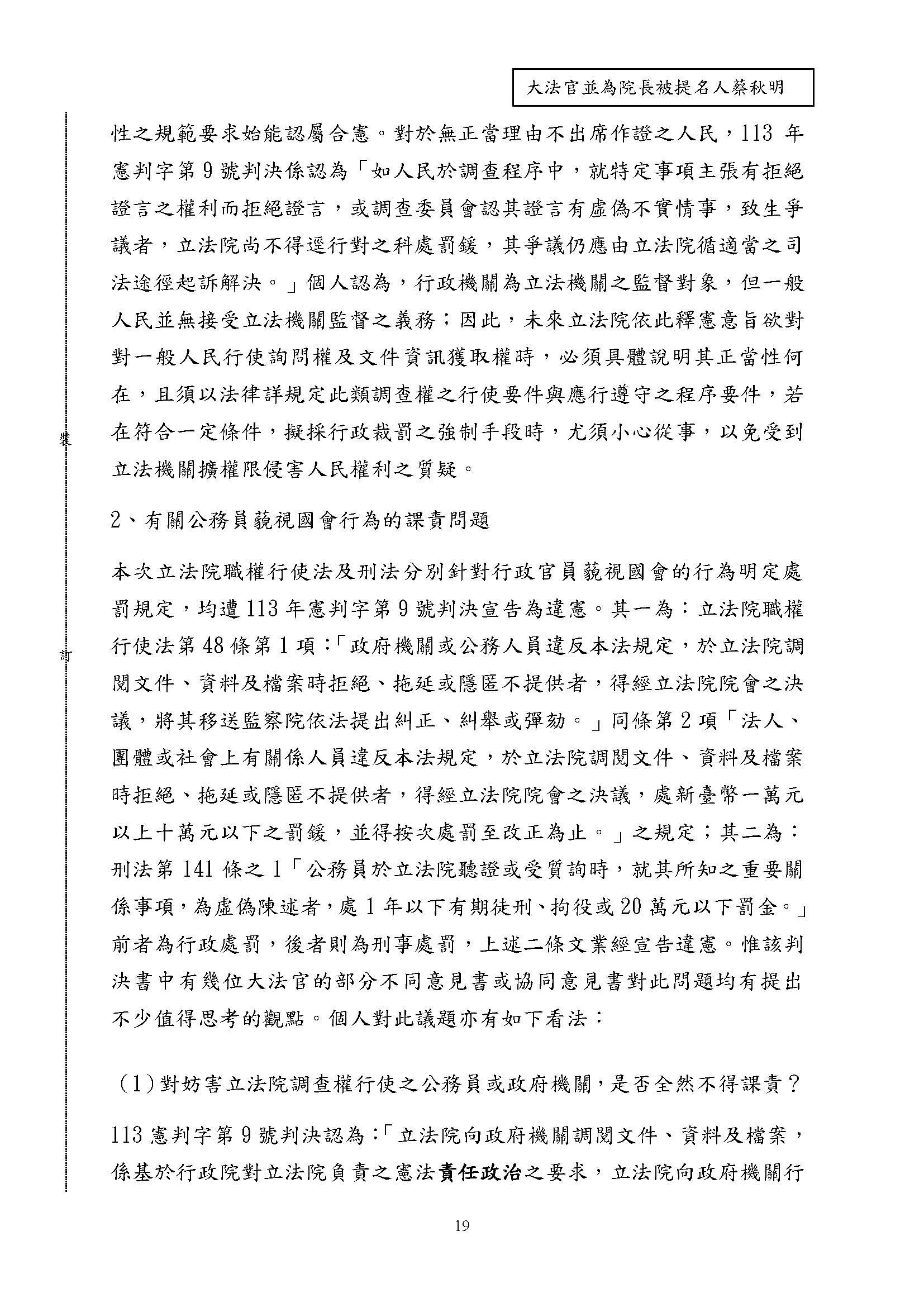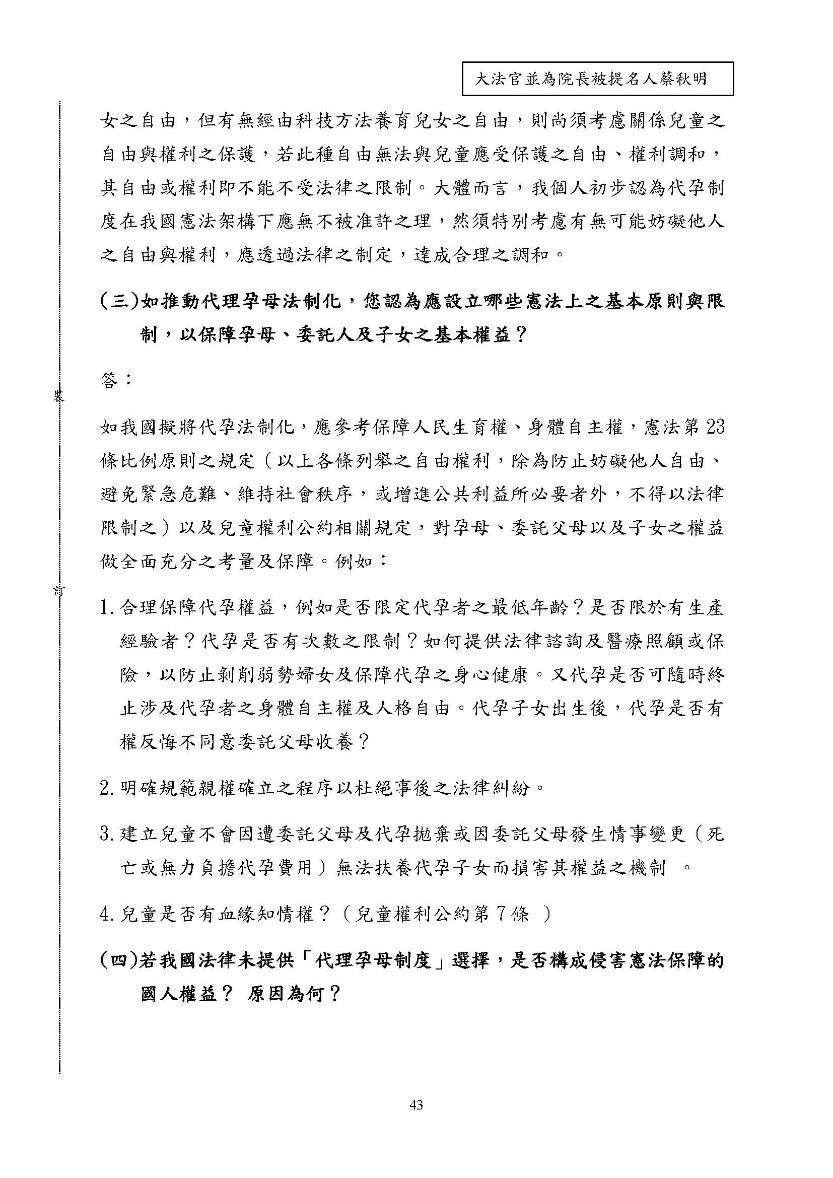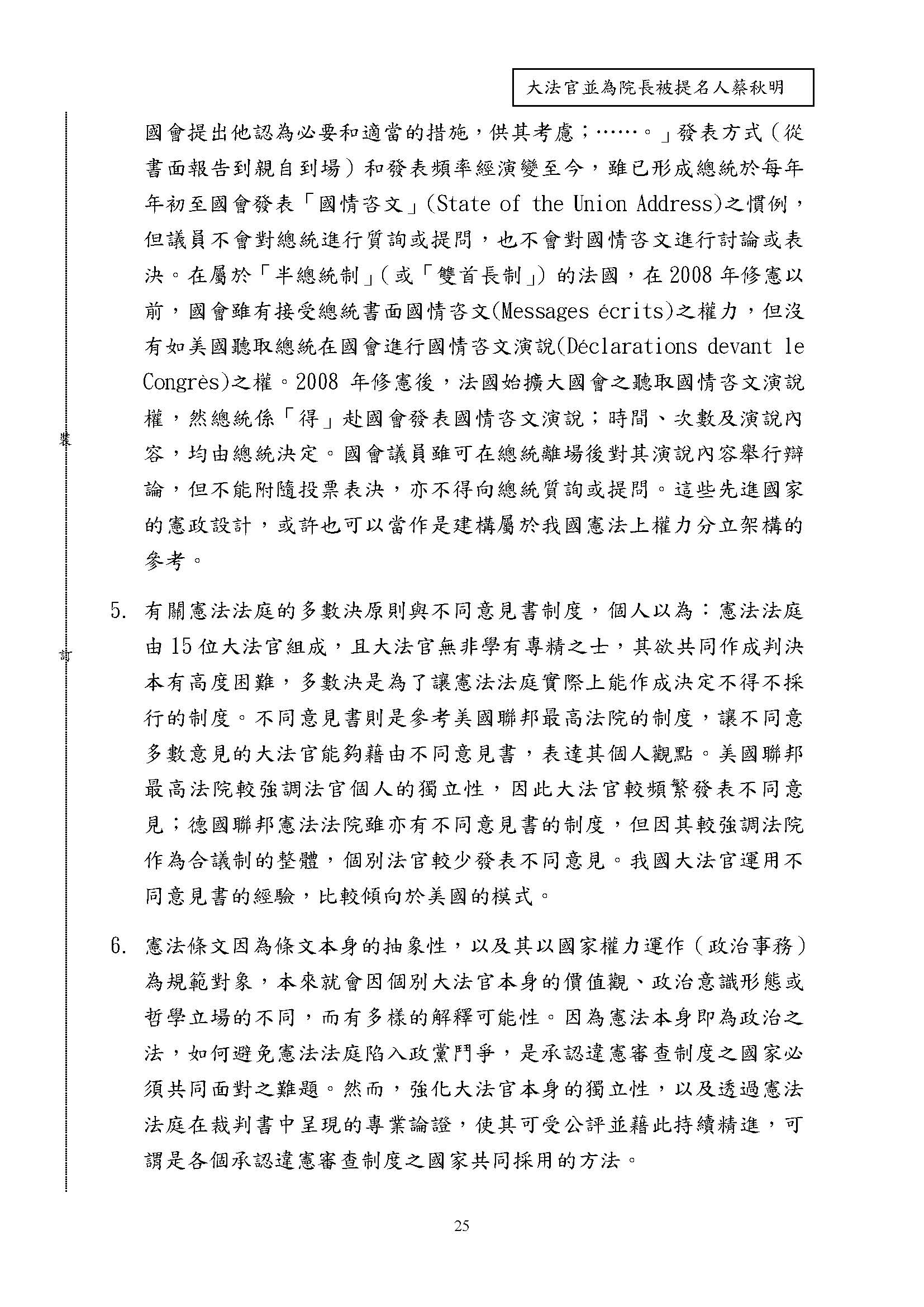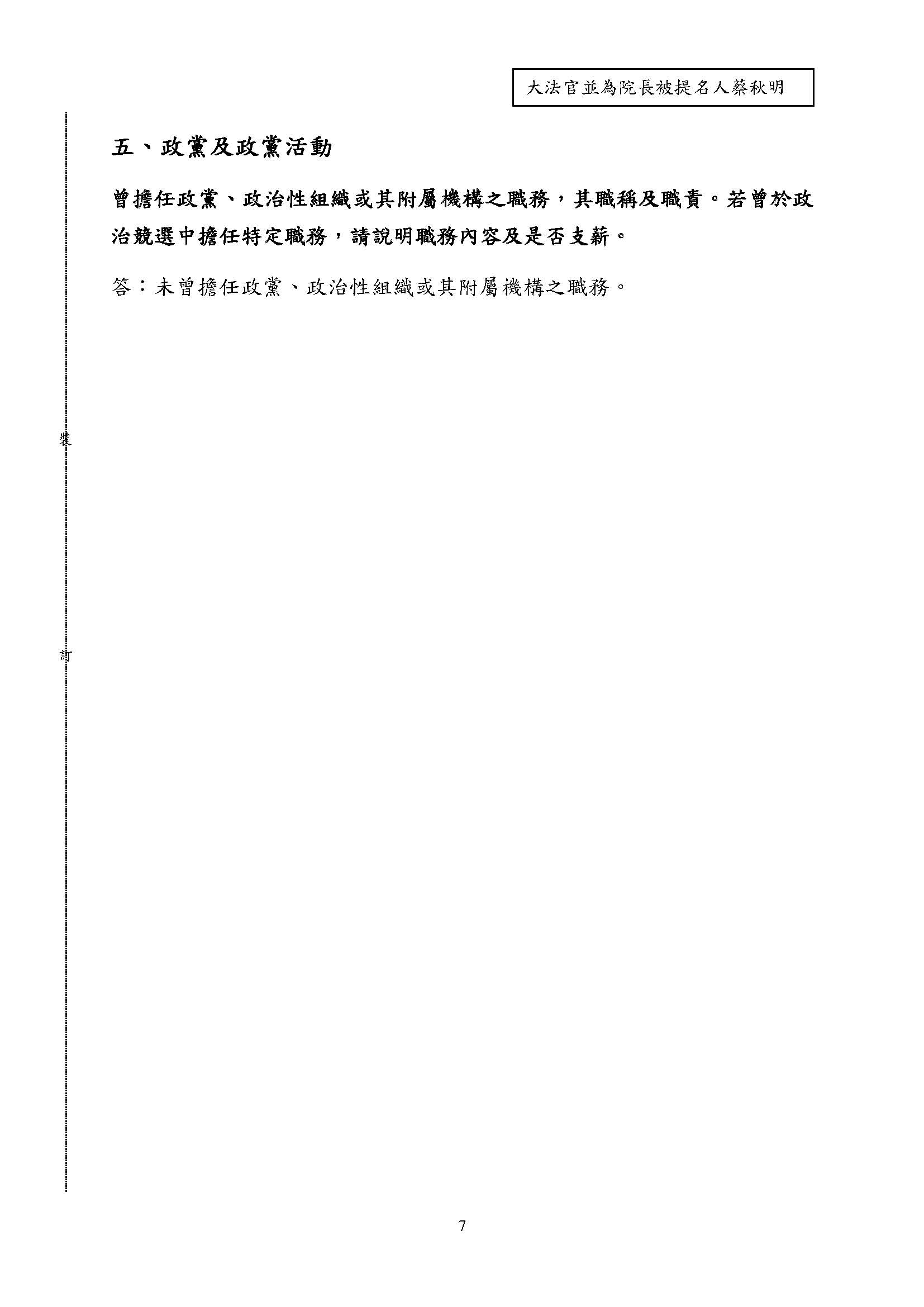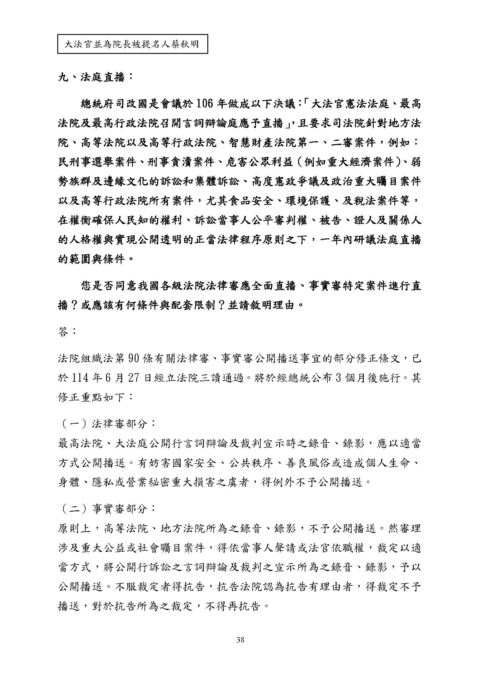 一、司法院大法官並為院長被提名人蔡秋明書面資料: