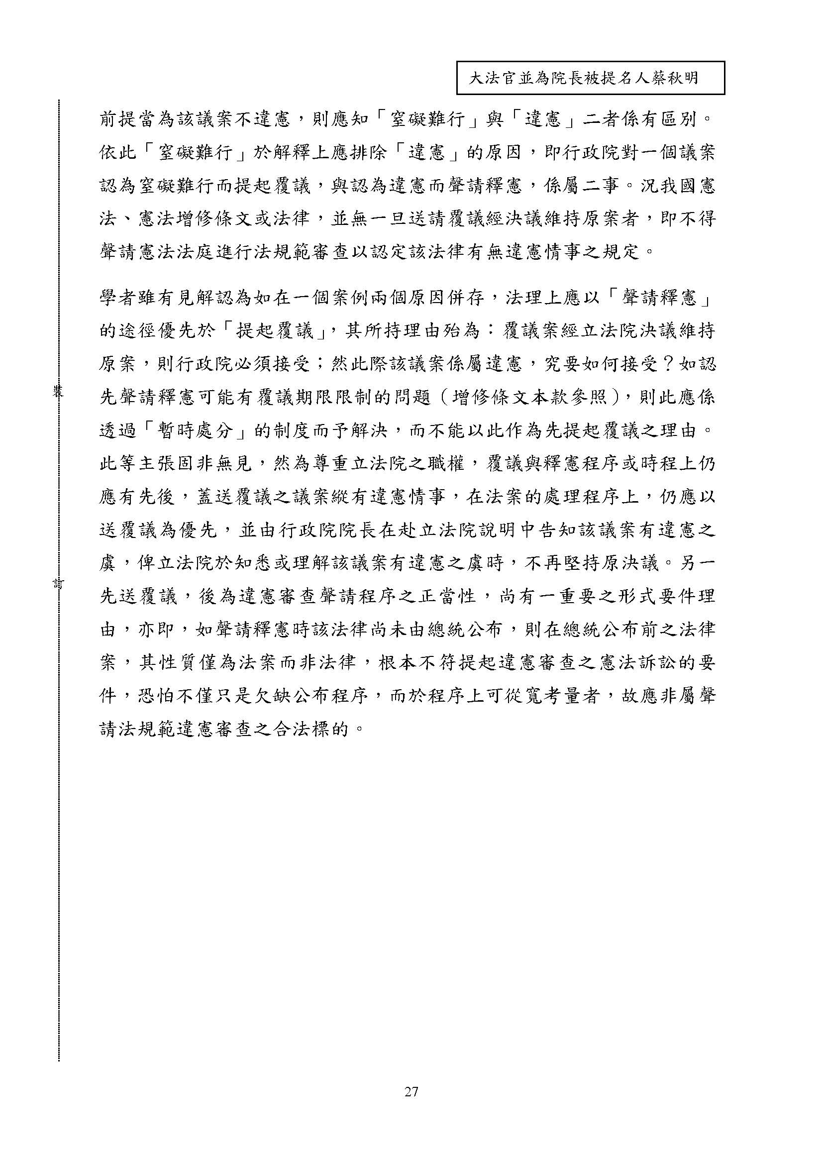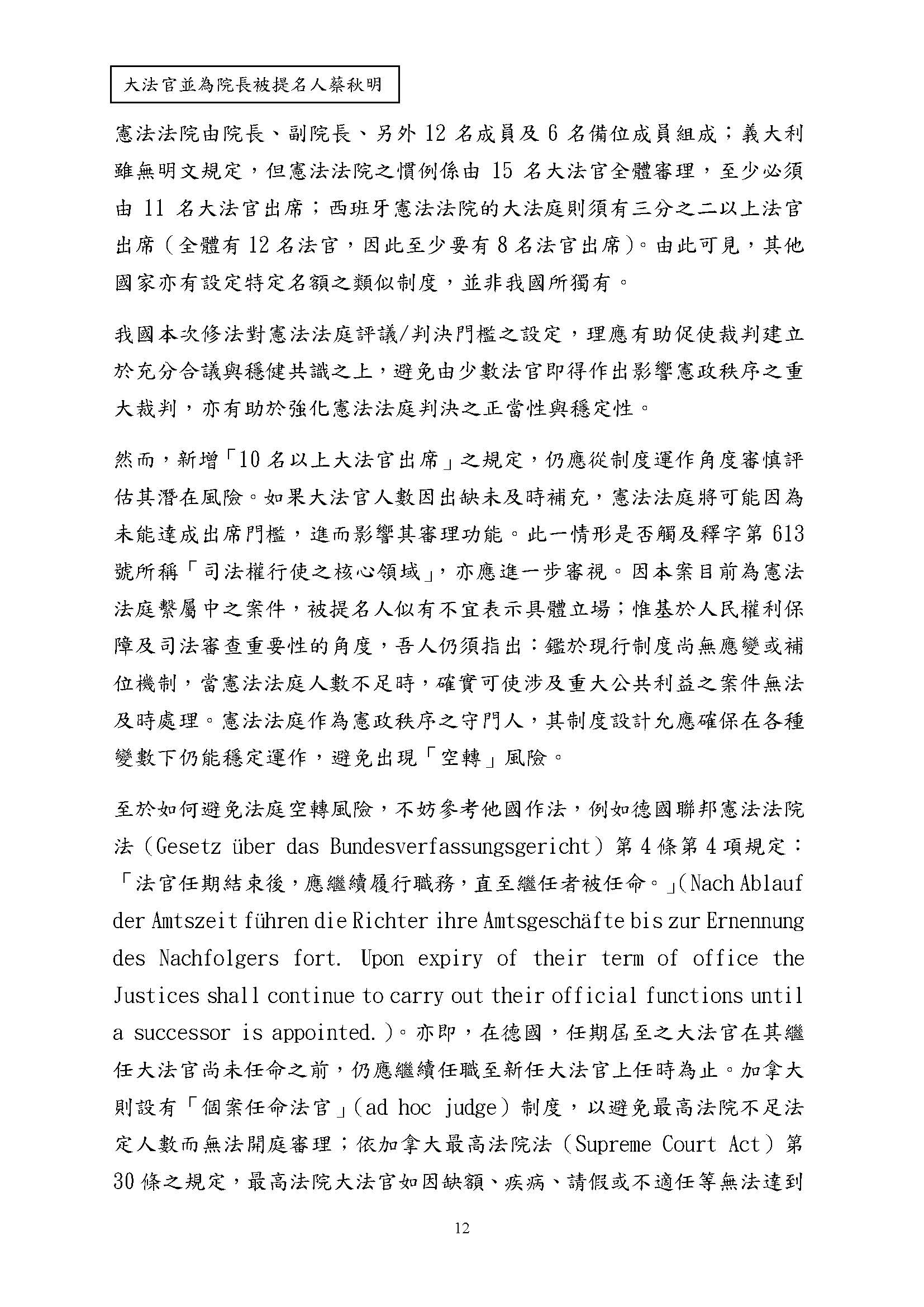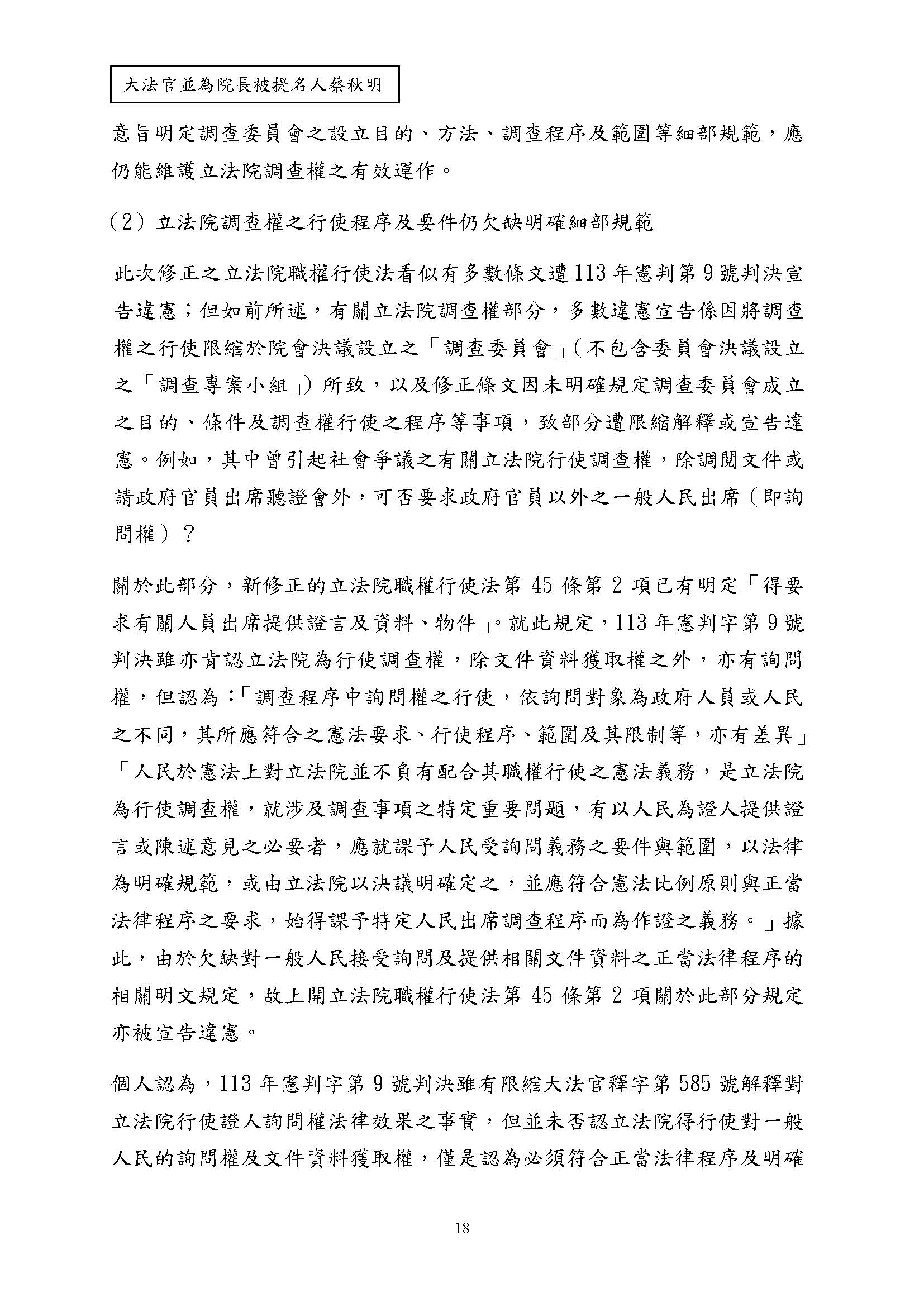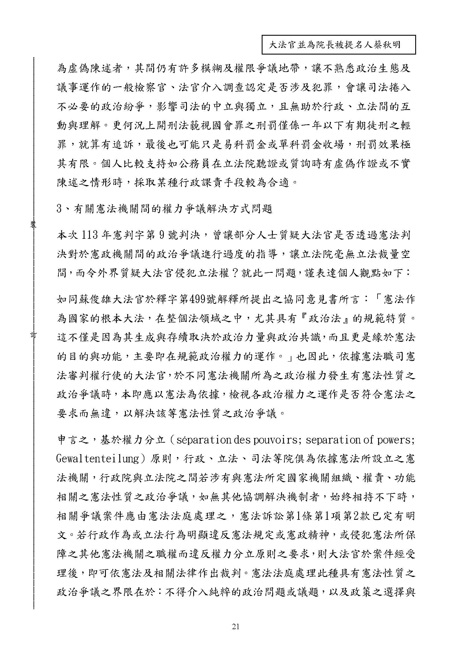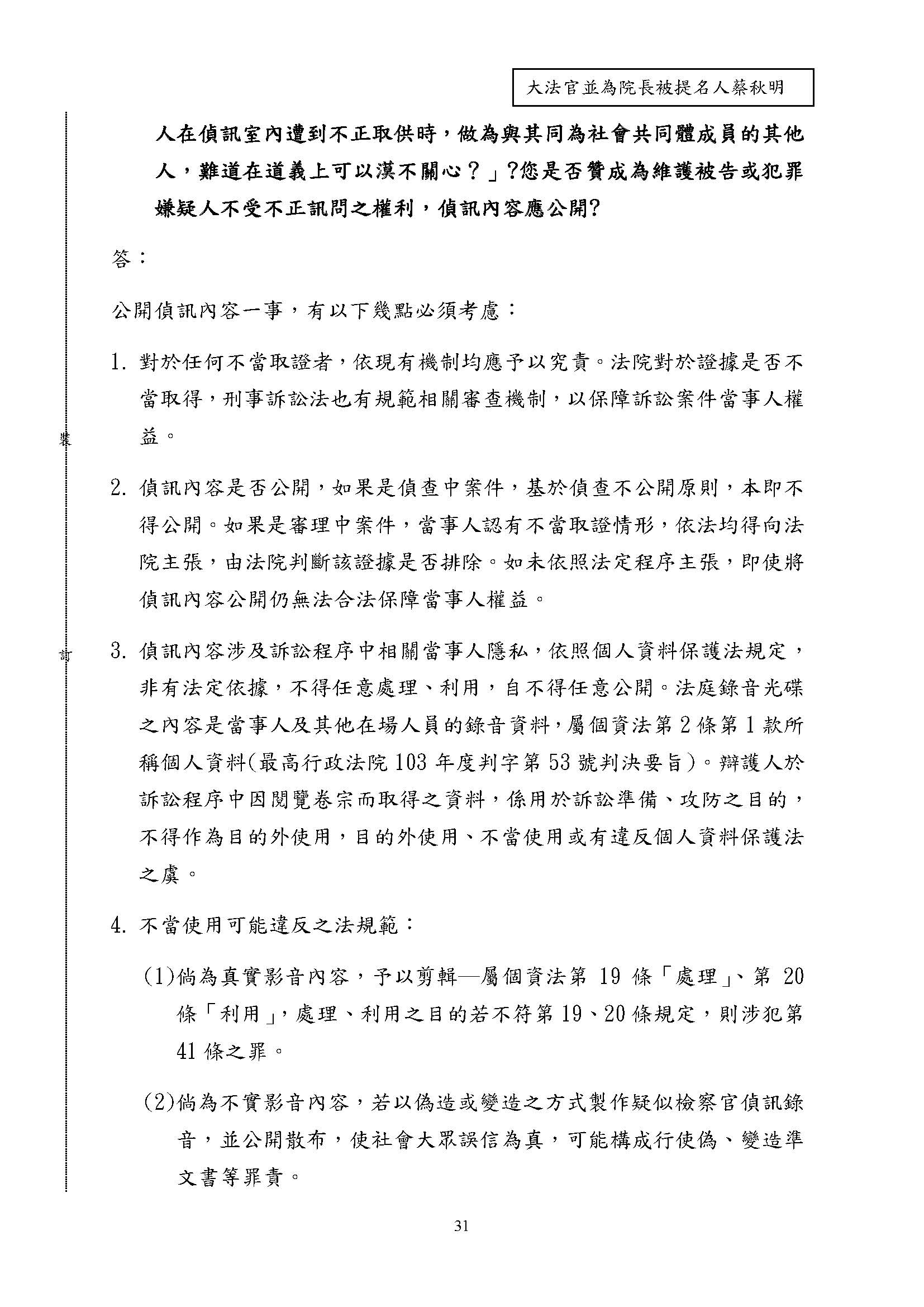 一、司法院大法官並為院長被提名人蔡秋明書面資料: