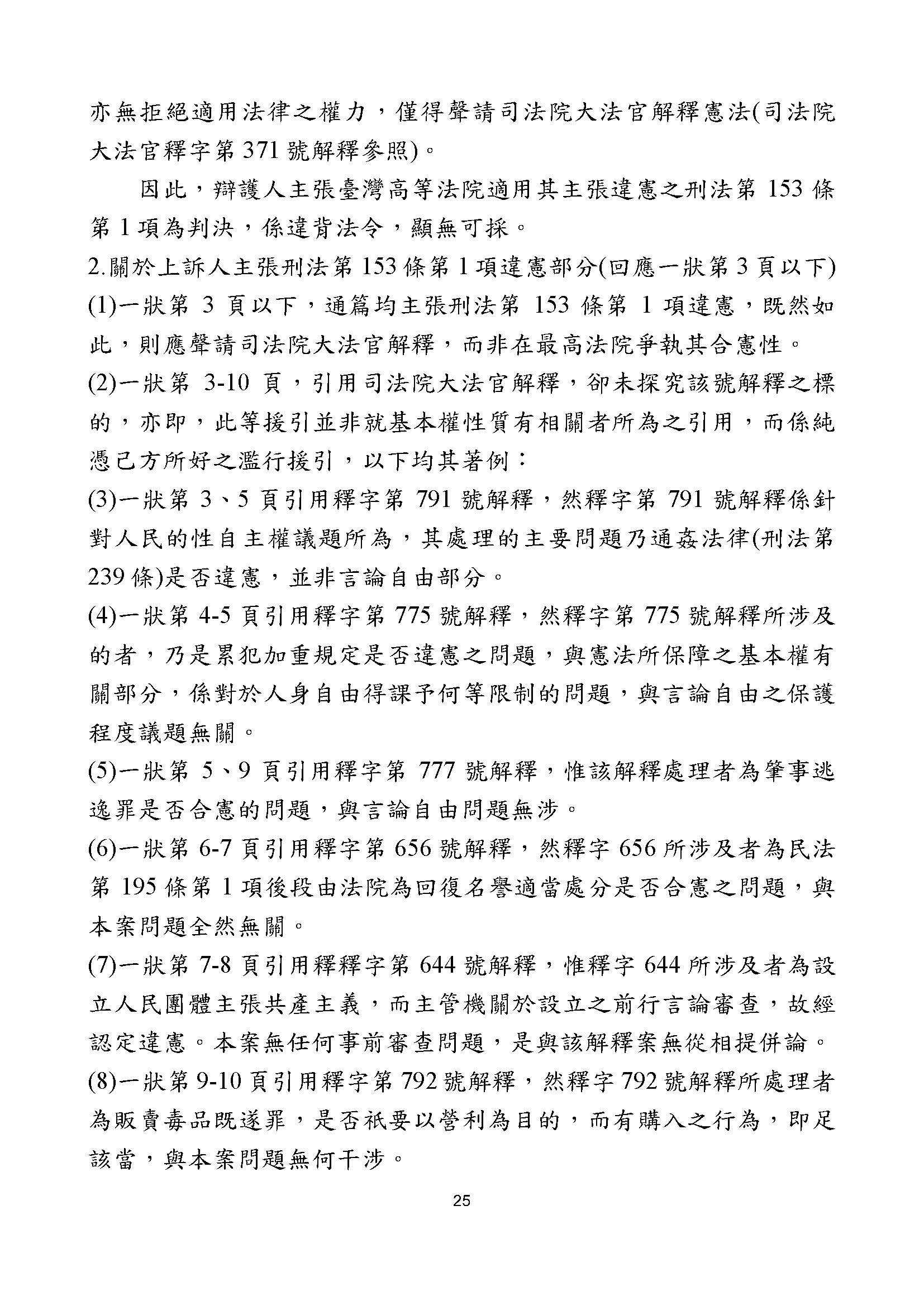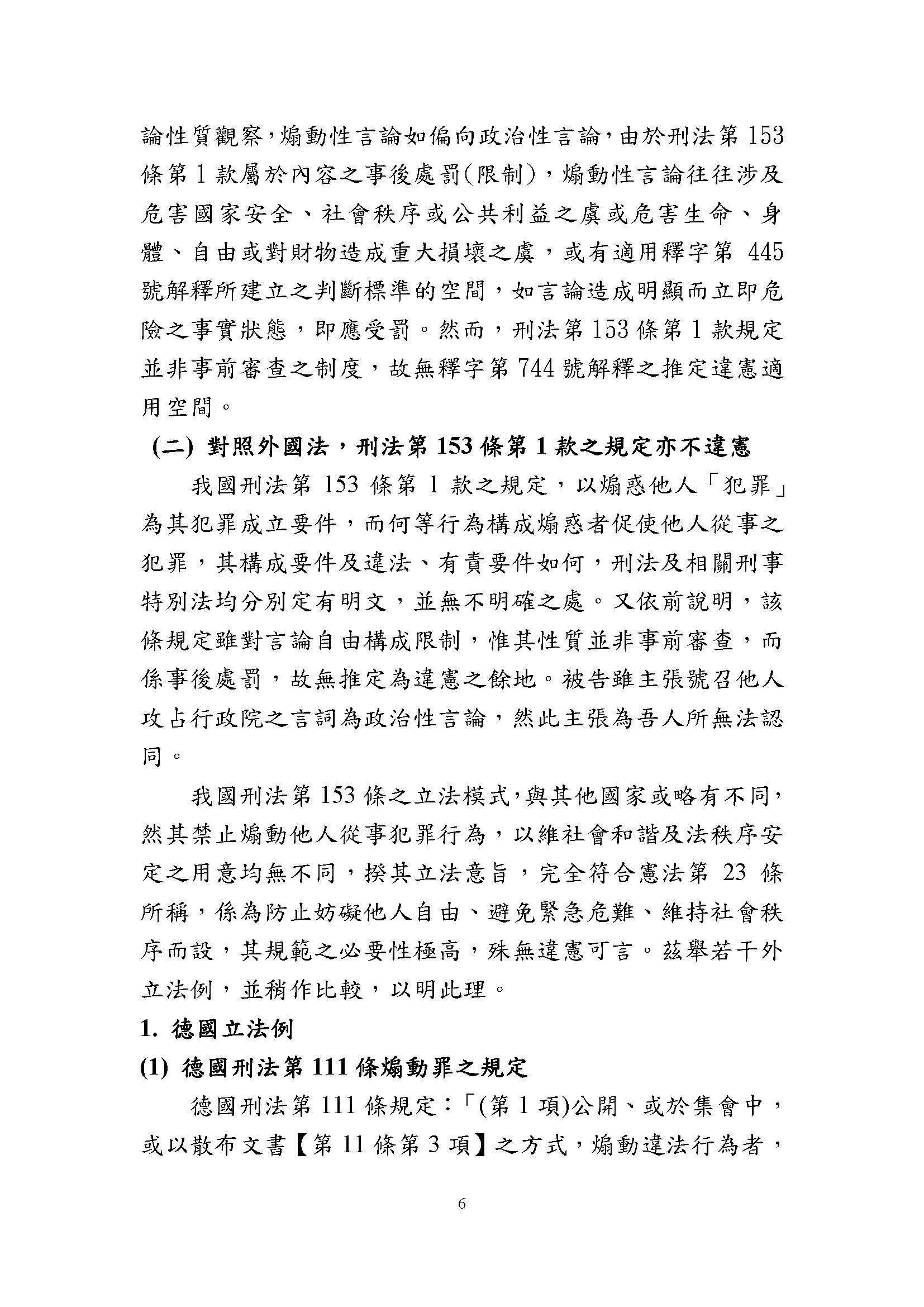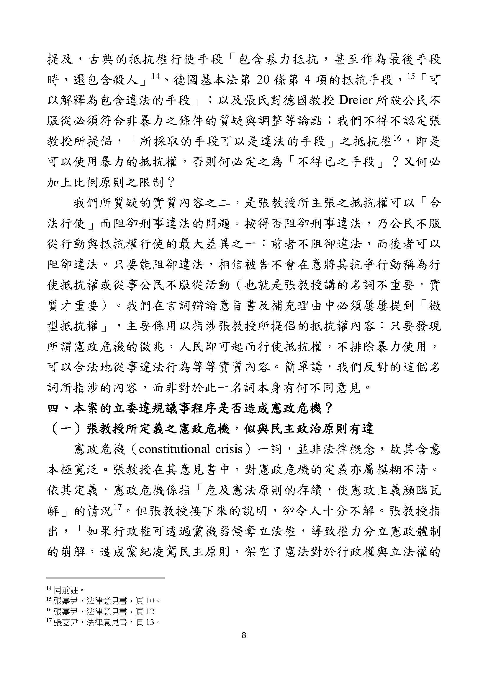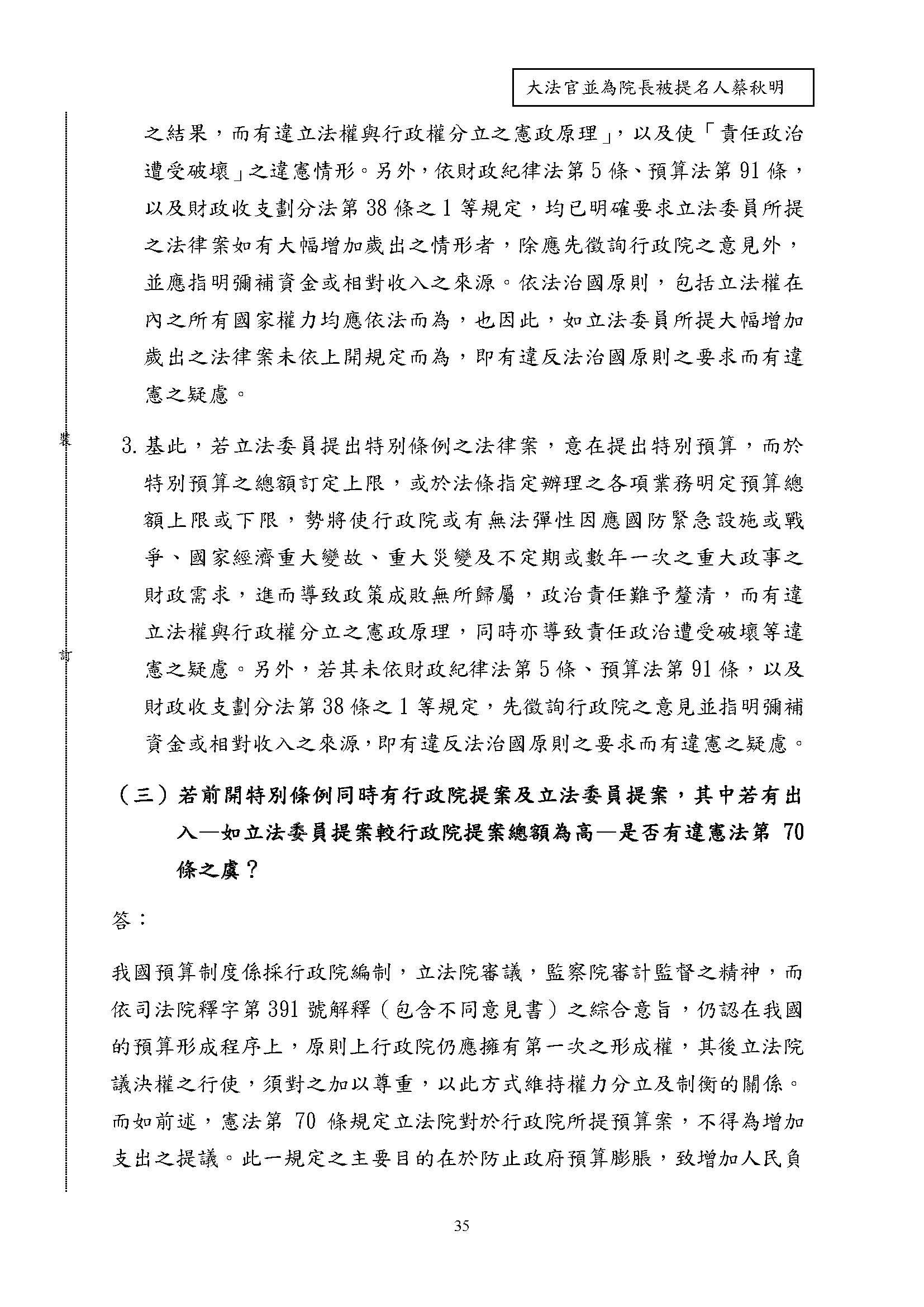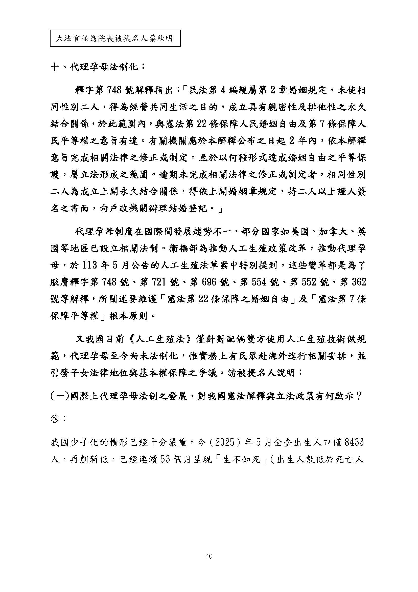 肆、司法院大法官並為院長、副院長及5位大法官被提名人有關本院台灣民眾黨黨團書面提問之答復