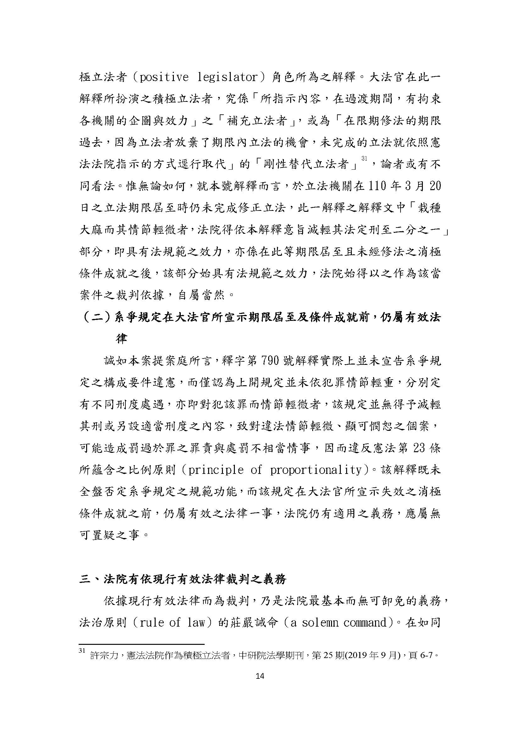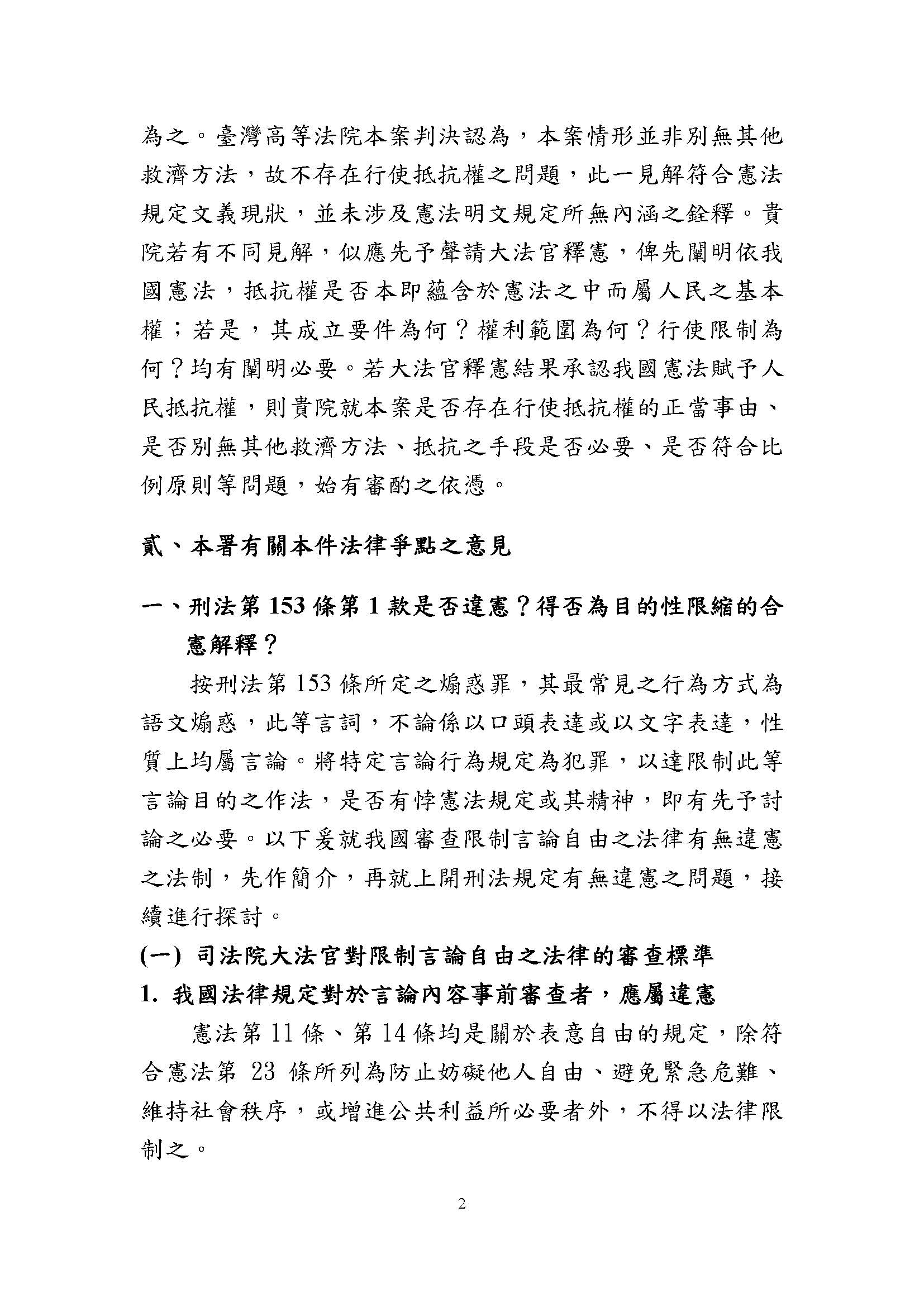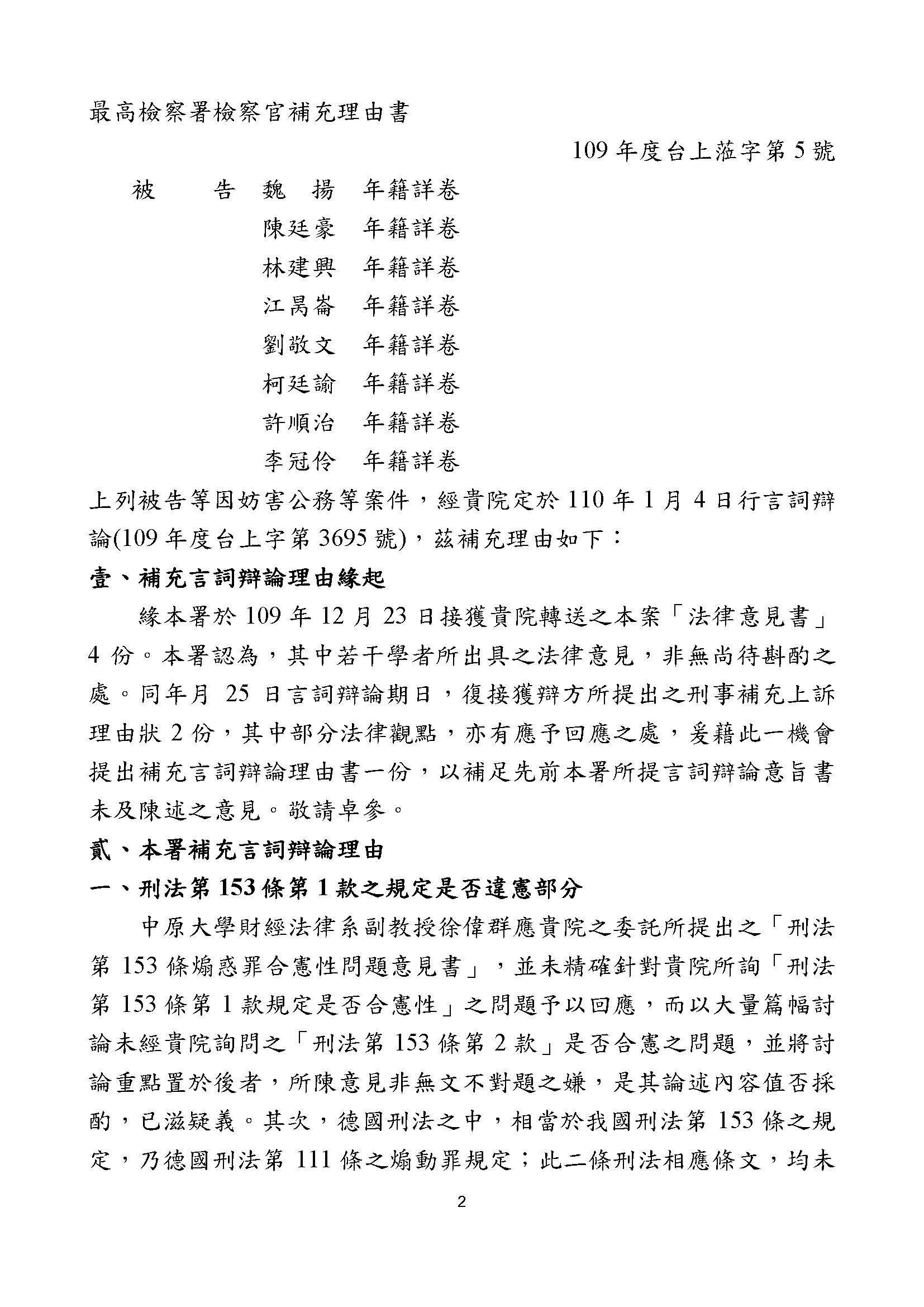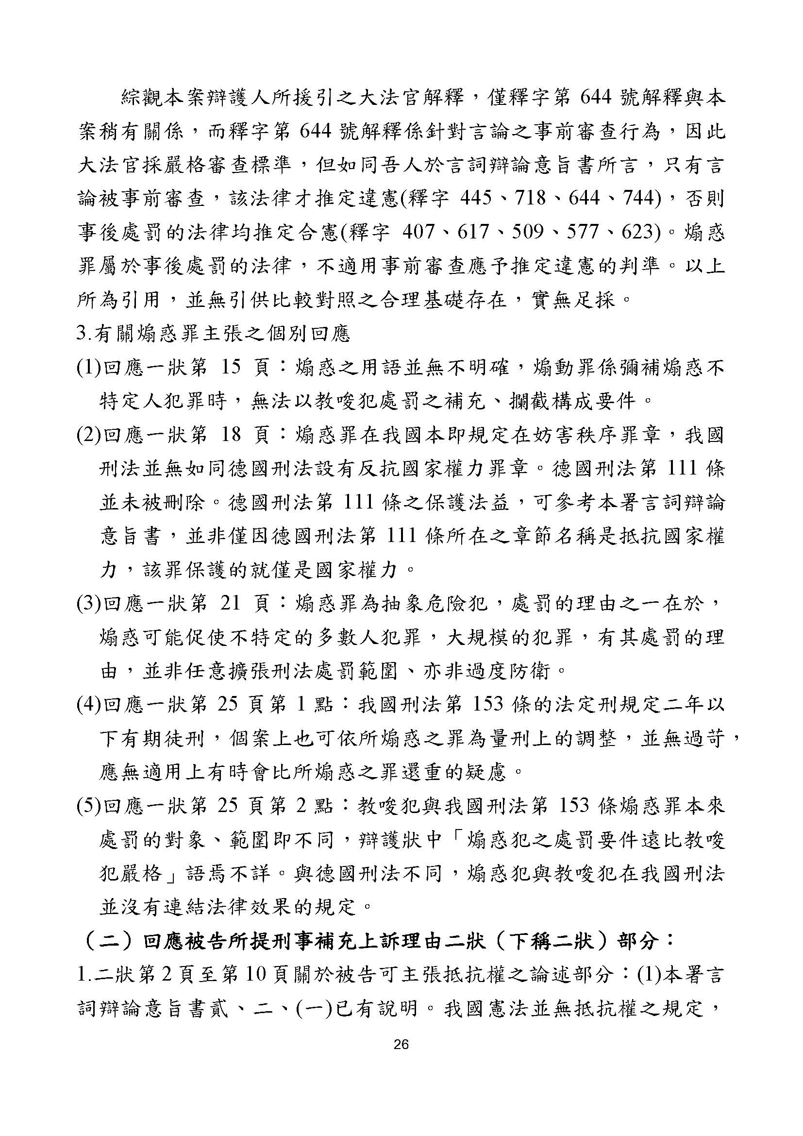 肆、司法院大法官並為院長、副院長及5位大法官被提名人有關本院台灣民眾黨黨團書面提問之答復