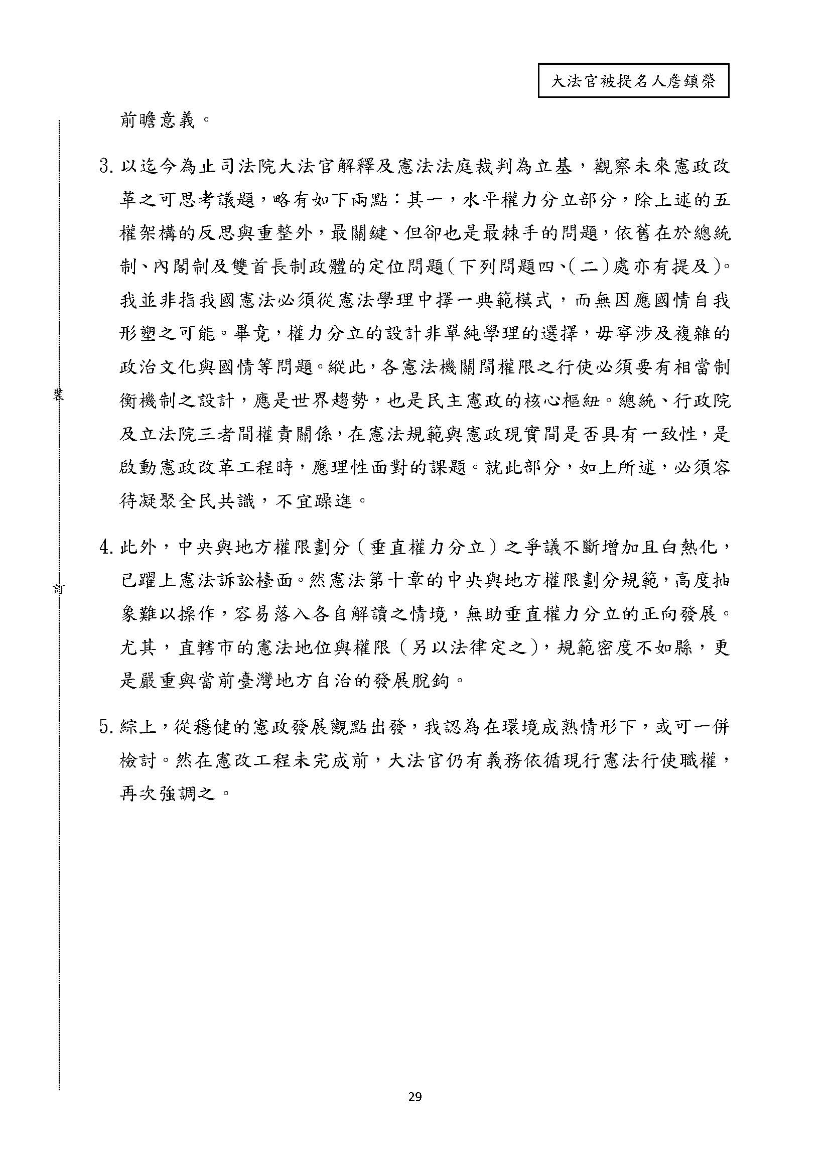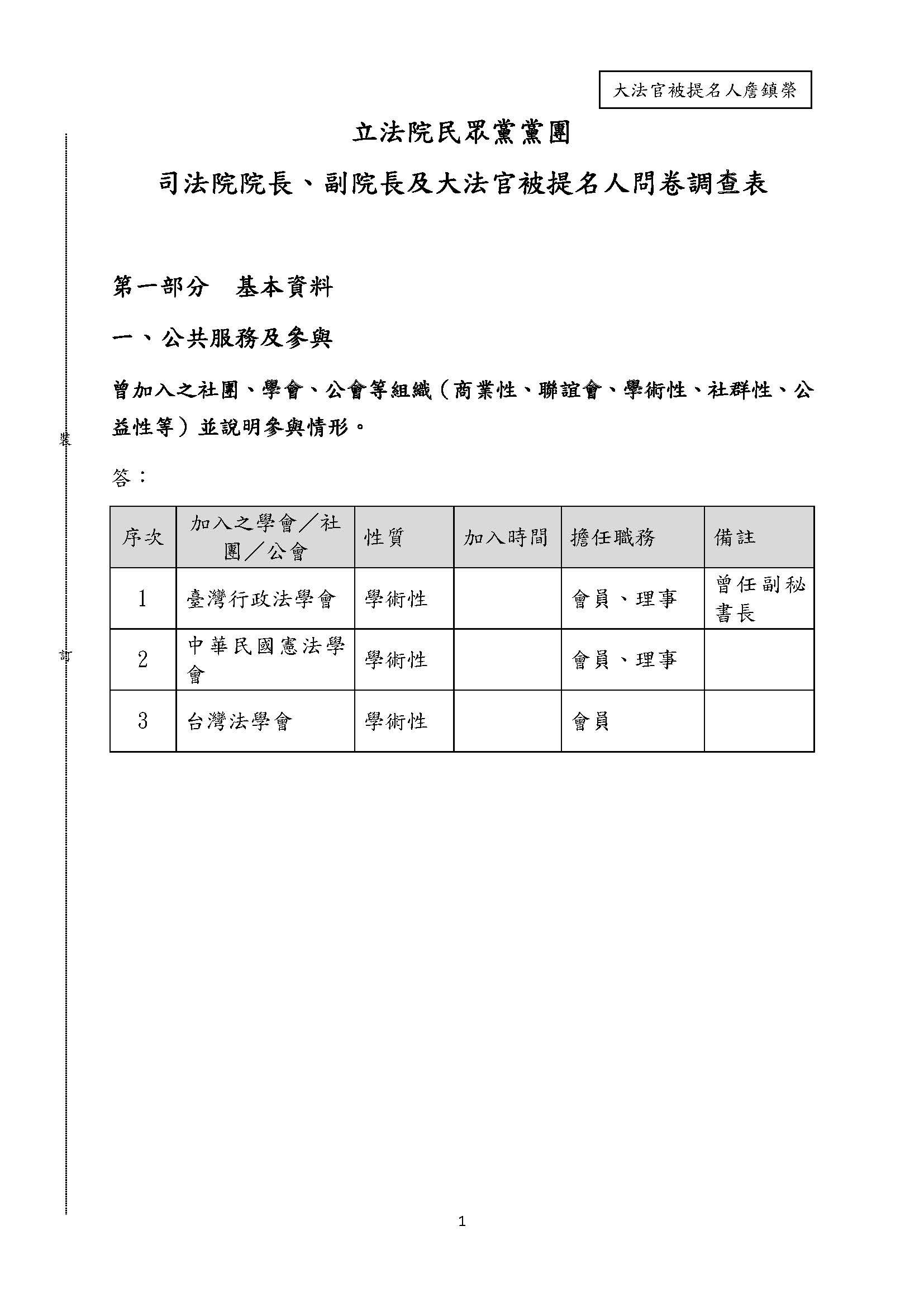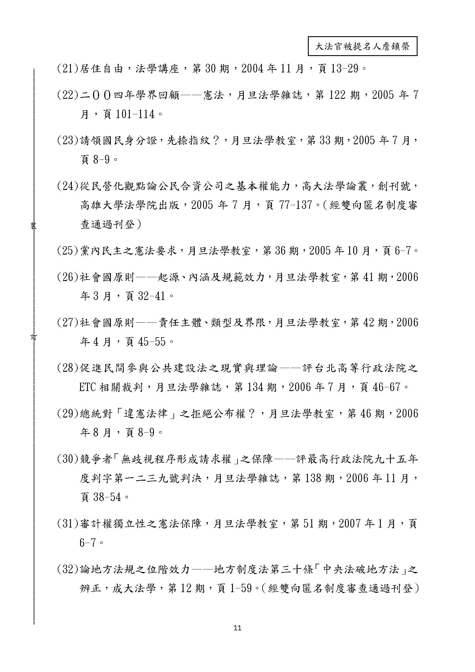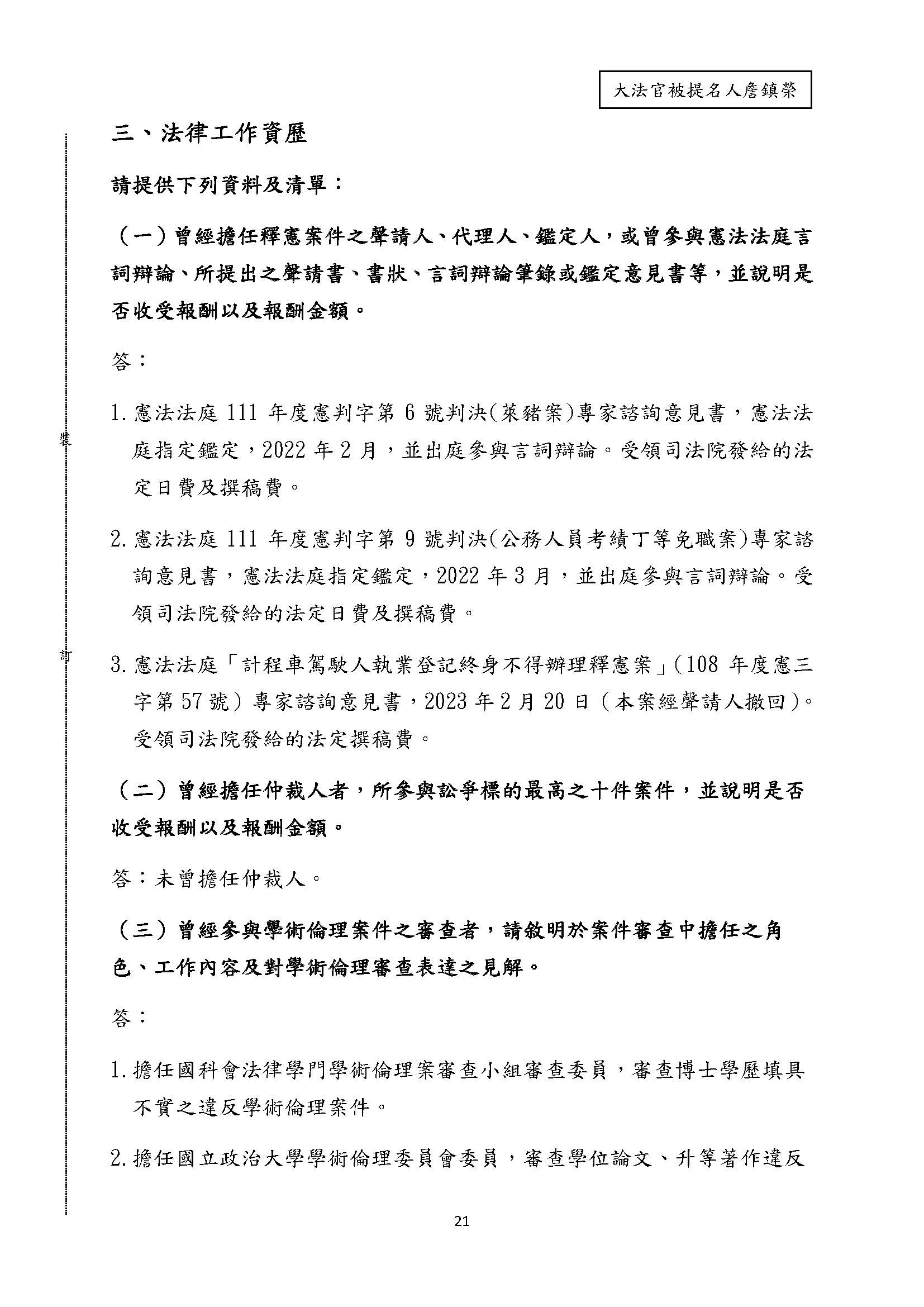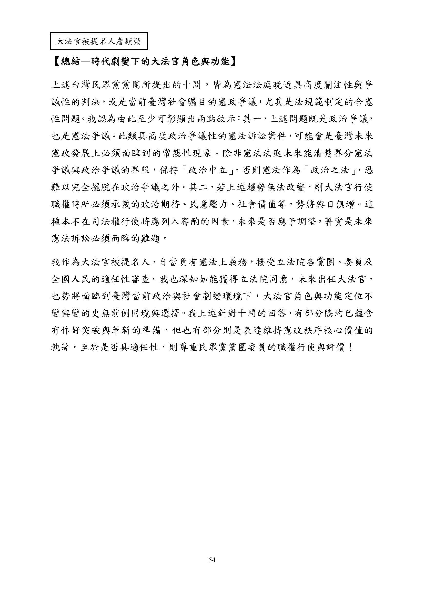七、司法院大法官被提名人詹鎮榮書面資料: